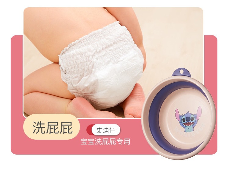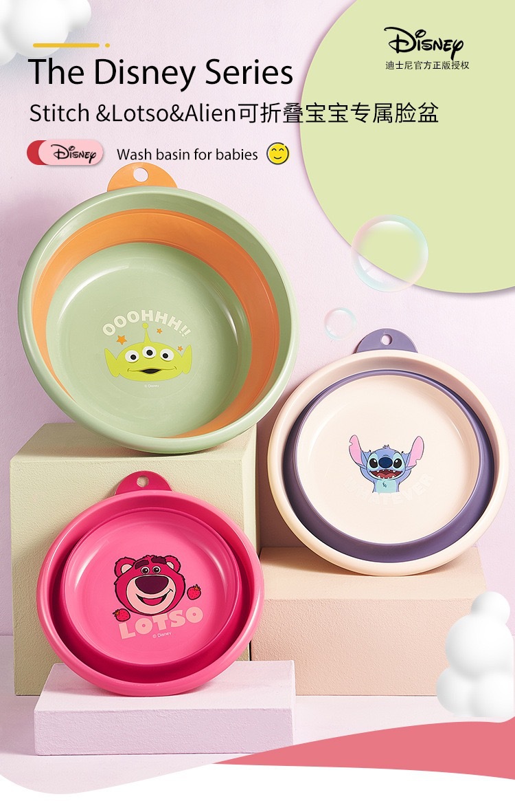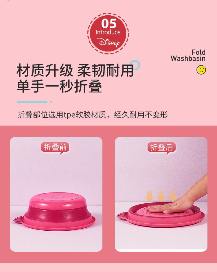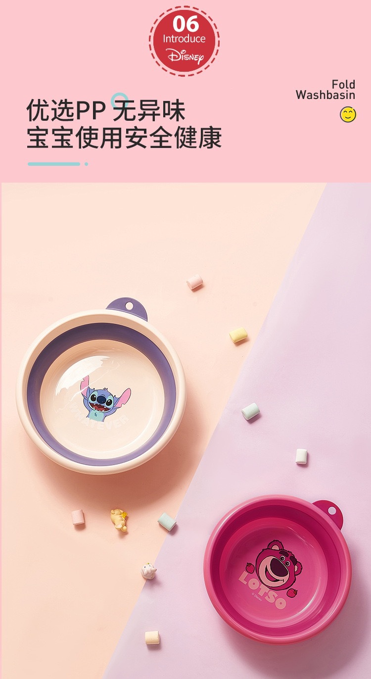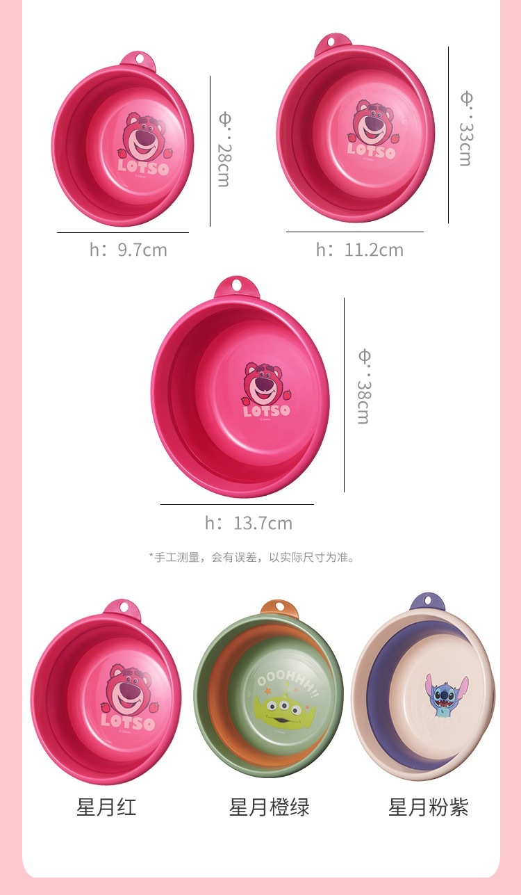 【家用可折叠!宝宝专属脸盆】Disney迪士尼可爱草莓熊加厚折叠盆,可悬挂洗脸盆,家用塑料洗衣,宝宝洗PP盆!