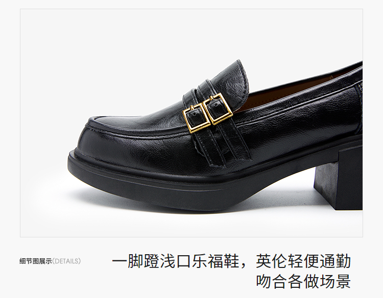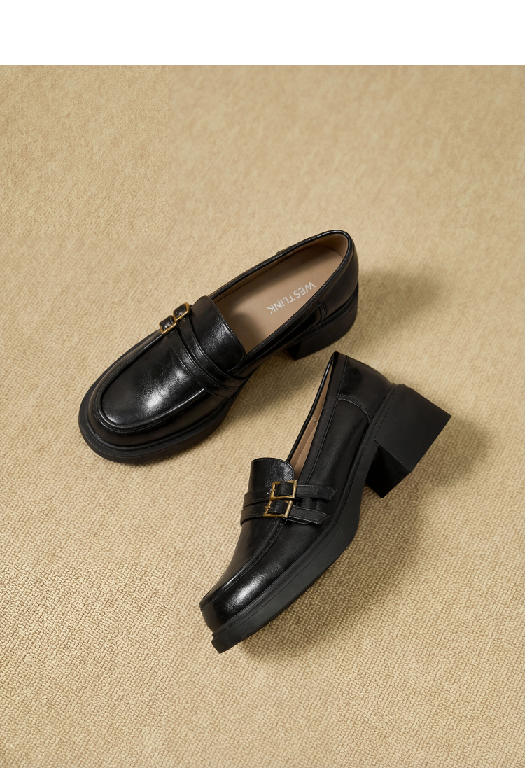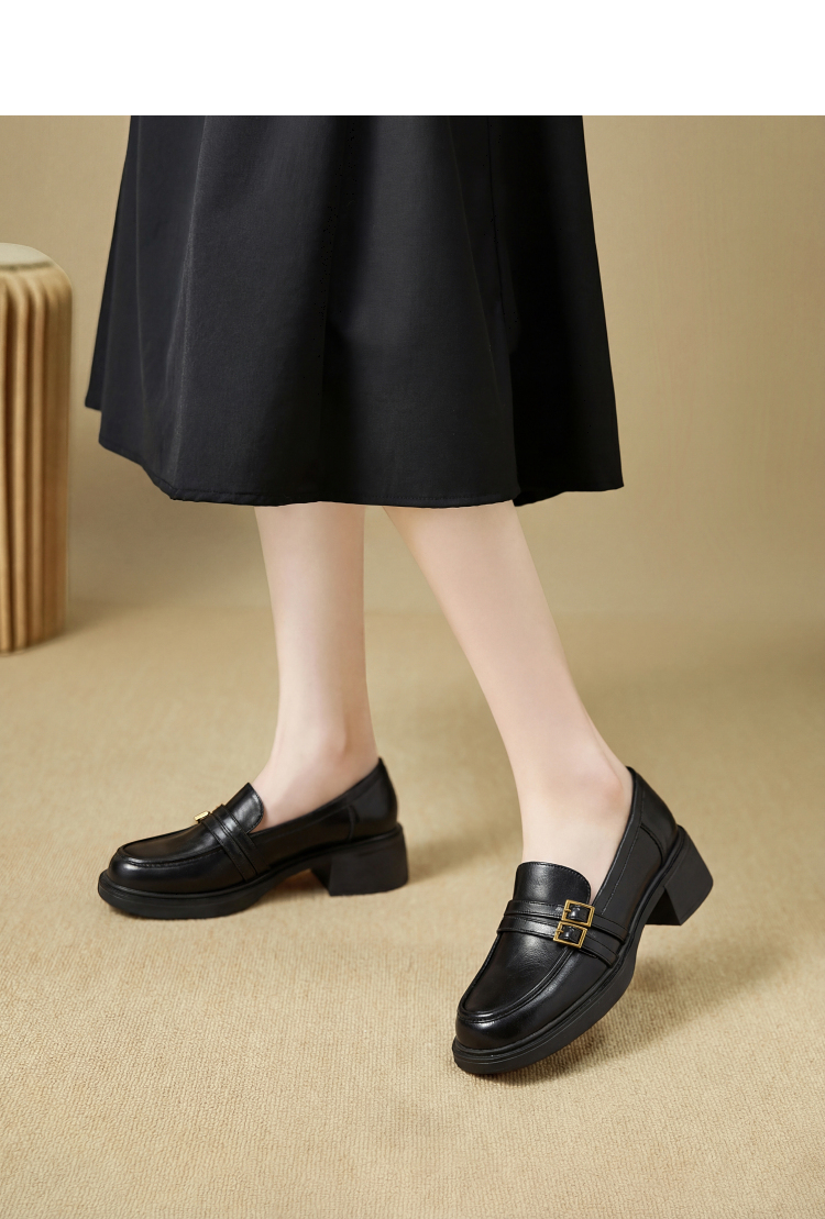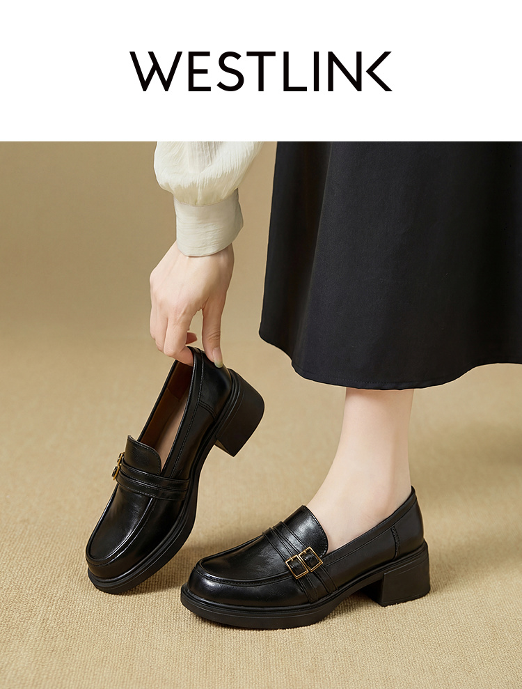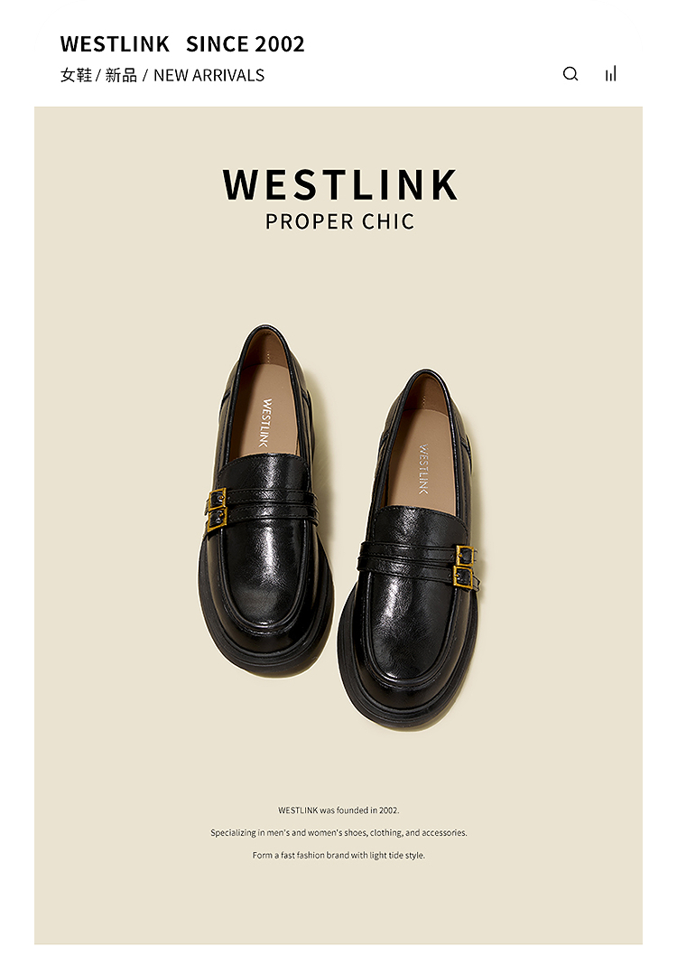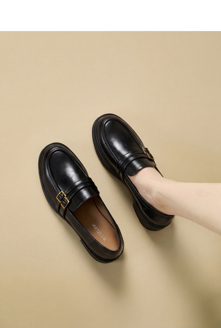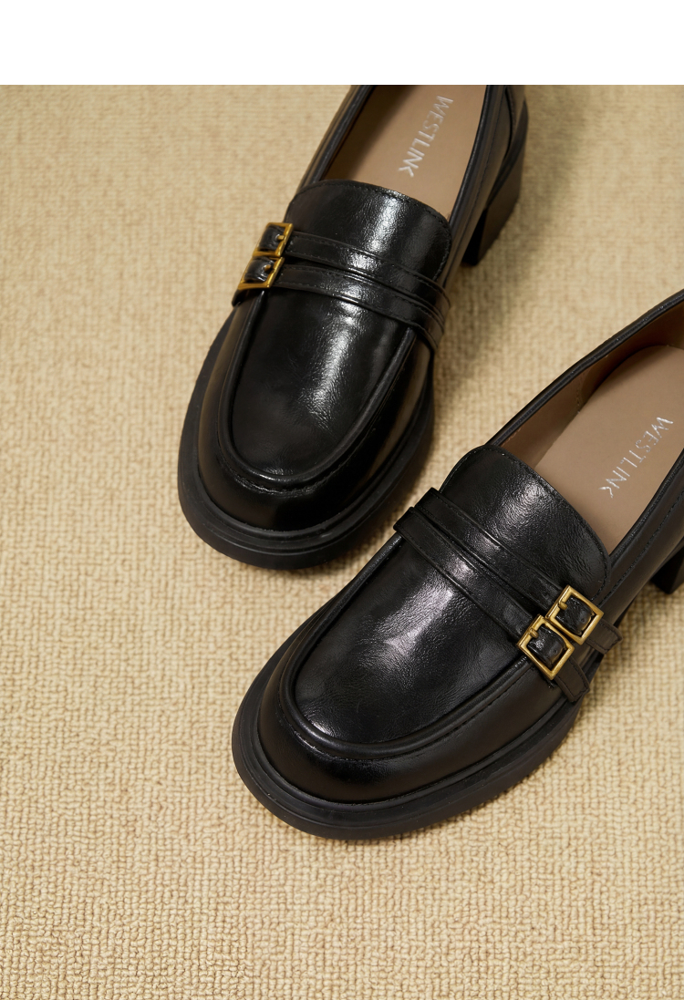 西遇厚底乐福鞋女鞋2026新款春季英伦风小皮鞋双带设计复古单鞋V0166264