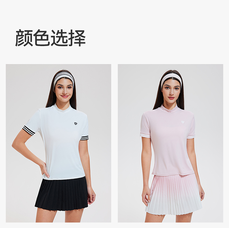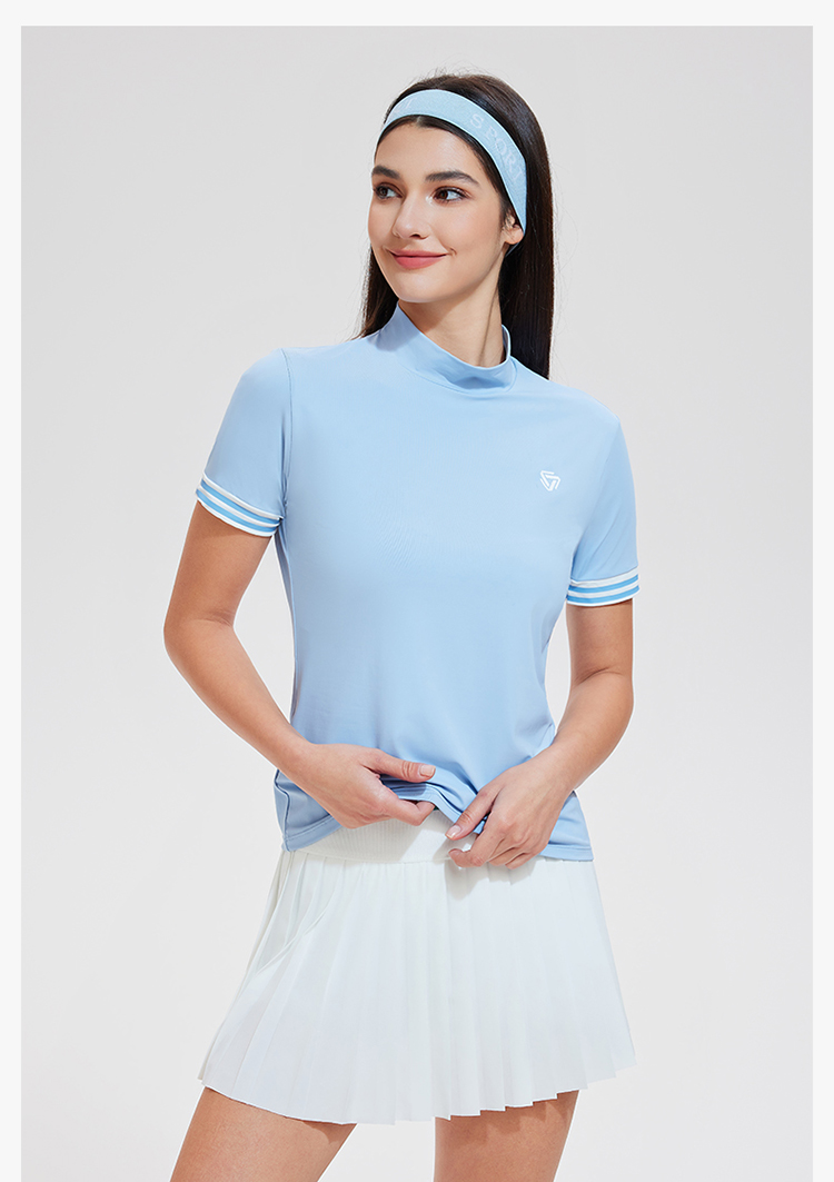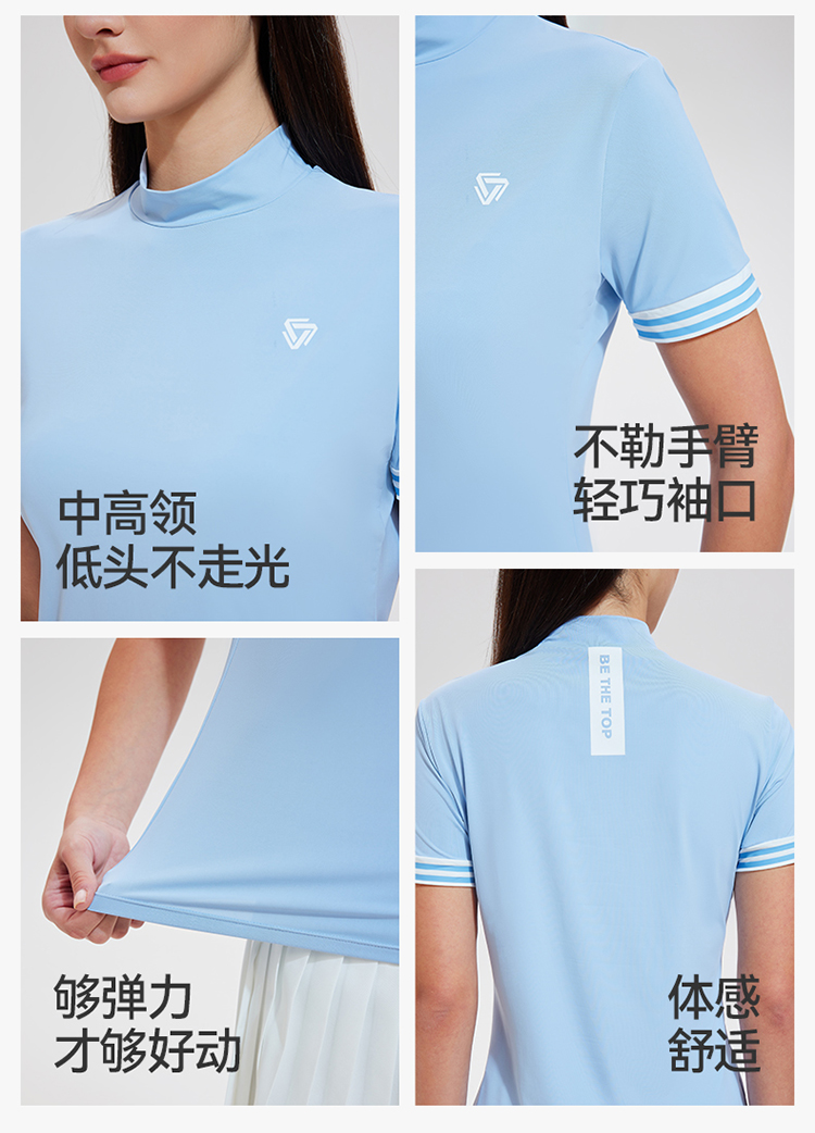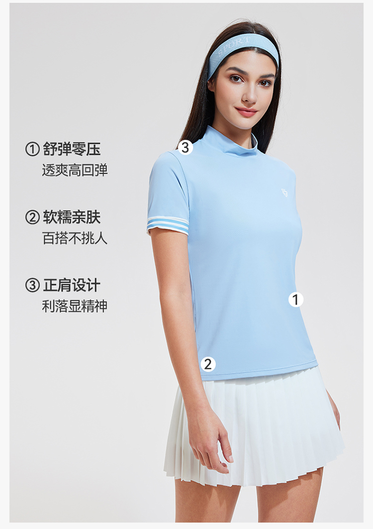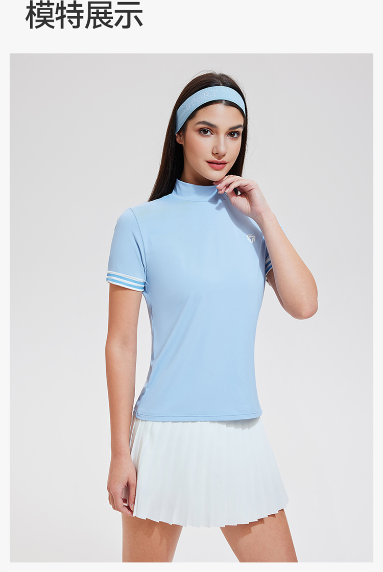 【上新】科里芙半高领显瘦高尔夫短袖凉感透气运动休闲跑步T恤女子