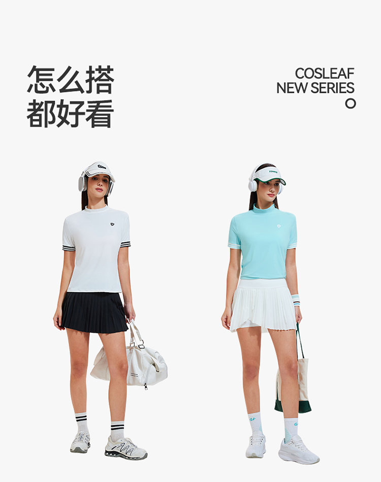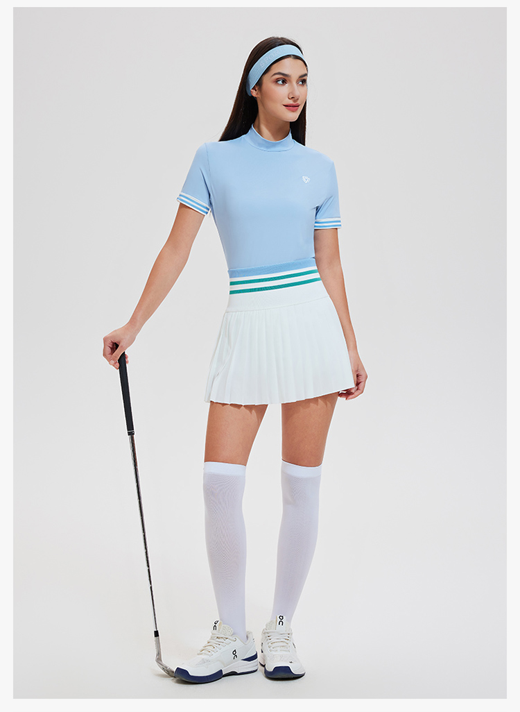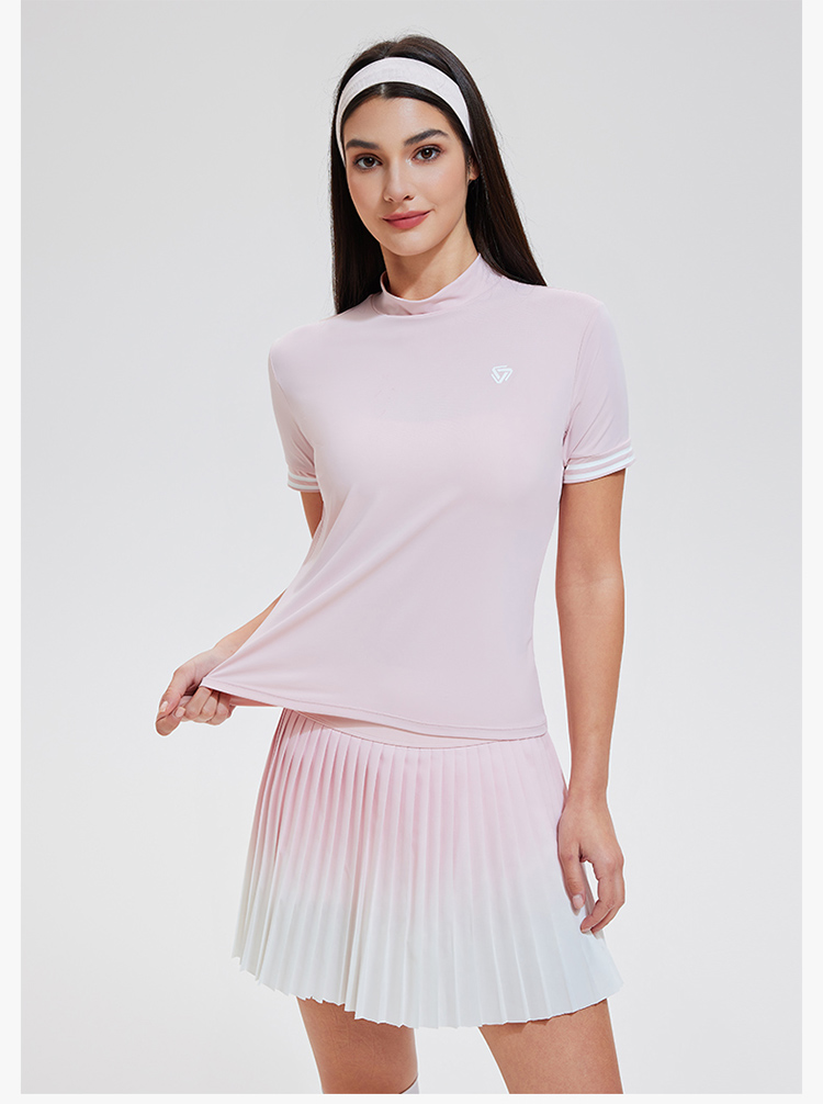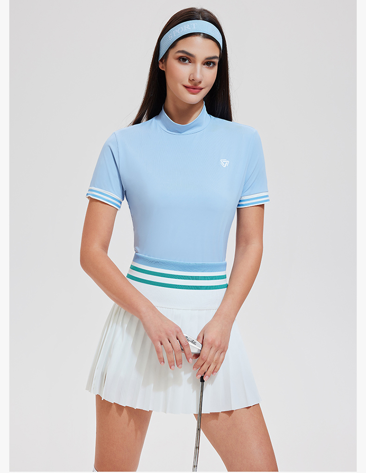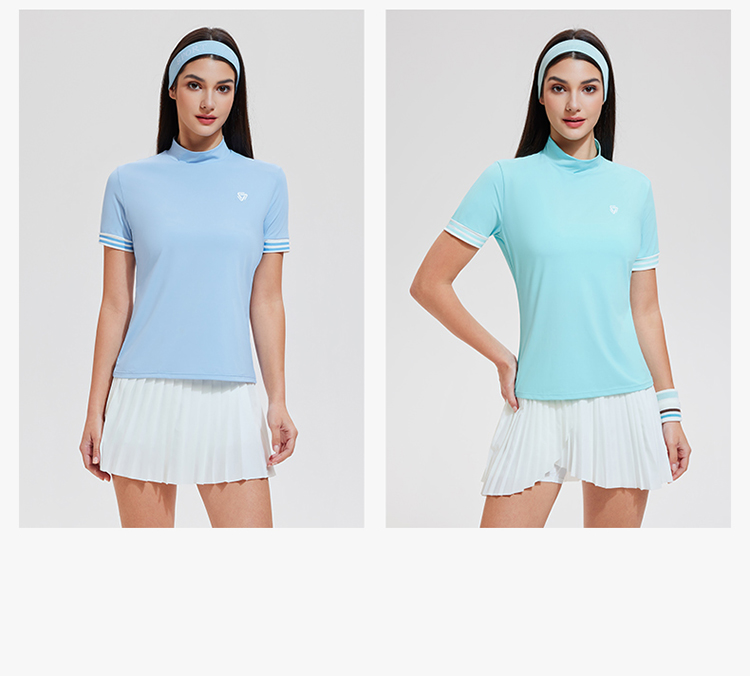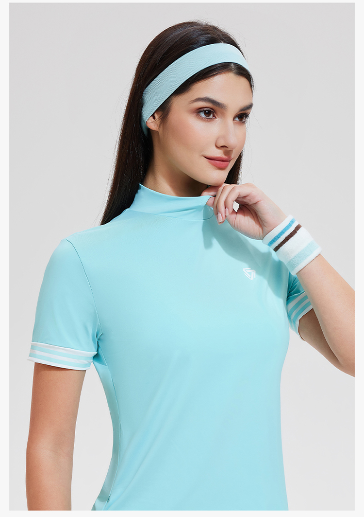 【上新】科里芙半高领显瘦高尔夫短袖凉感透气运动休闲跑步T恤女子
