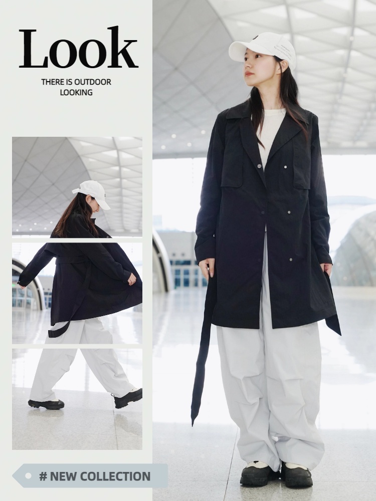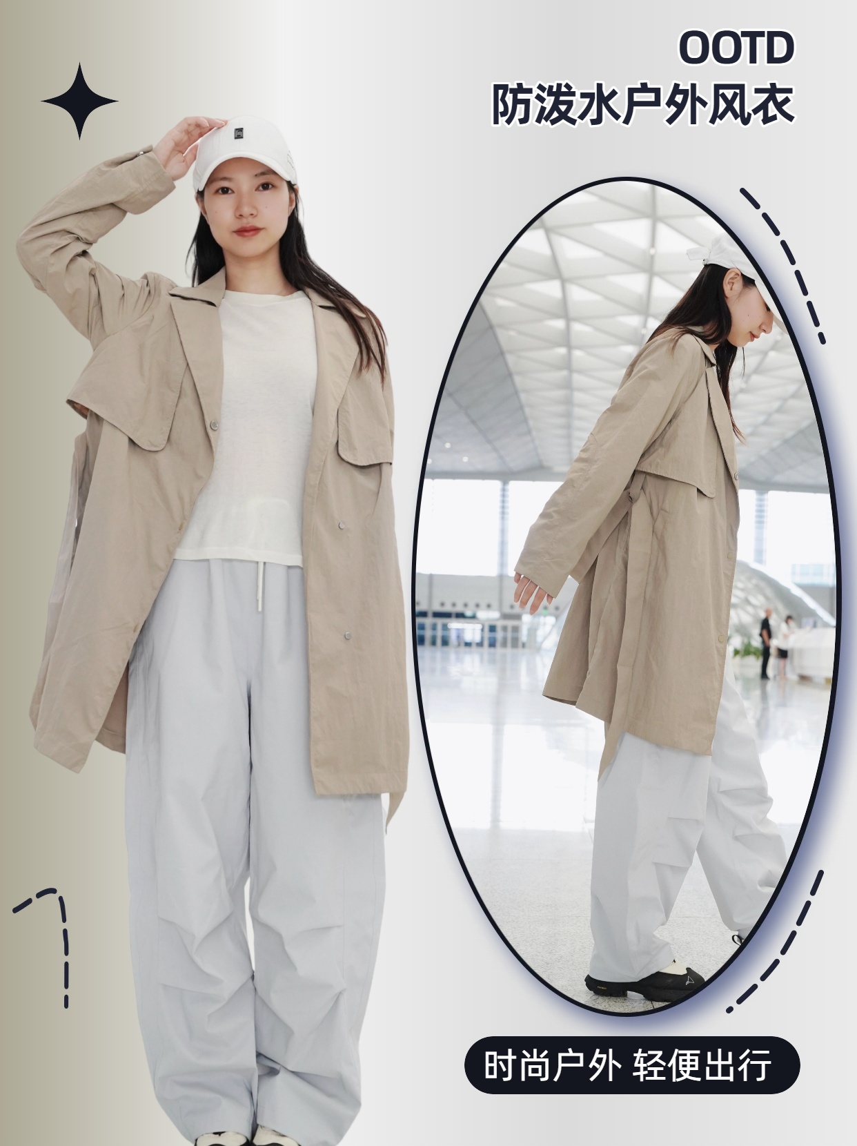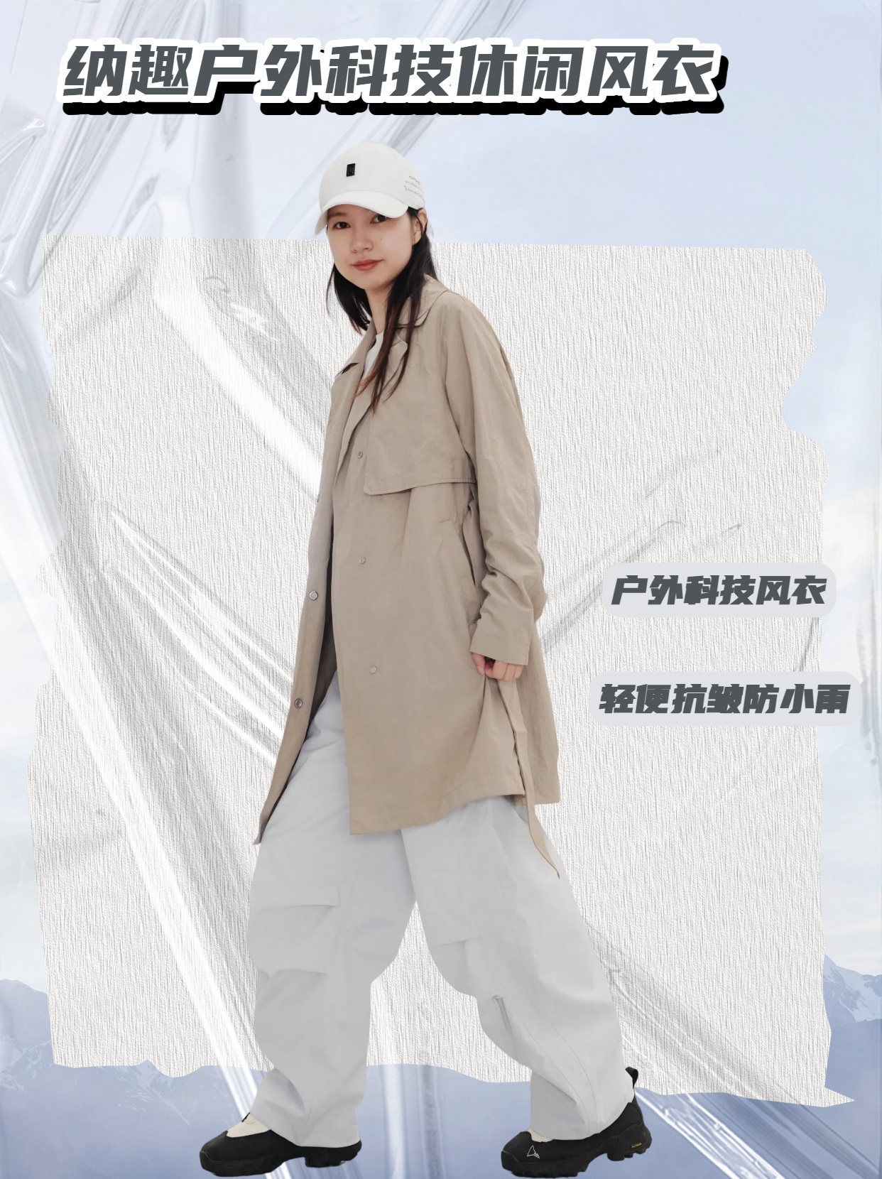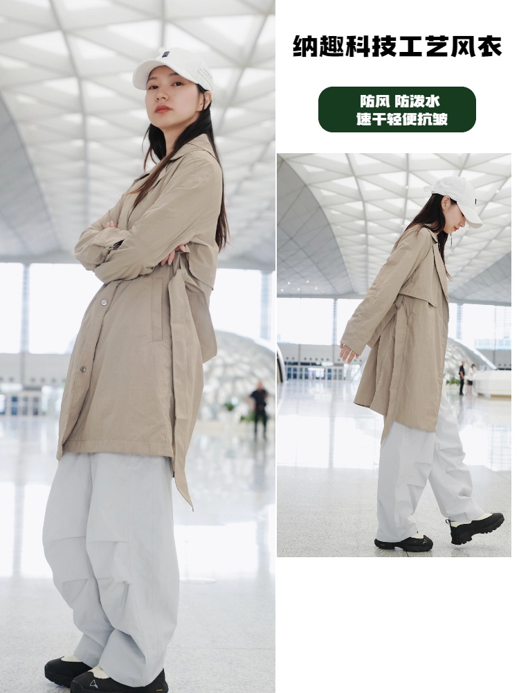 纳趣轻便户外旅行风衣防风防泼水速干抗皱风衣外套女中长款
