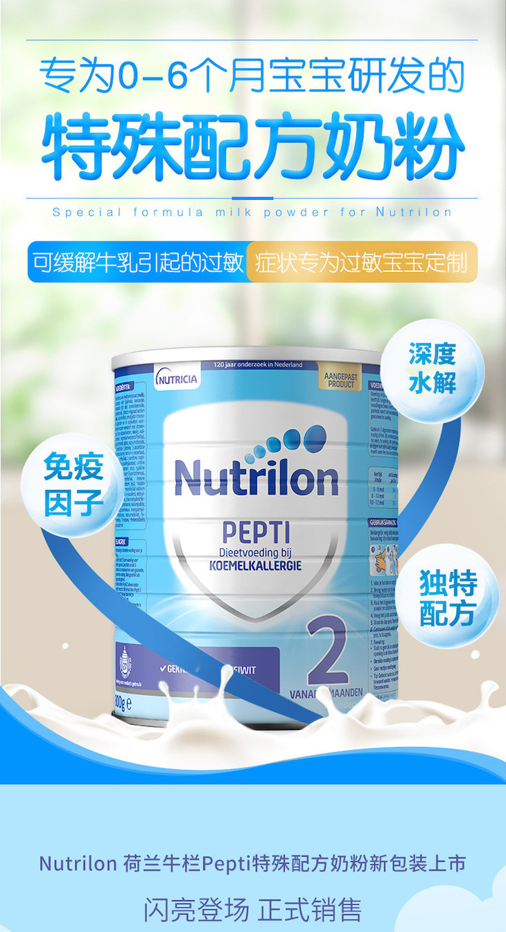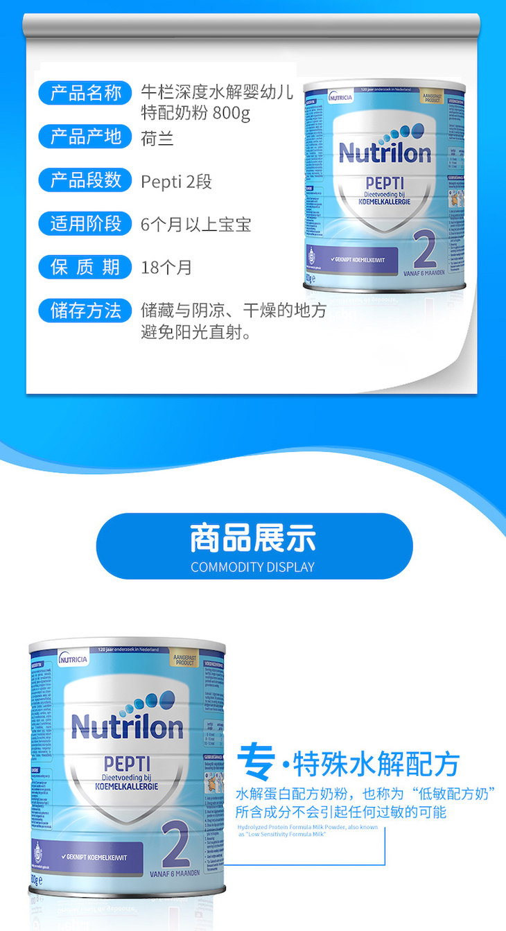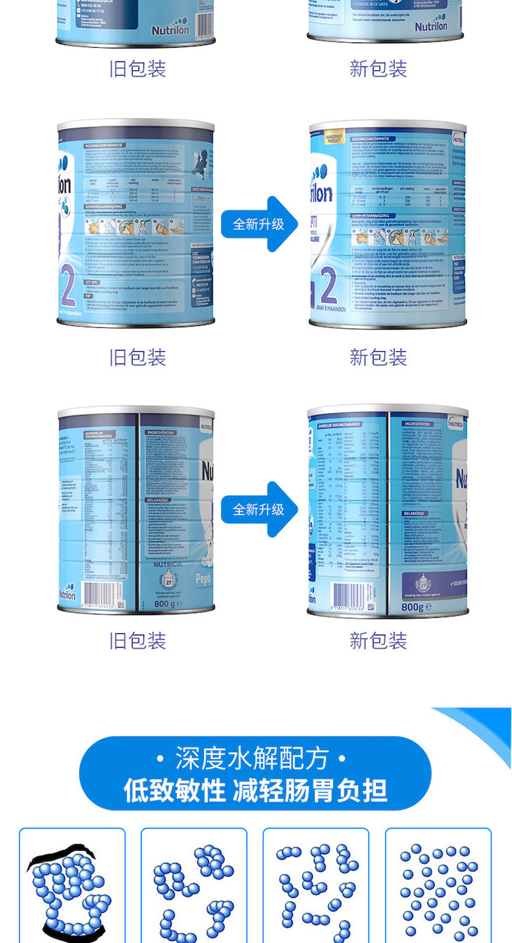 【保税仓】荷兰牛栏Nutrilon深度水解抗敏2段800G/罐