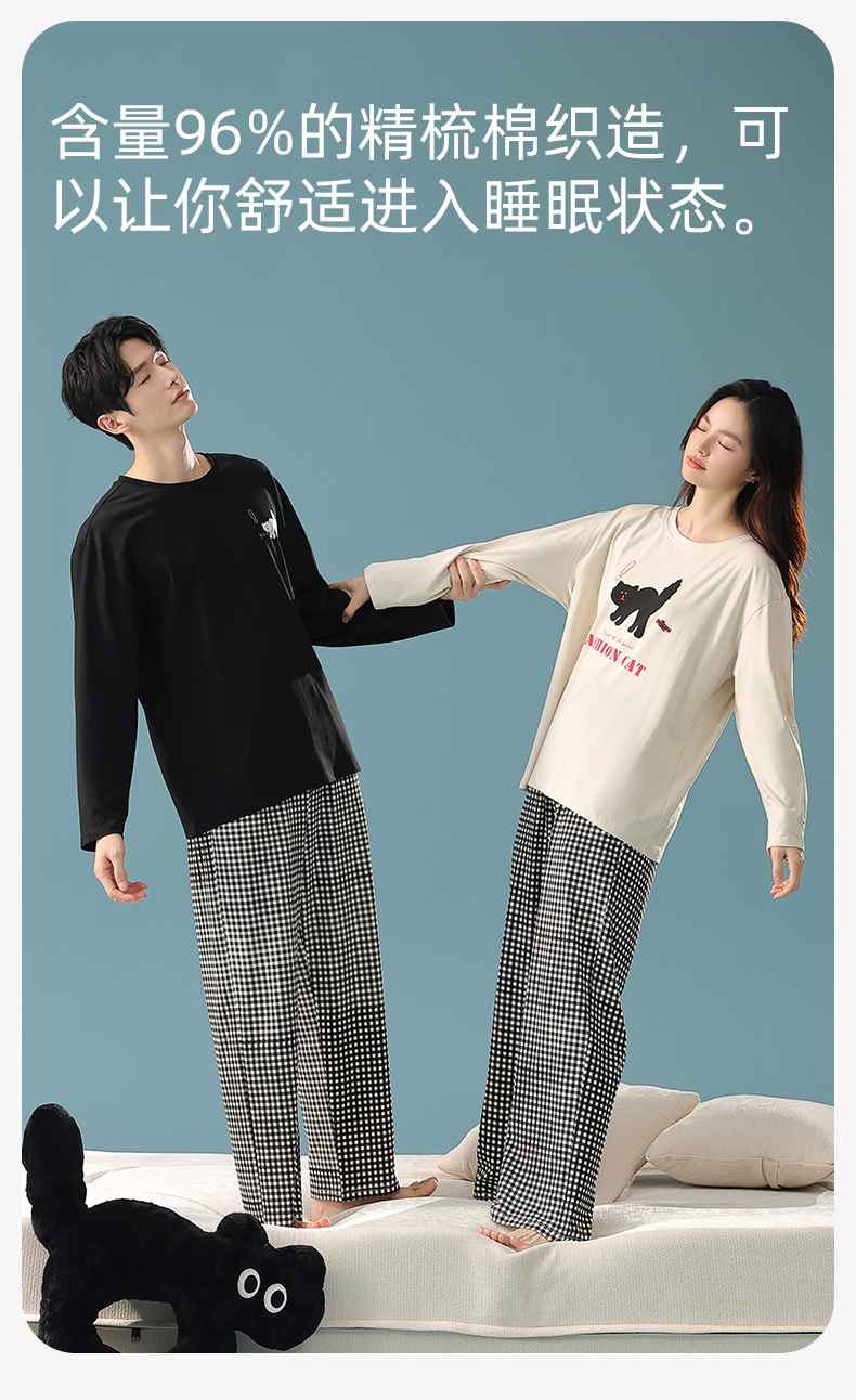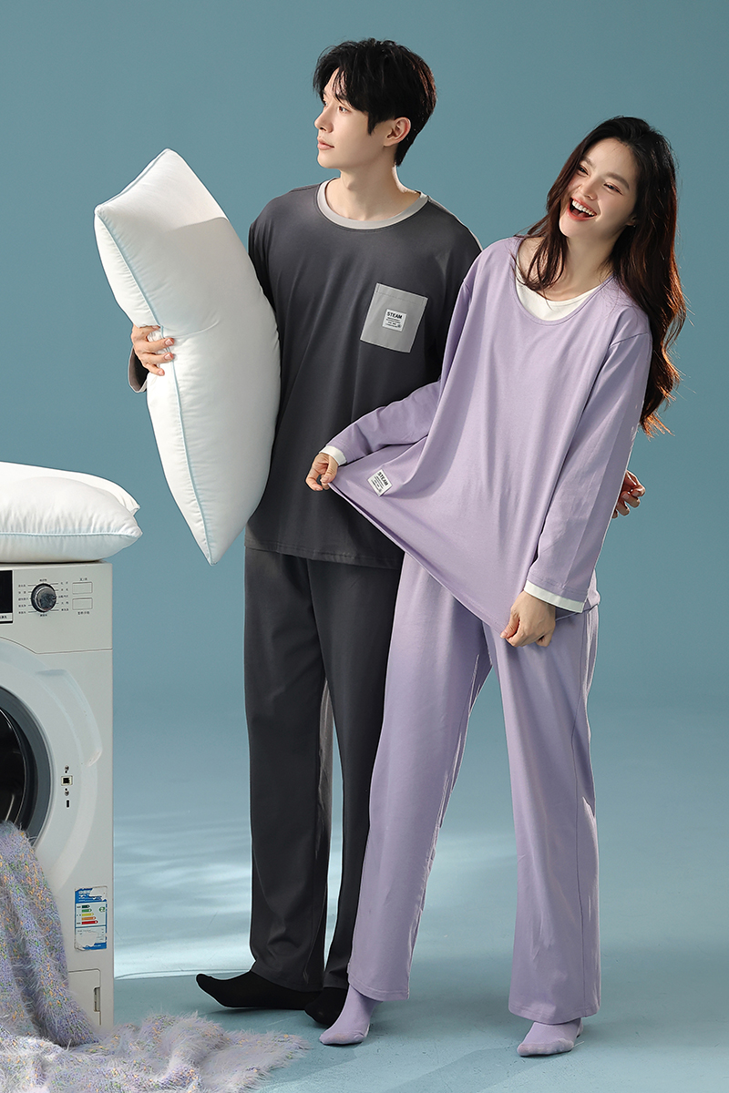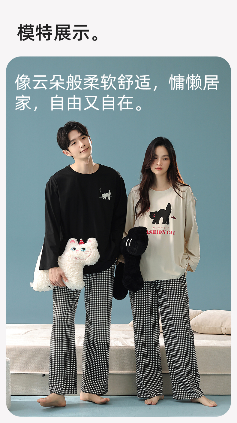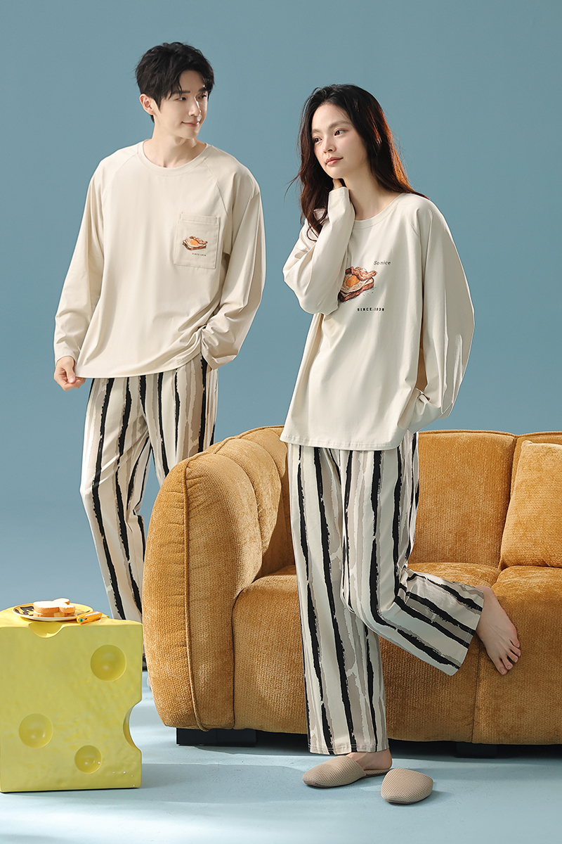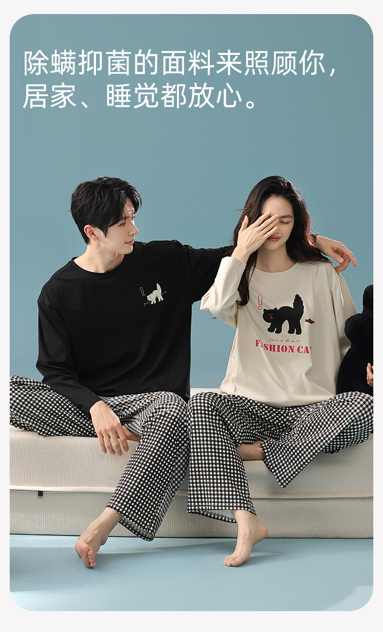 【抗菌新疆棉】自然醒「天生一对」秋季A类长袖情侣睡衣长裤纯棉家居服套装JLM