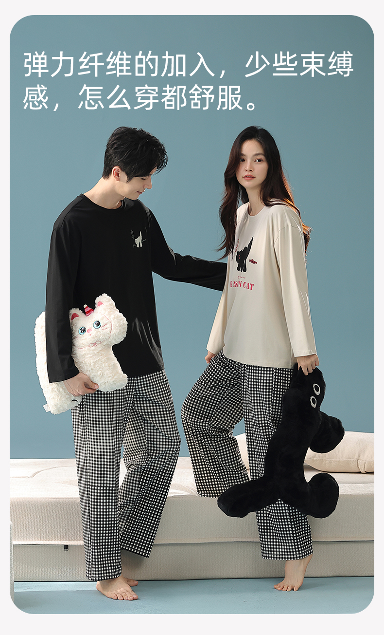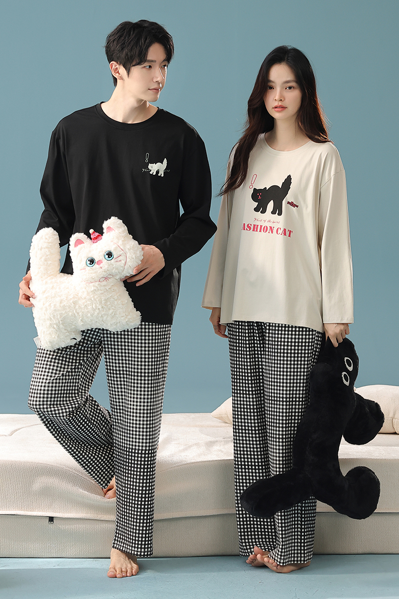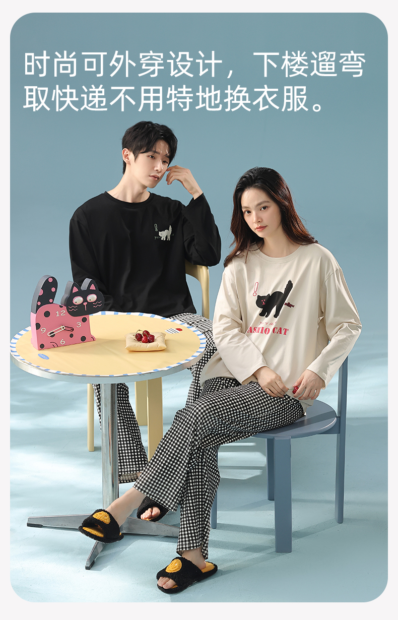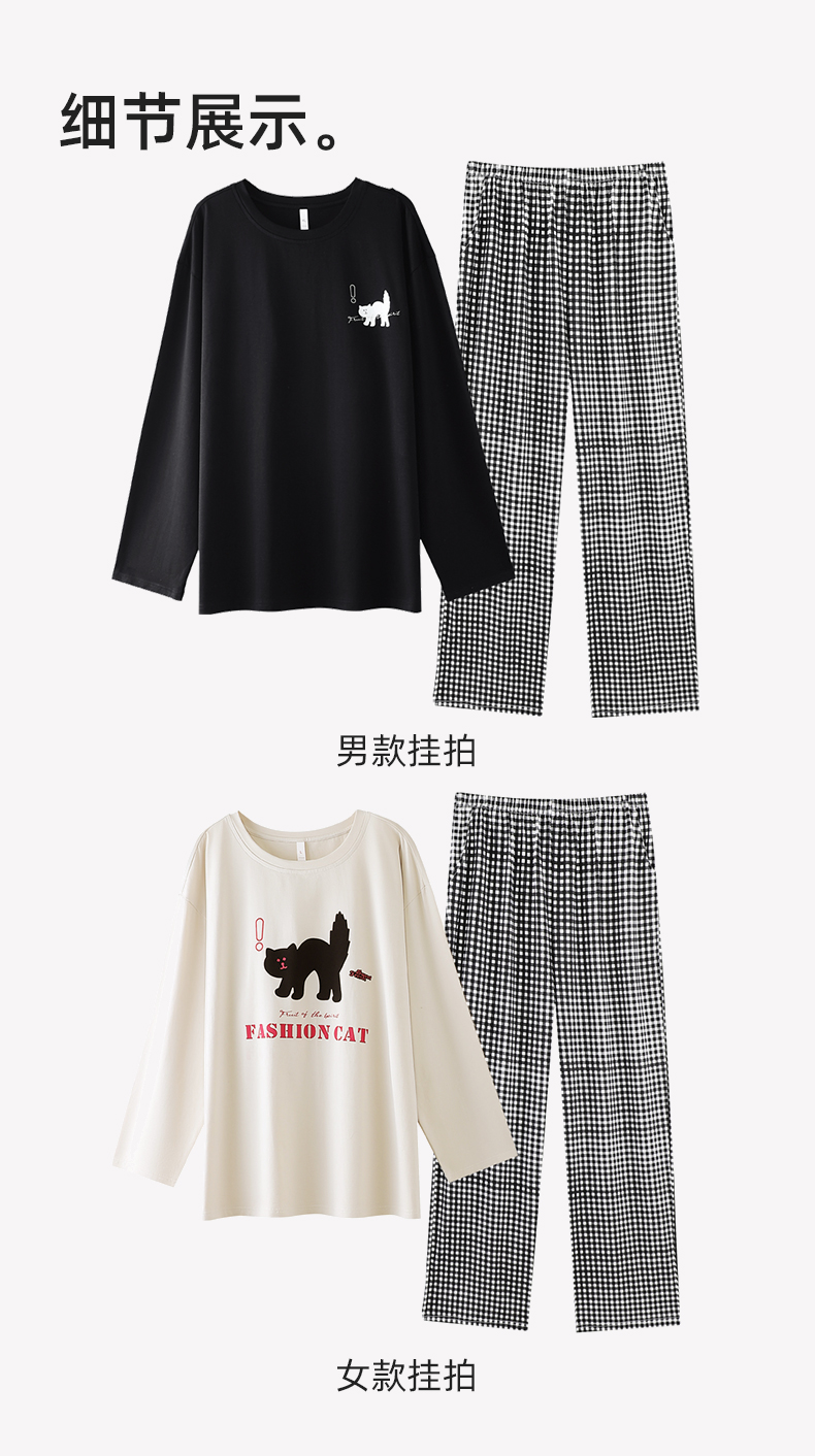 【抗菌新疆棉】自然醒「天生一对」秋季A类长袖情侣睡衣长裤纯棉家居服套装JLM