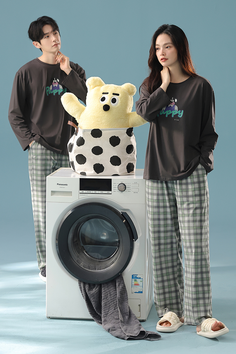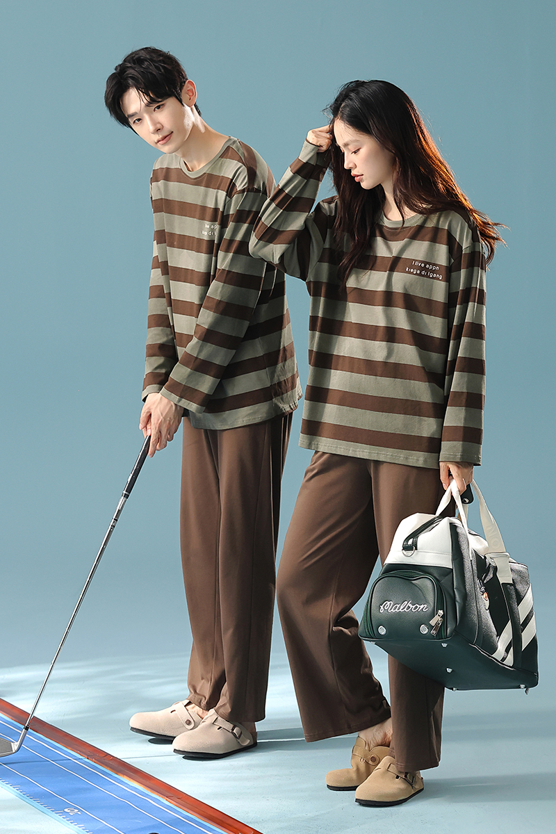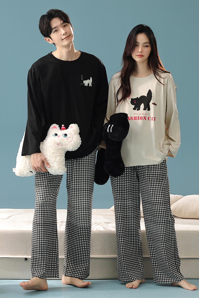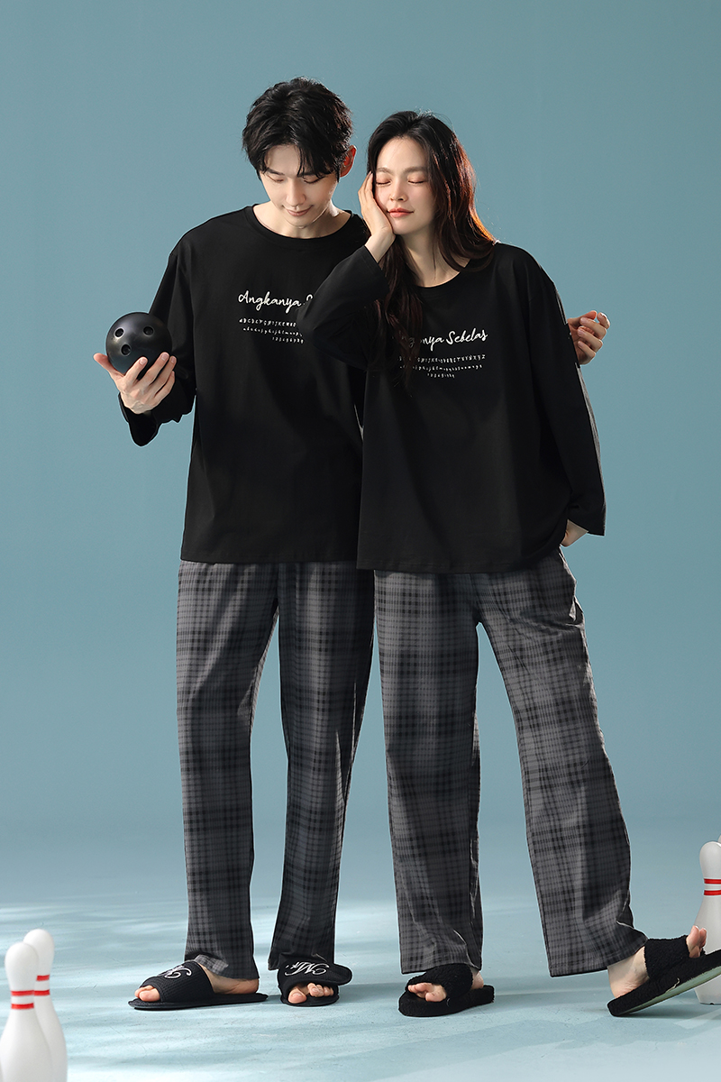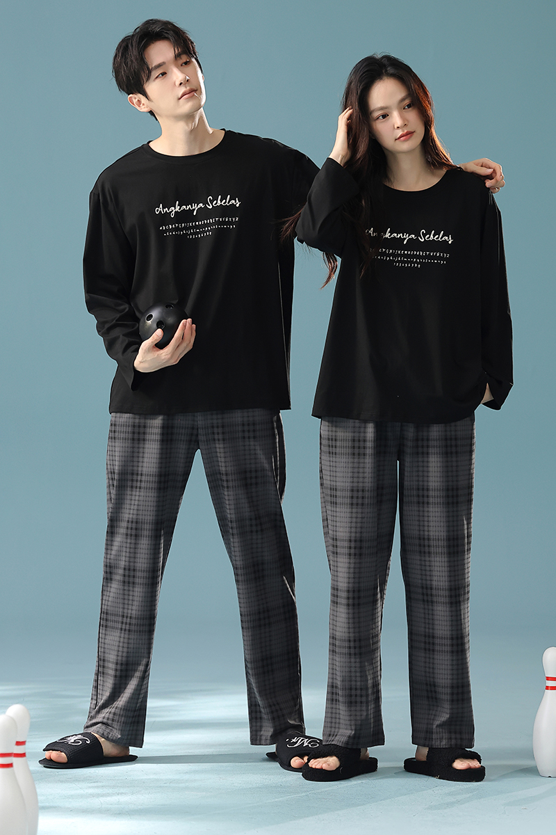 【抗菌新疆棉】自然醒「天生一对」秋季A类长袖情侣睡衣长裤纯棉家居服套装JLM