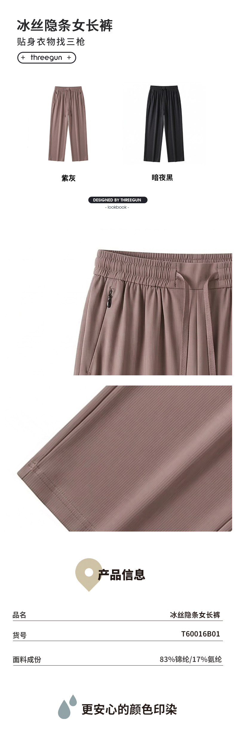 Threegun三枪 冰丝隐条女长裤-T60016B01