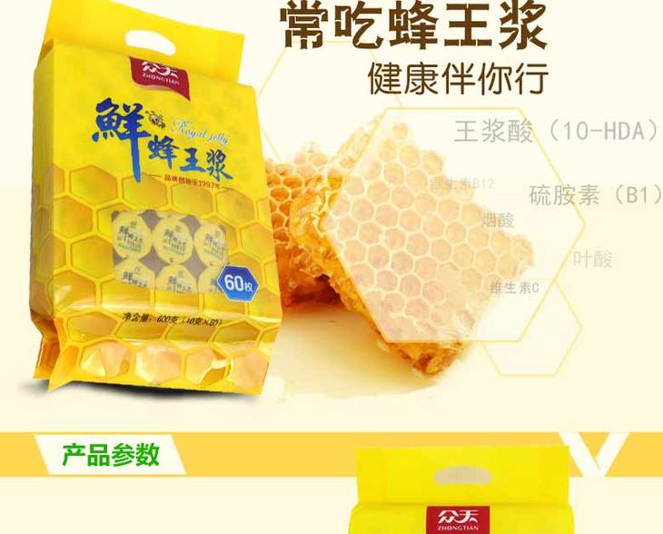 【绿色认证】众天 活性蜂王浆600克(10克60枚)果冻装