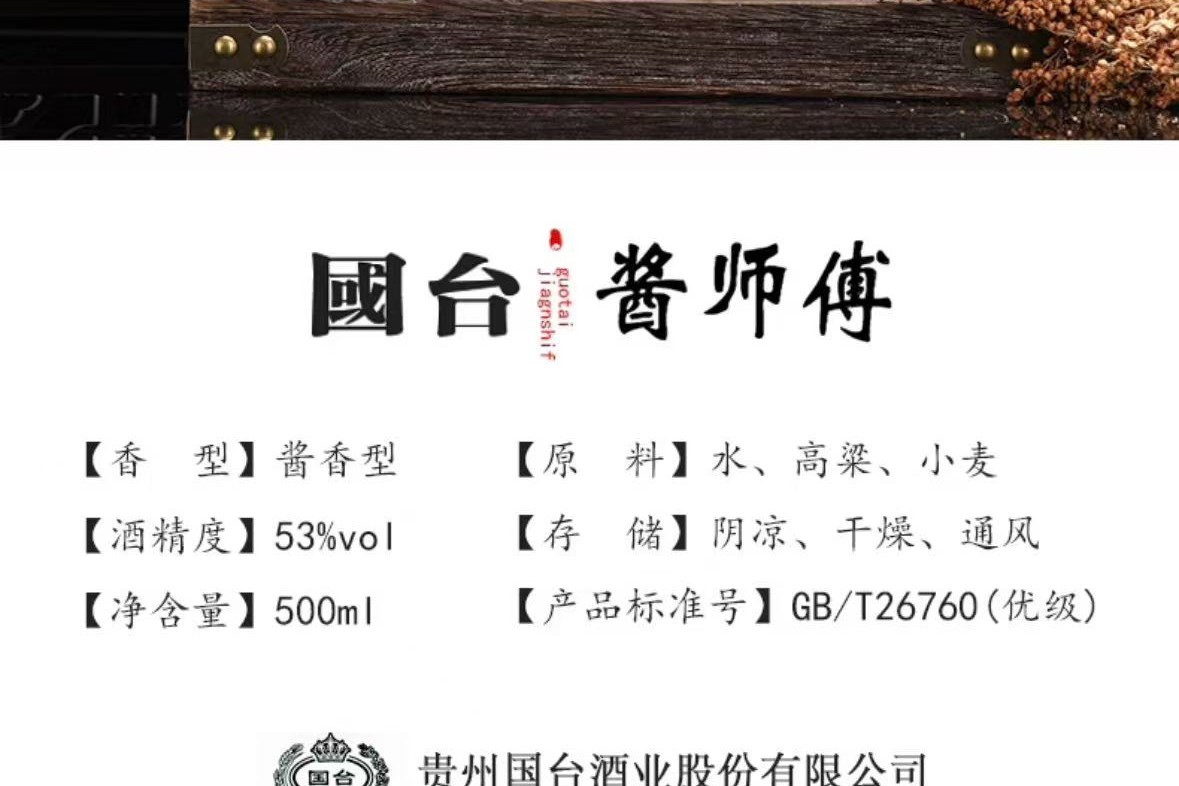 国台酱师傅 53度酱香型白酒 整箱500ml*6瓶包邮