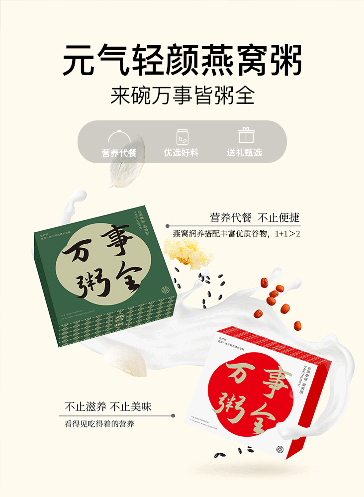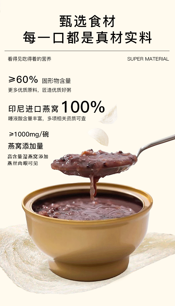 2、燕春语品牌燕窝粥的固形物含量更高(料更多更足):我们的不低于60%,而有些其他品牌是不低于35%;