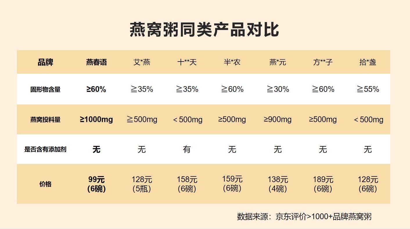 1、燕春语燕窝粥是每碗1000mg燕窝添加,其他品牌*姆版500mg/碗