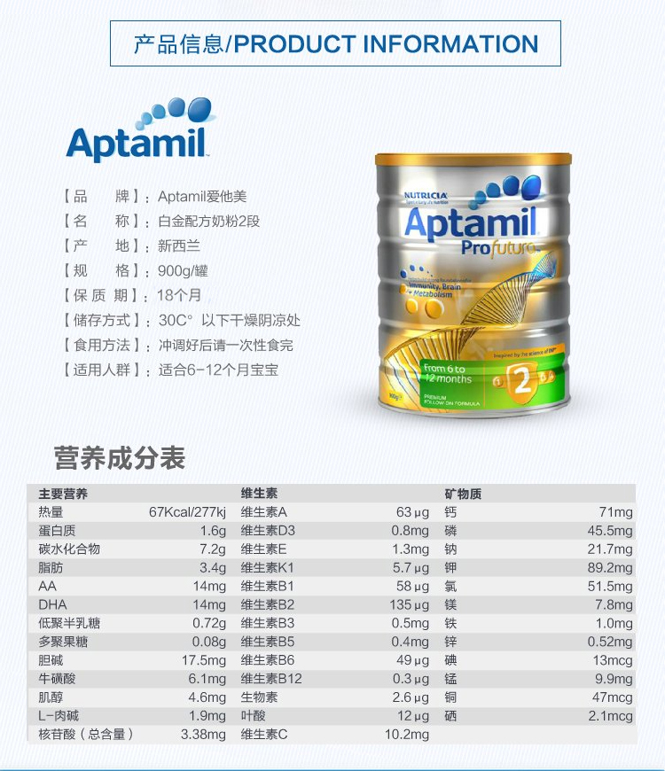 爱他美 白金版profutura奶粉 2段 900克 两罐装 澳洲
