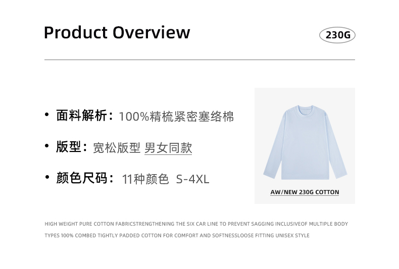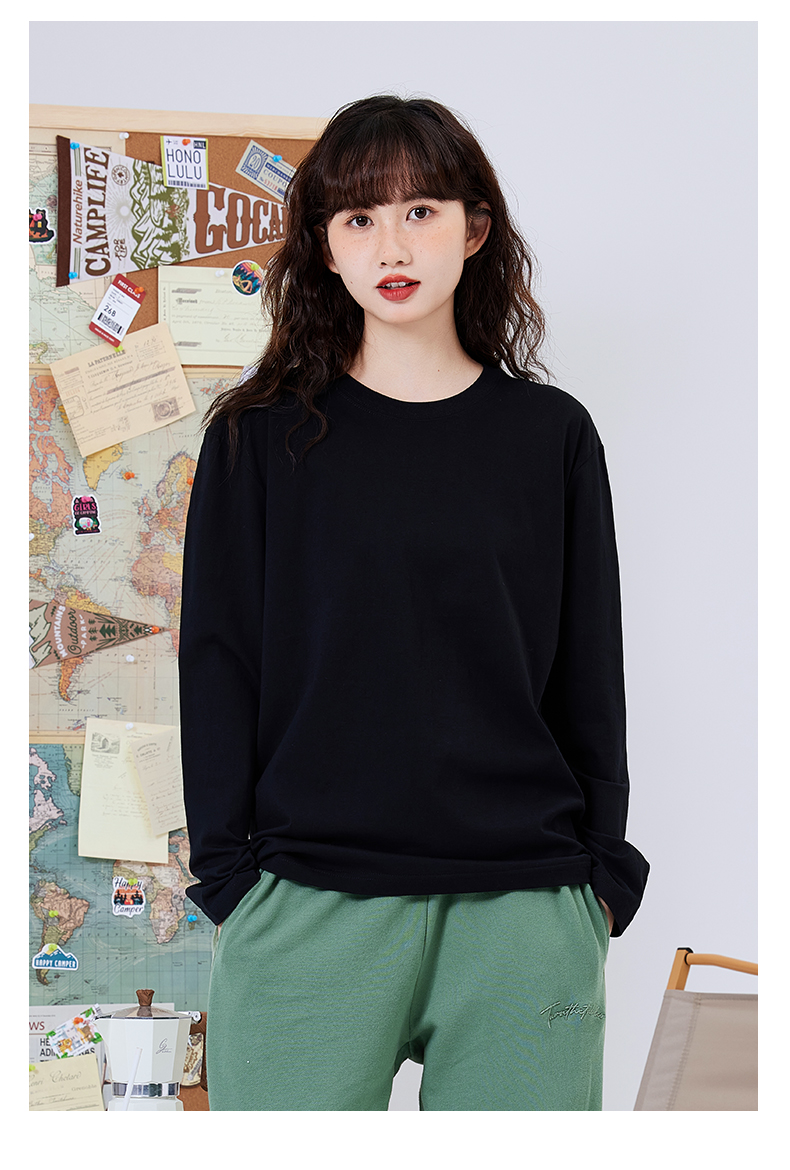 【春季特卖,特惠3件装】【拍一件不发, 选3件加入购物车自动减】春秋季230g长袖T恤男女同款纯棉圆领宽松百搭叠穿上衣休闲情侣打底衫