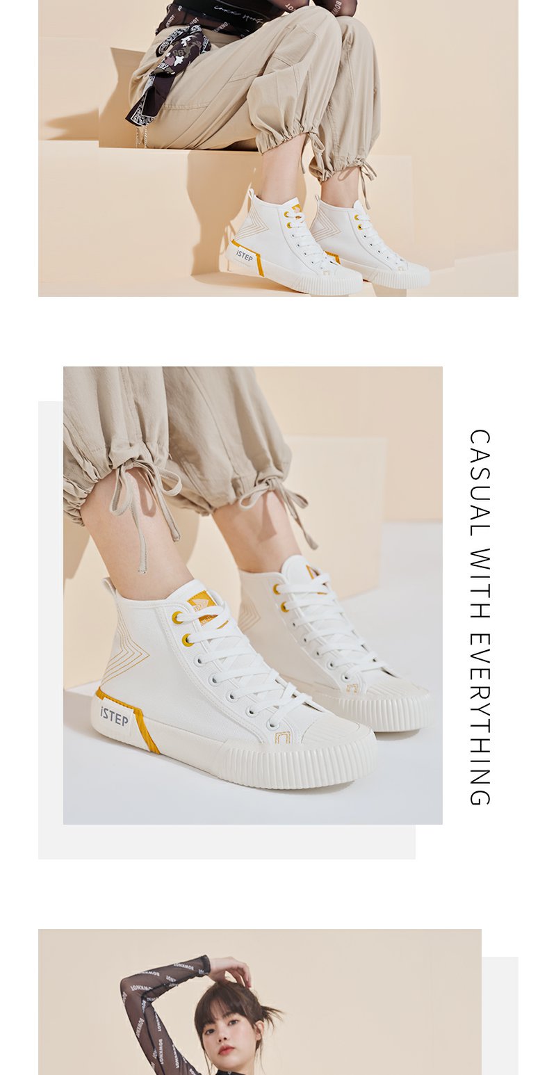 iSTEP日系高带纯色帆布鞋女款