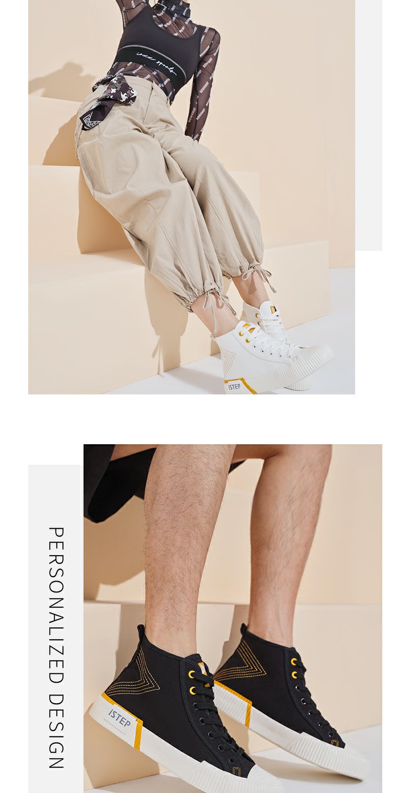 istep千里行2023新款解构高帮帆布鞋女情侣基础休闲鞋原创男板鞋