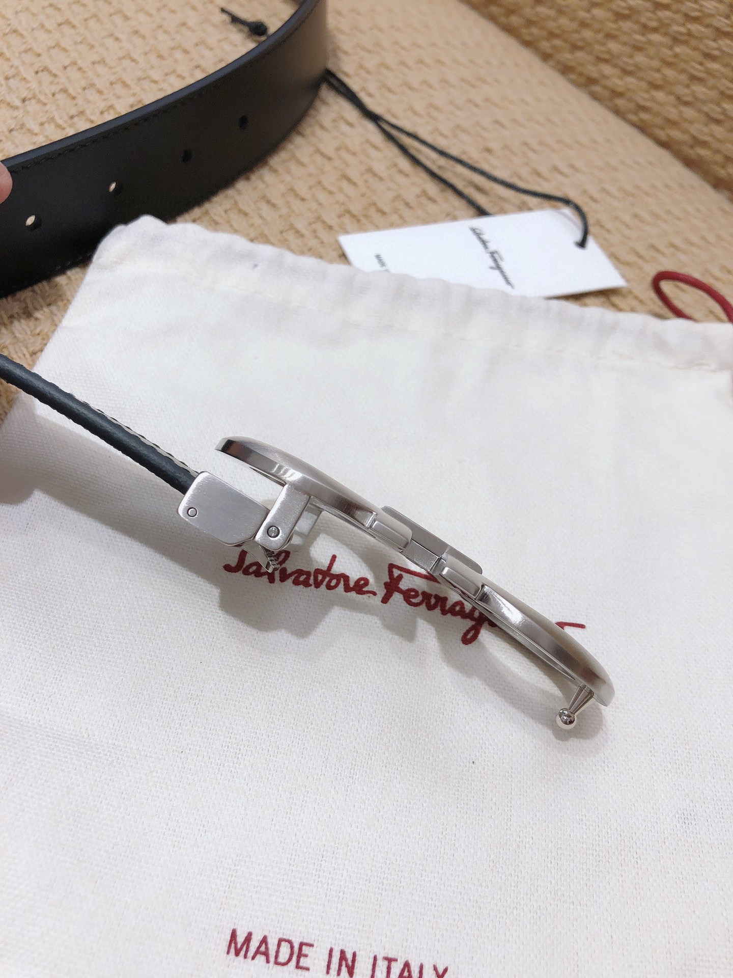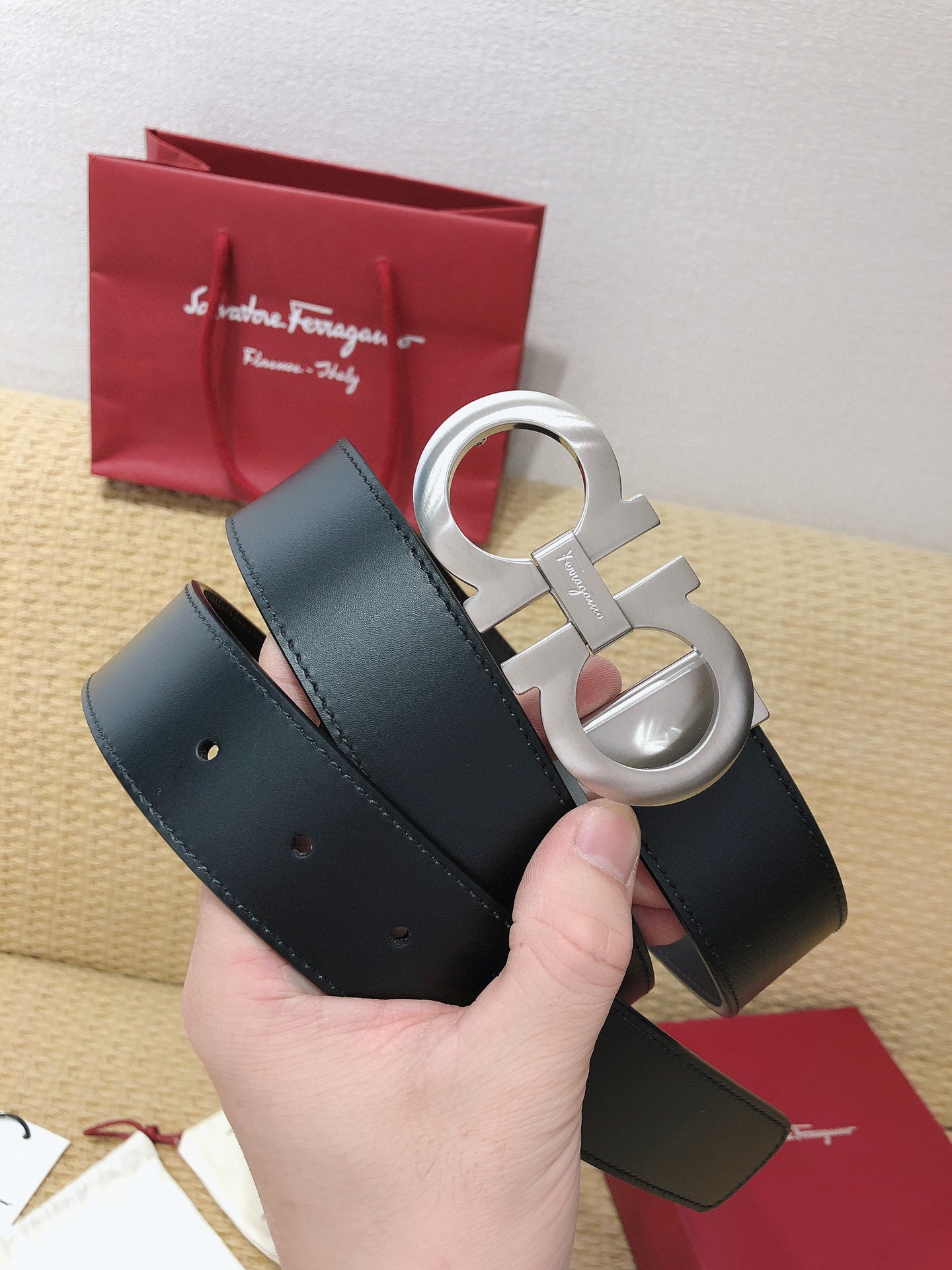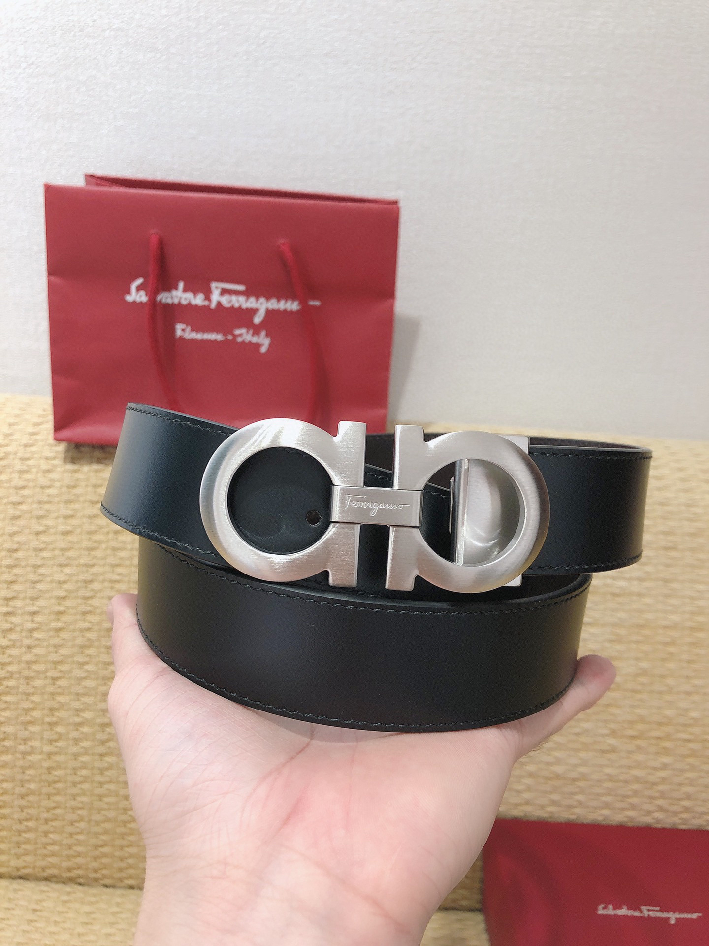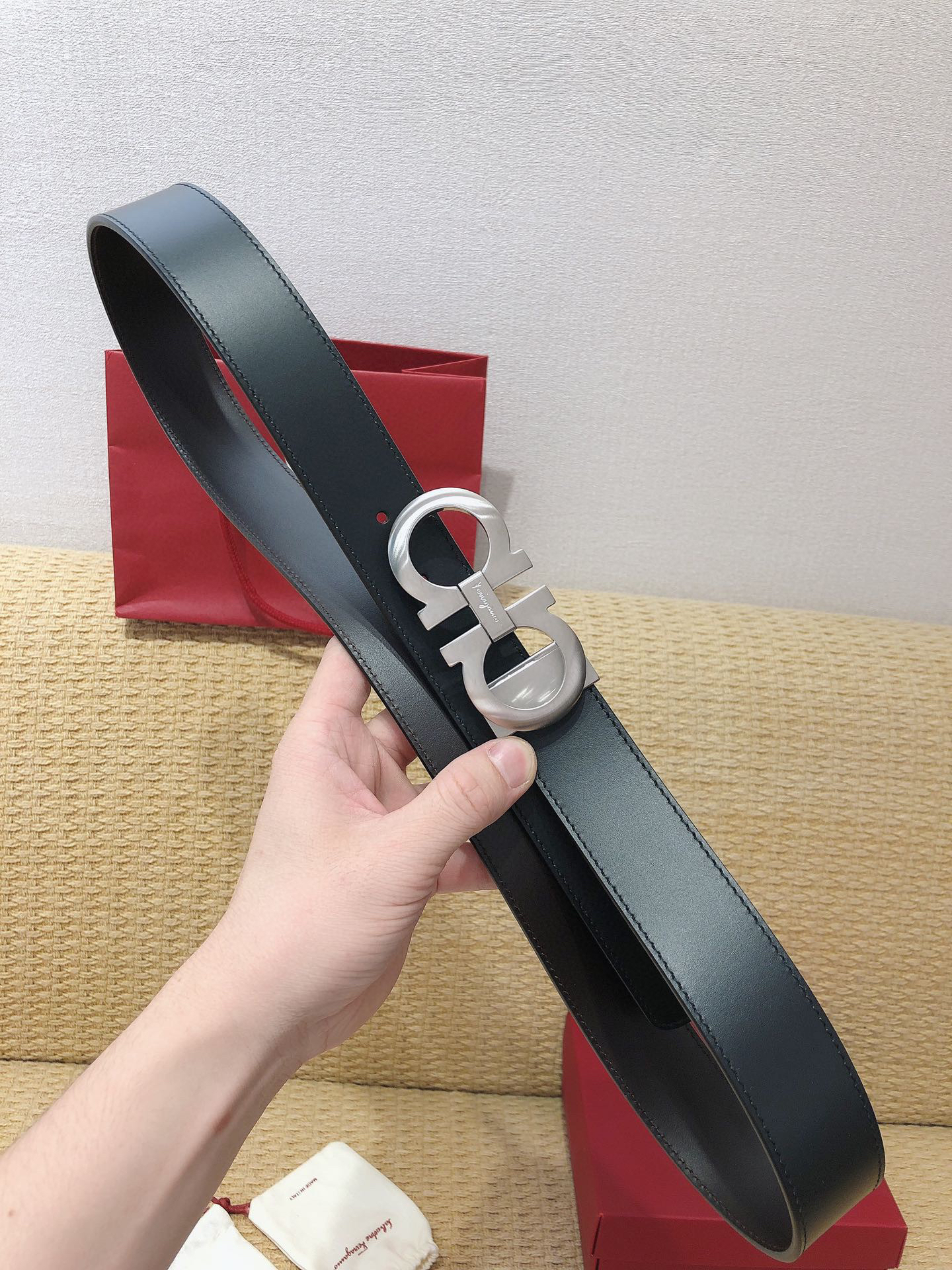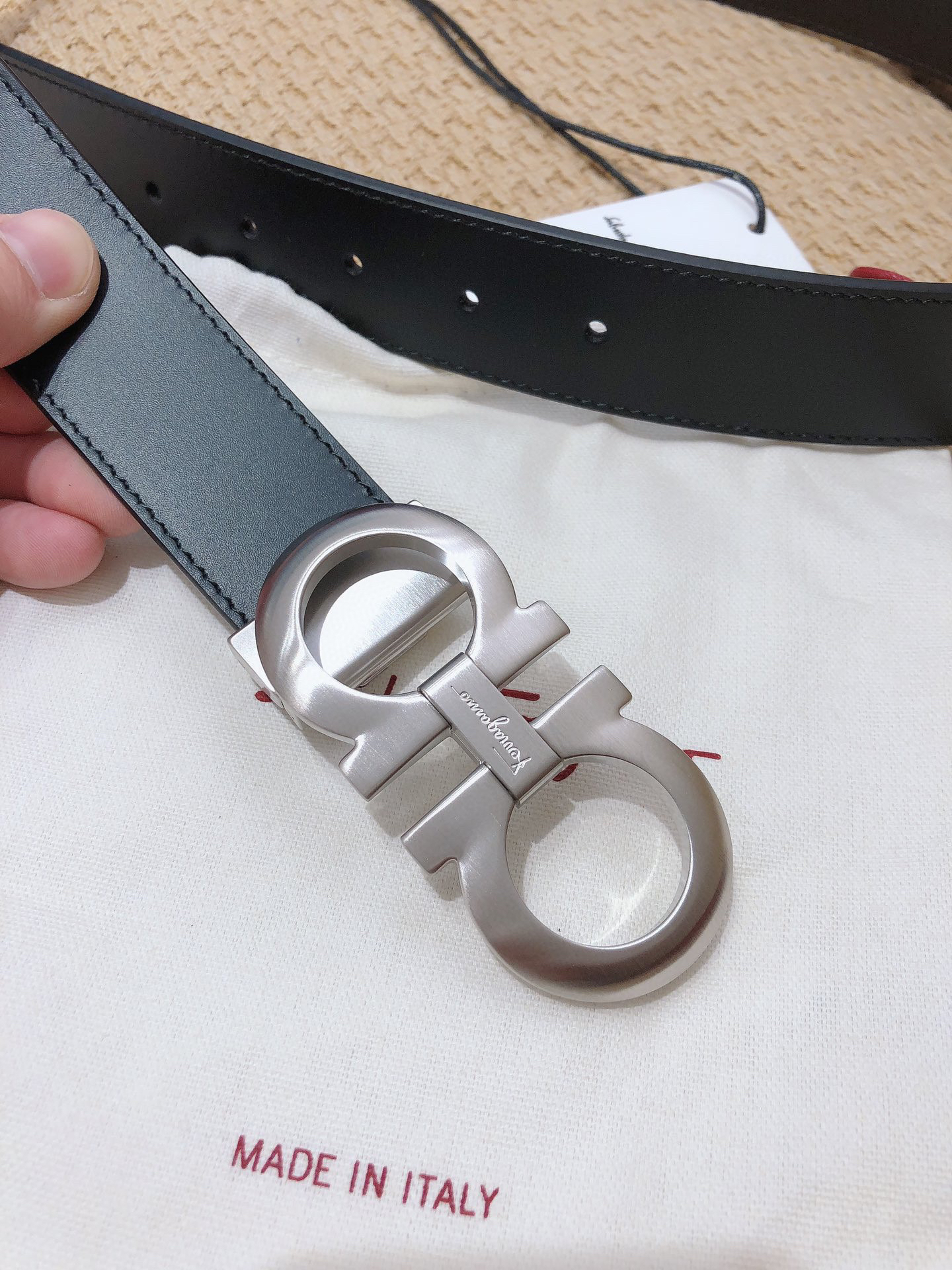 SF菲拉格慕-银色扣-黑棕双面牛皮