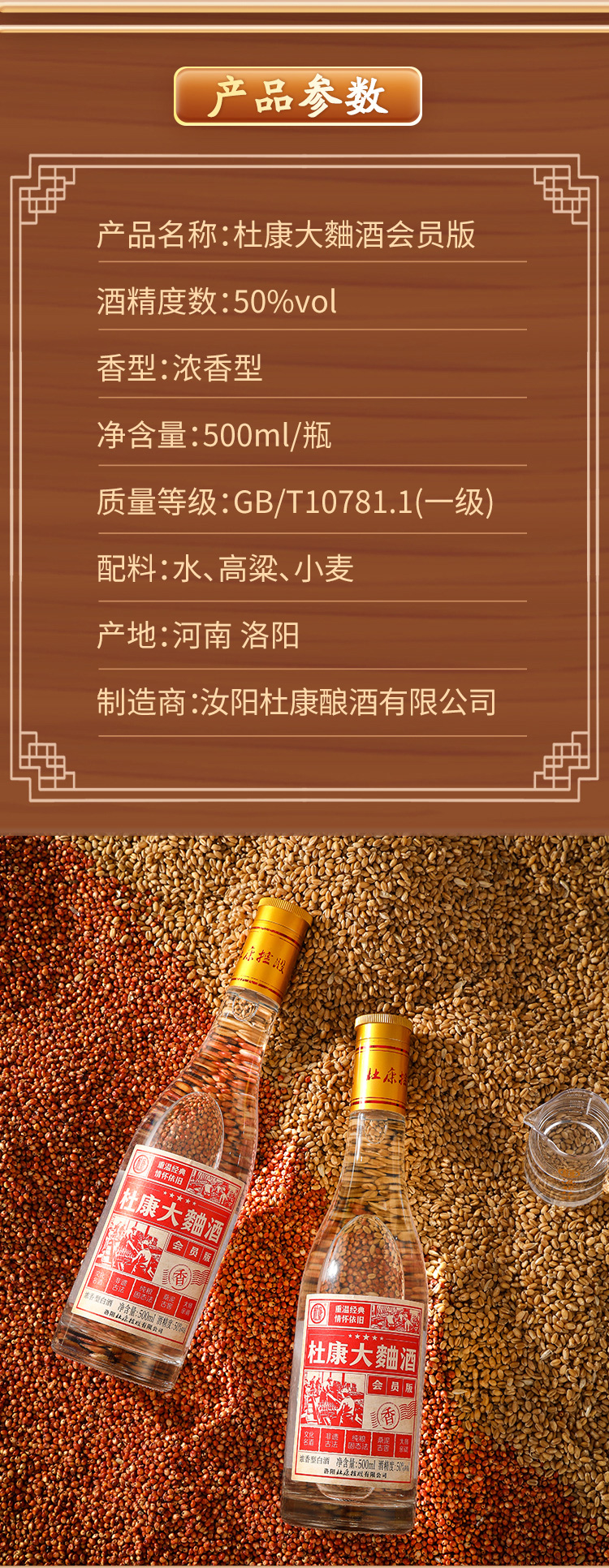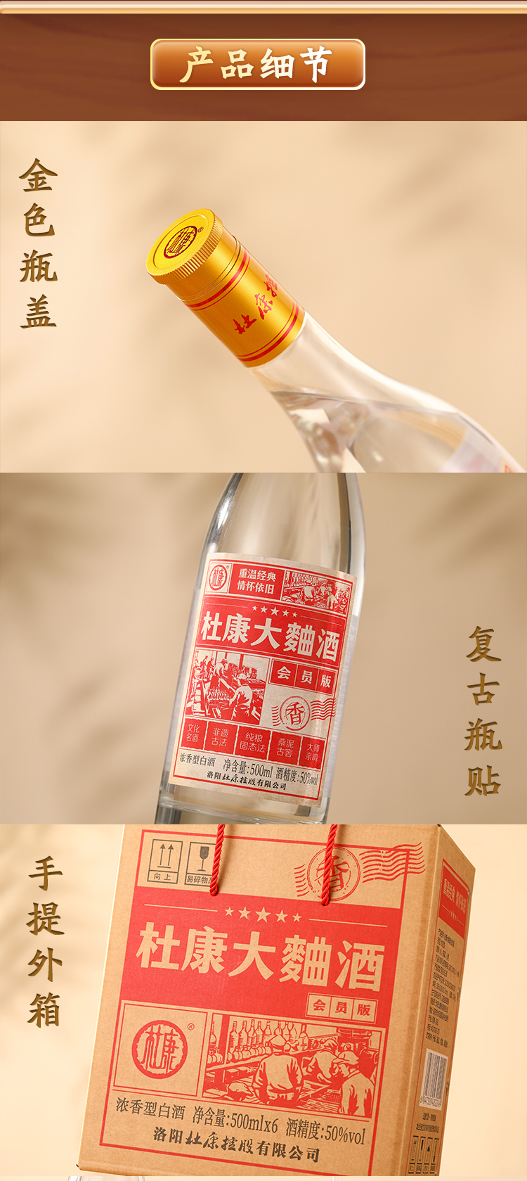 杜康大麯酒会员版 50度500ml*6瓶礼盒装整箱浓香型纯粮酒 下2单更划算。