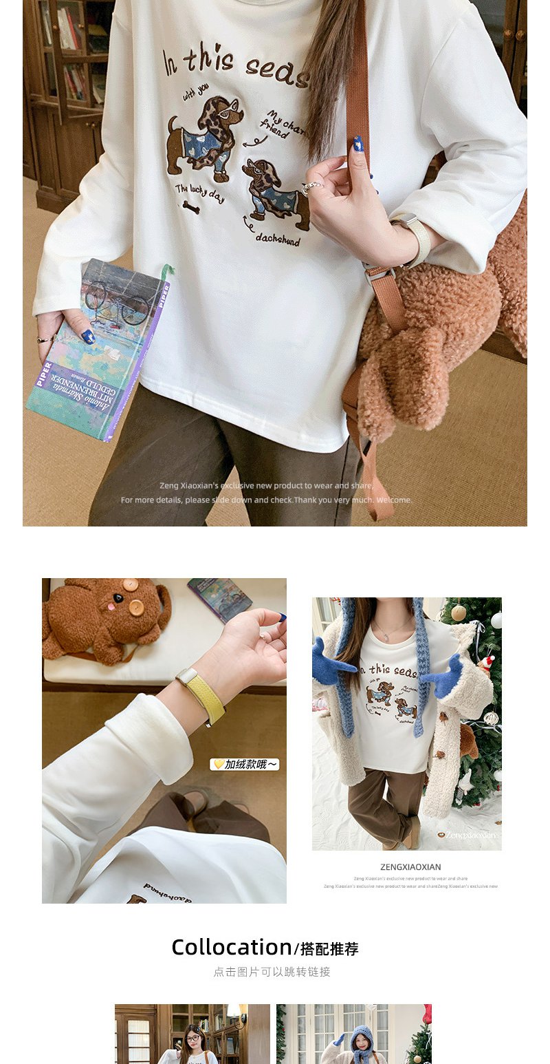 <曾小咸推荐>现货秒杀 !微信超特价!小狗印花加绒长袖t恤 日常139.99 立减70 秒杀69.99!!