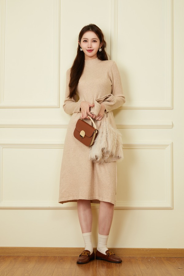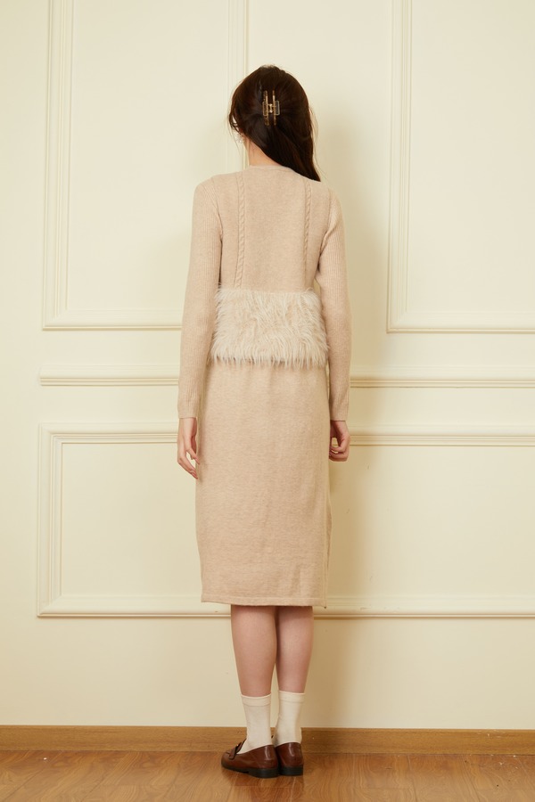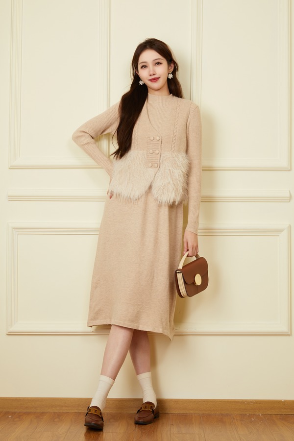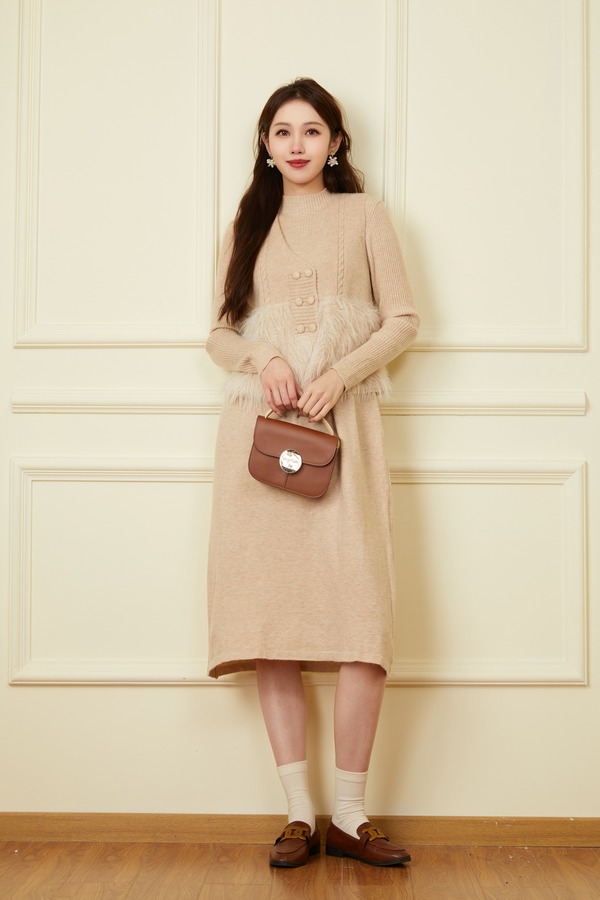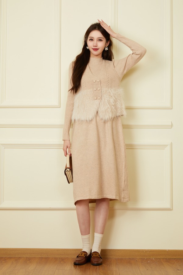 ELLA JADE 气质毛绒马甲连衣裙针织套装 19506