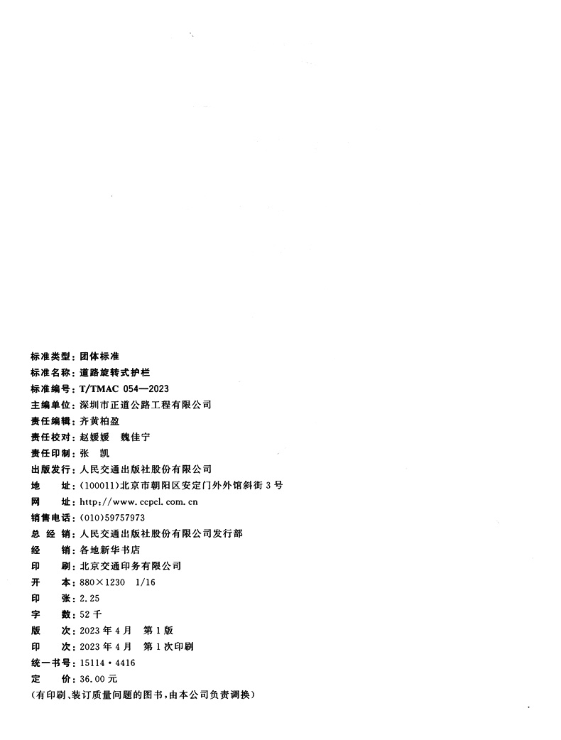 书名:道路旋转式护栏(T/TMAC 054—2023)