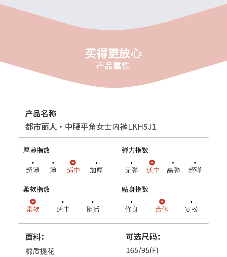 都市丽人舒肤棉纯棉系列棉质提花平角裤LKH5E7