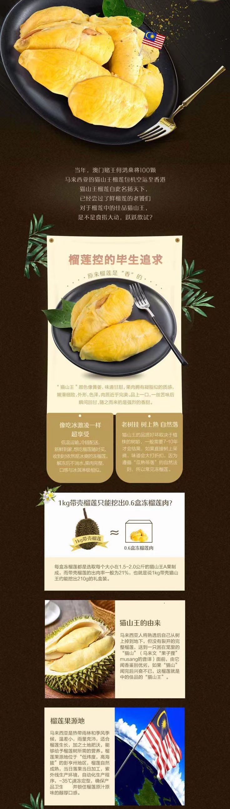 马来西亚猫山王冷冻榴莲果肉300g/盒