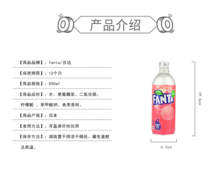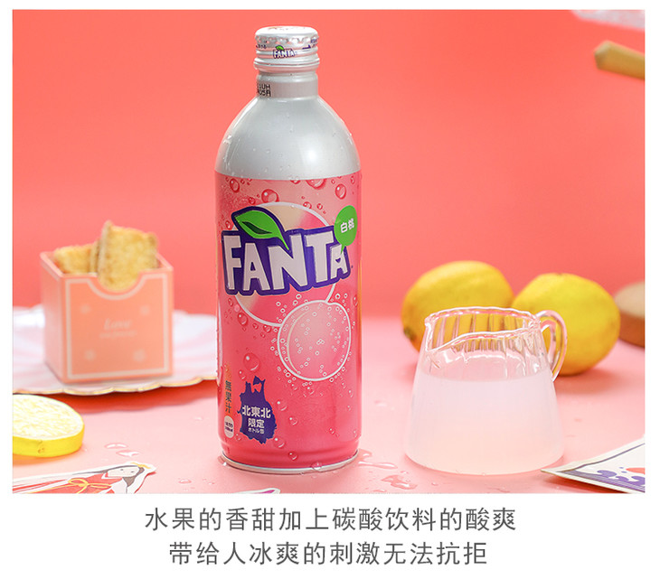 日本 进口可口可乐FANTA芬达白桃水蜜桃味碳酸饮料高颜值汽水 500ml