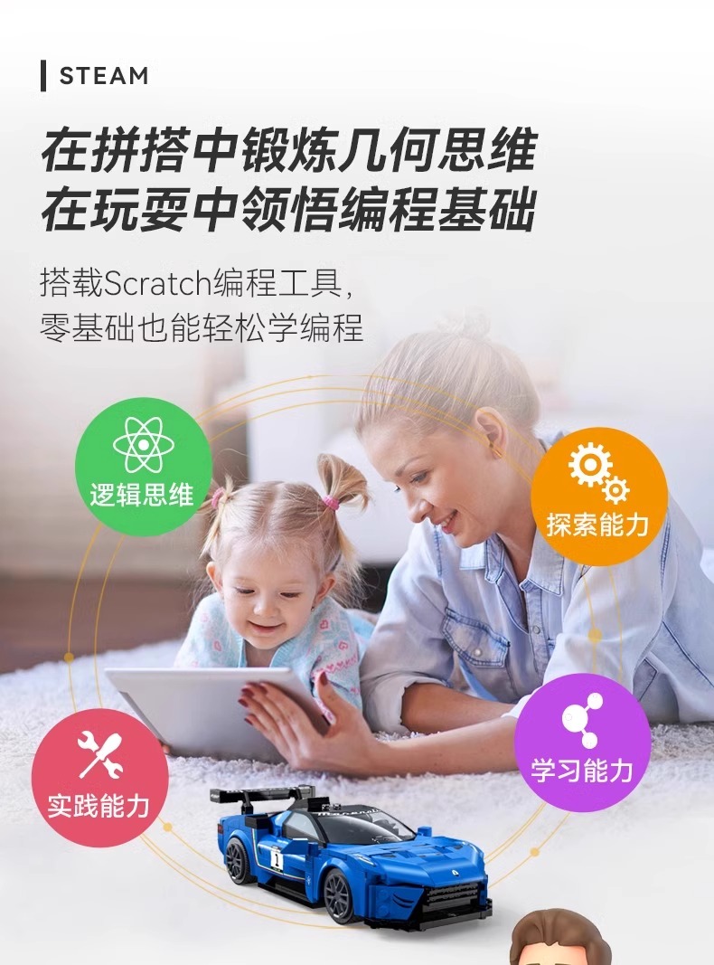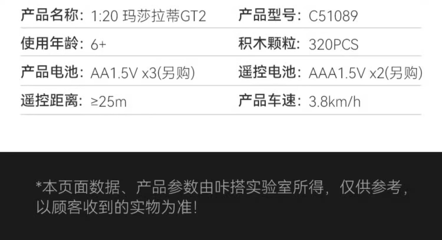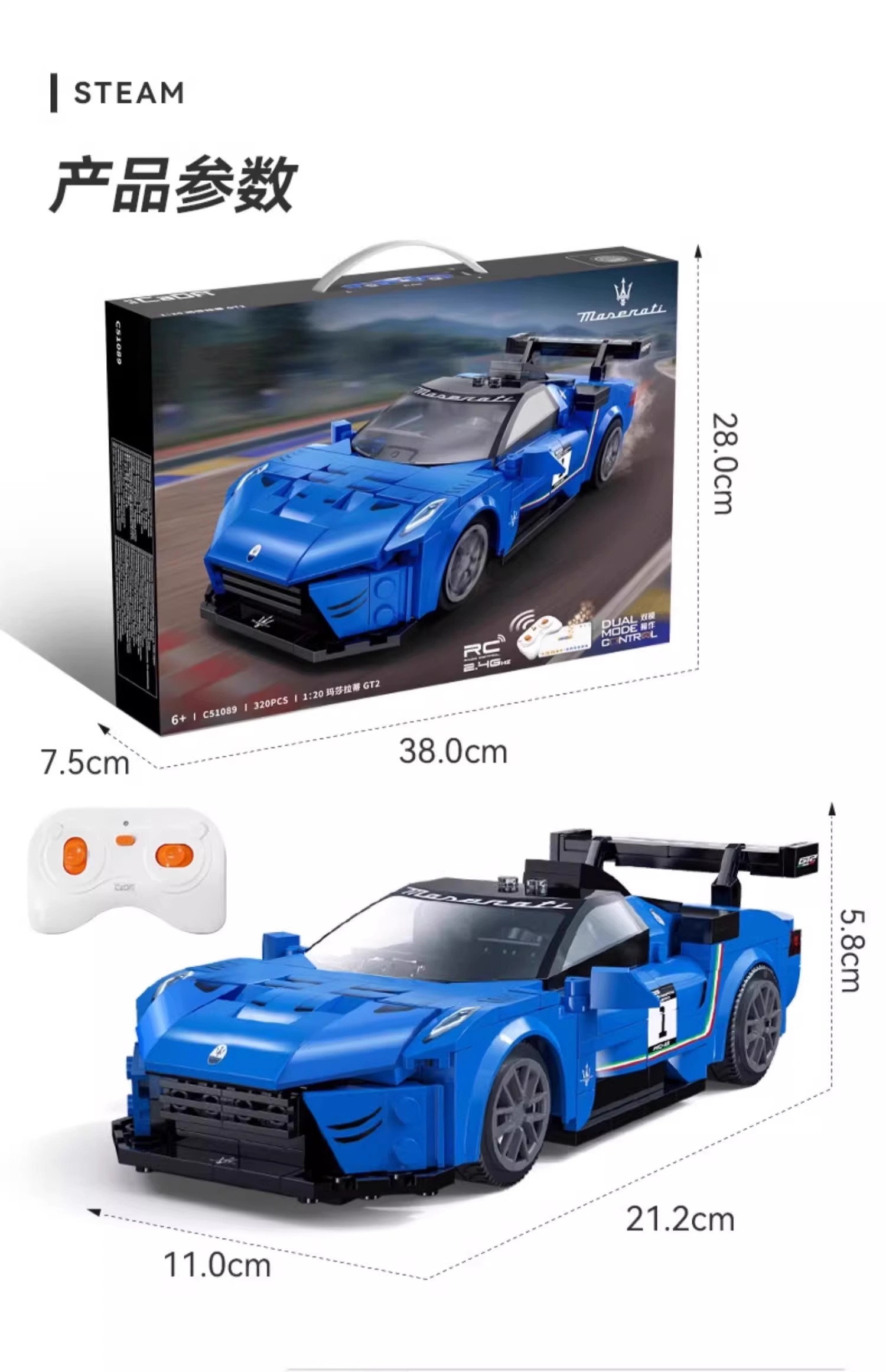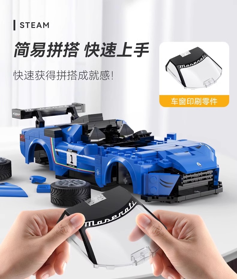 双鹰cada咔搭积木玛莎拉蒂GT2汽车模型男孩拼装玩具儿童跑车生日礼物