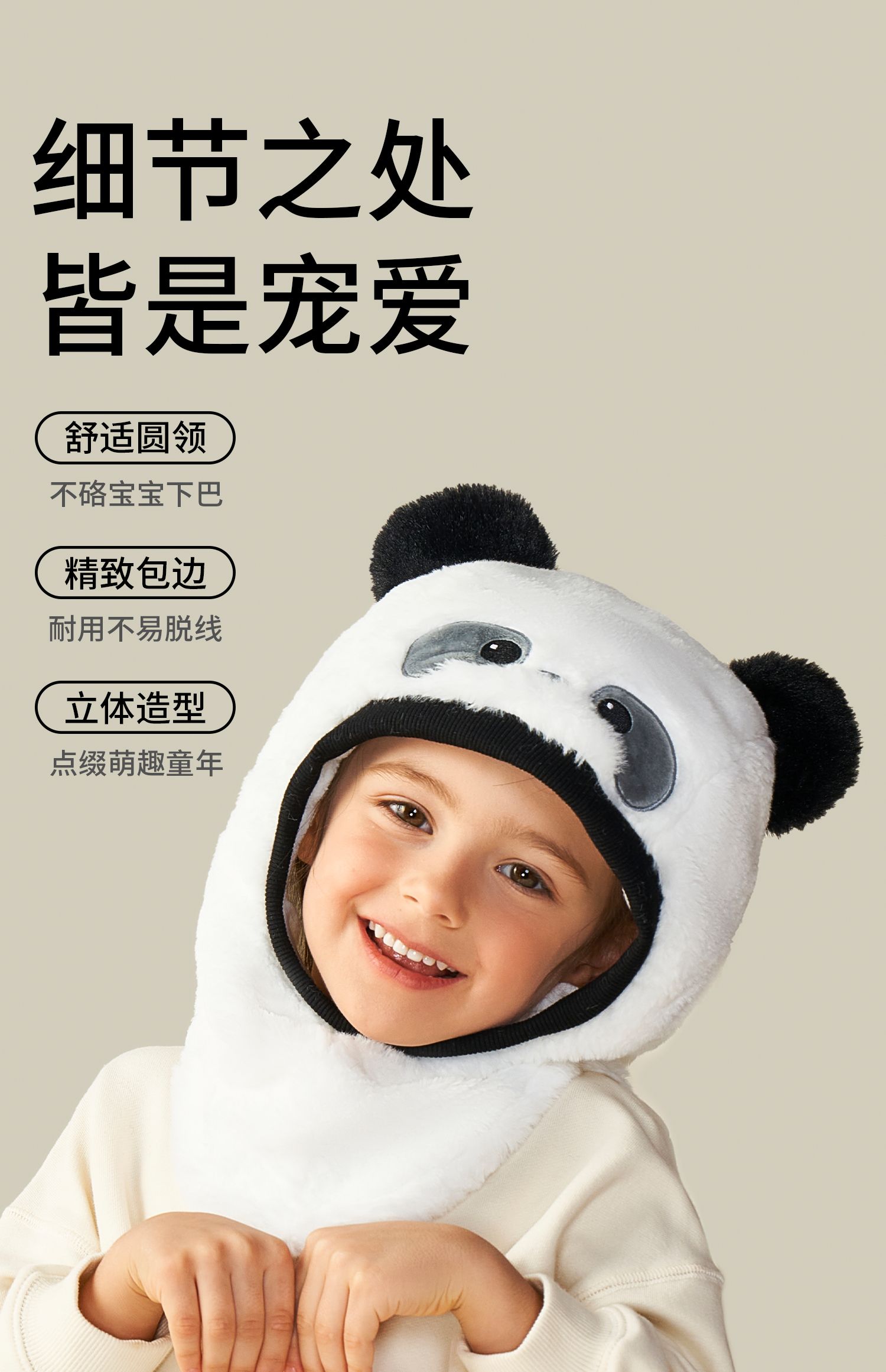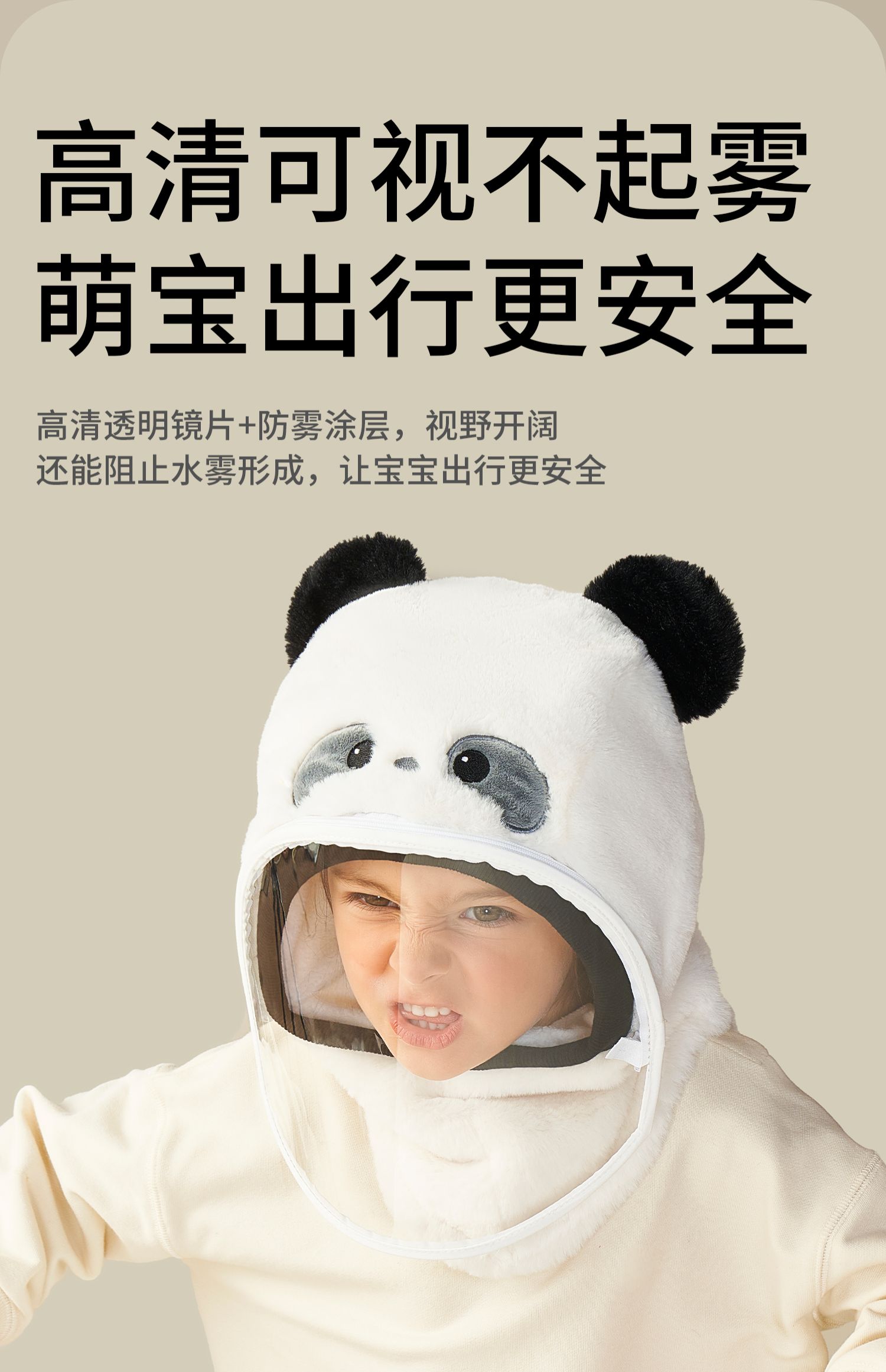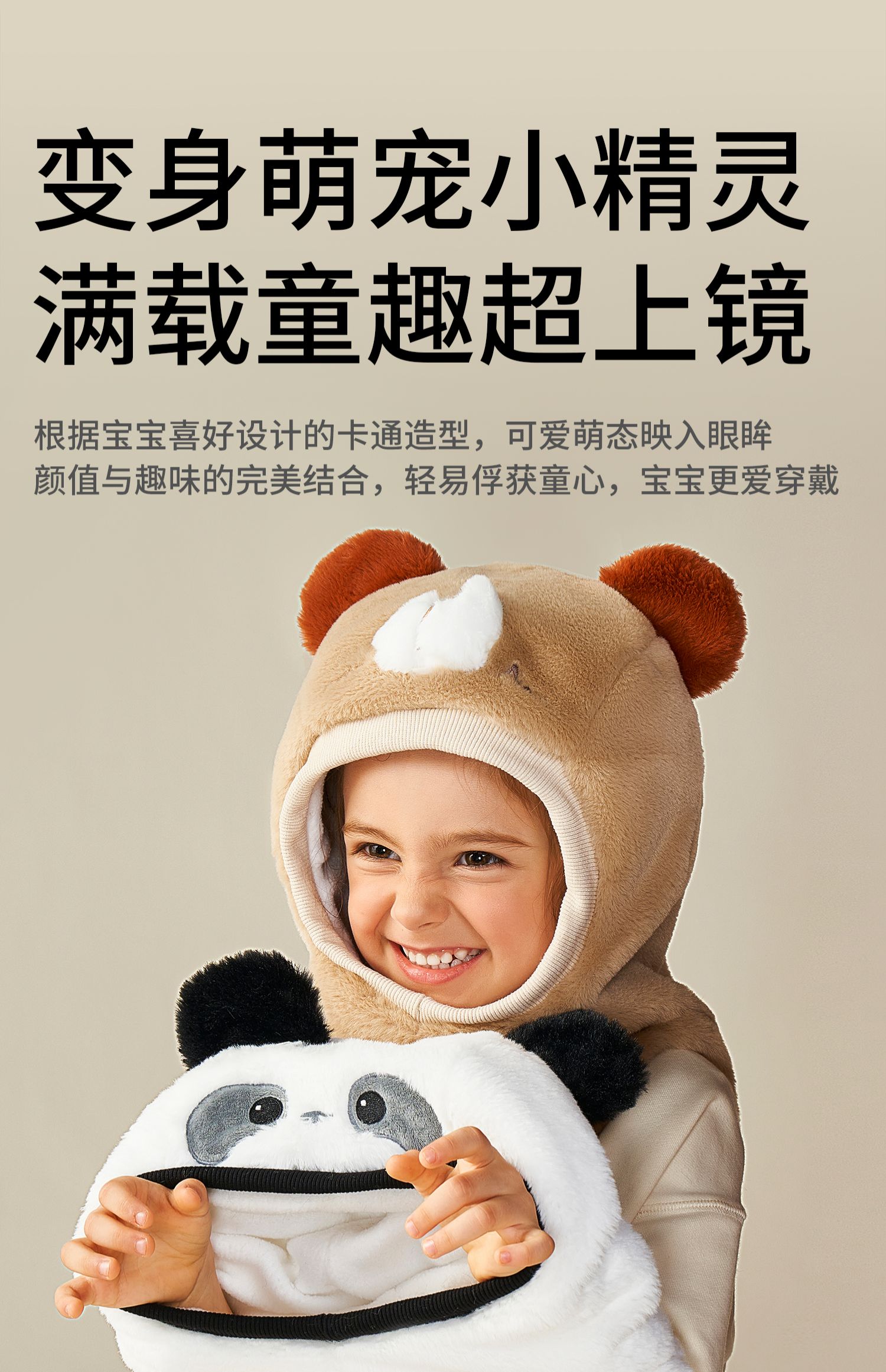 科巢儿童帽子秋冬季男女童户外骑行防风面罩护耳套头帽宝宝围巾一体帽