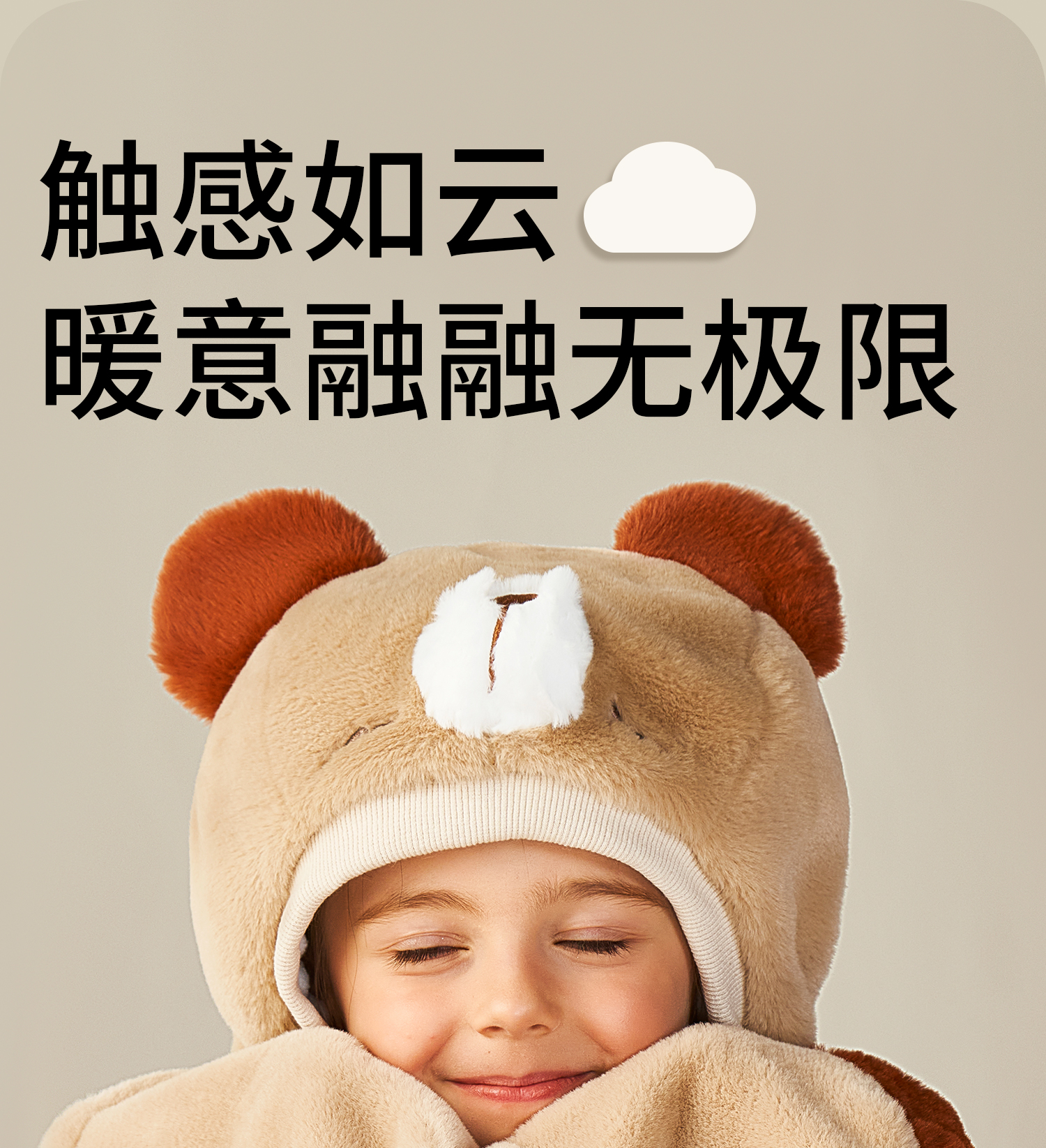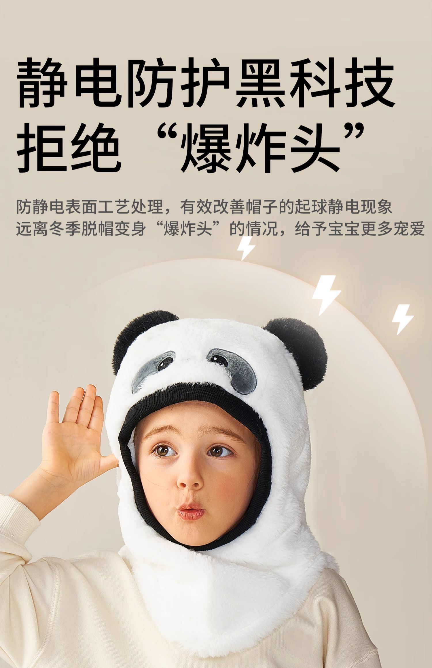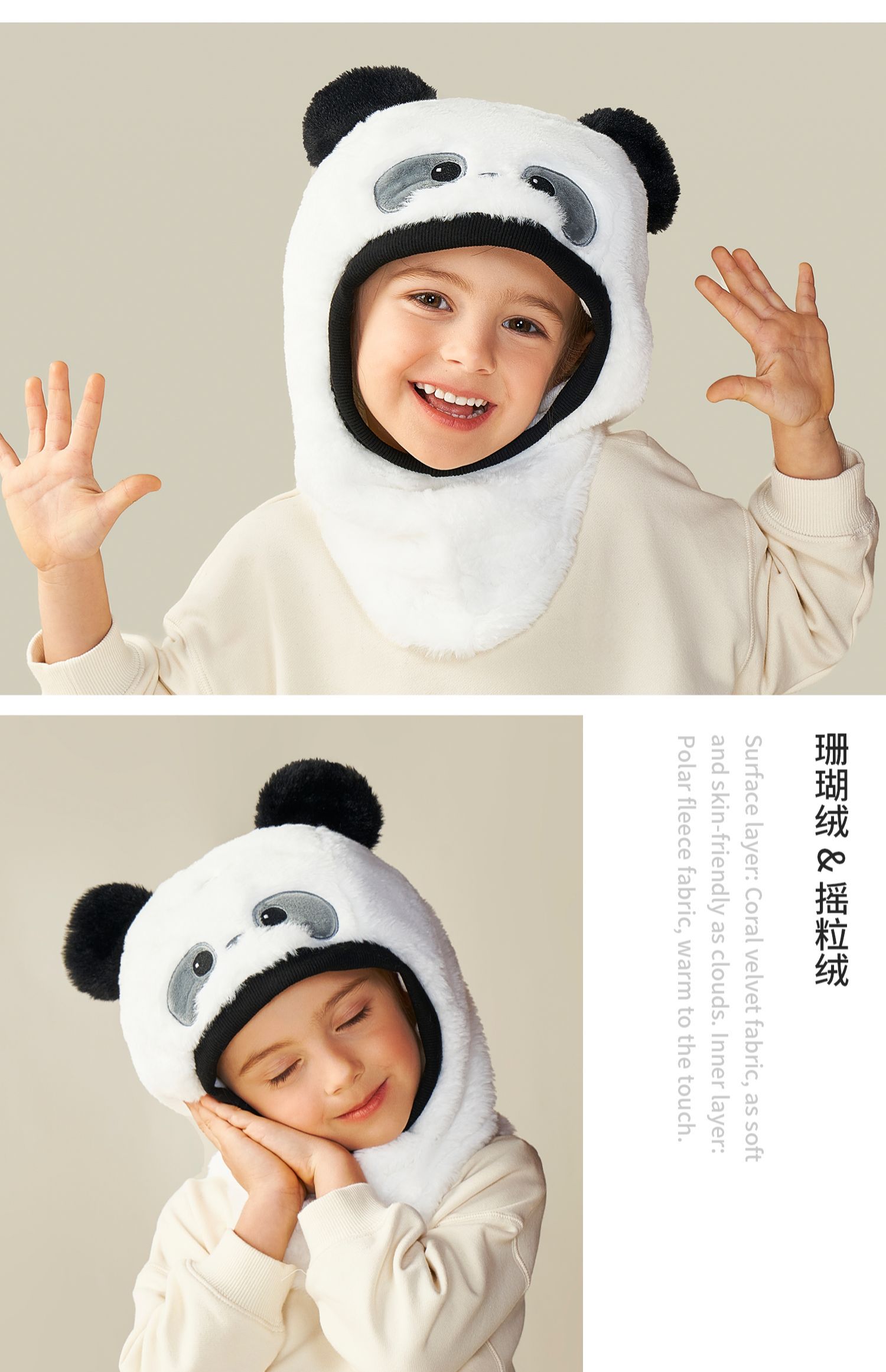 科巢儿童帽子秋冬季男女童户外骑行防风面罩护耳套头帽宝宝围巾一体帽