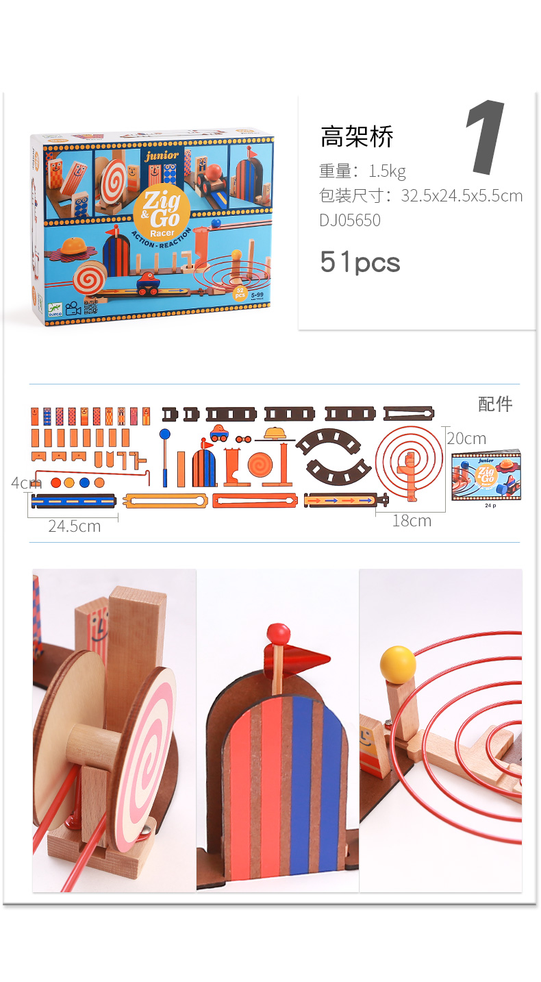 Djeco儿童骨牌积木机关多米诺创意玩具桌面游戏儿童/成人桌游8岁