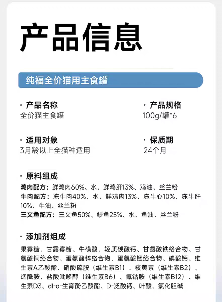 纯福 猫用主食罐头 适用3月龄以上(48小时内发货,着急勿拍)