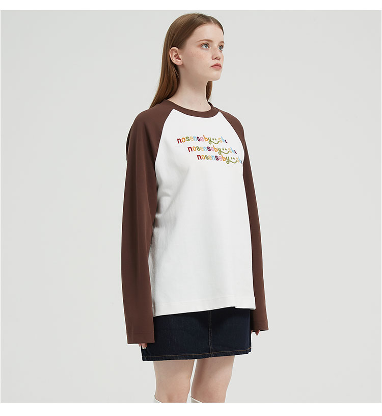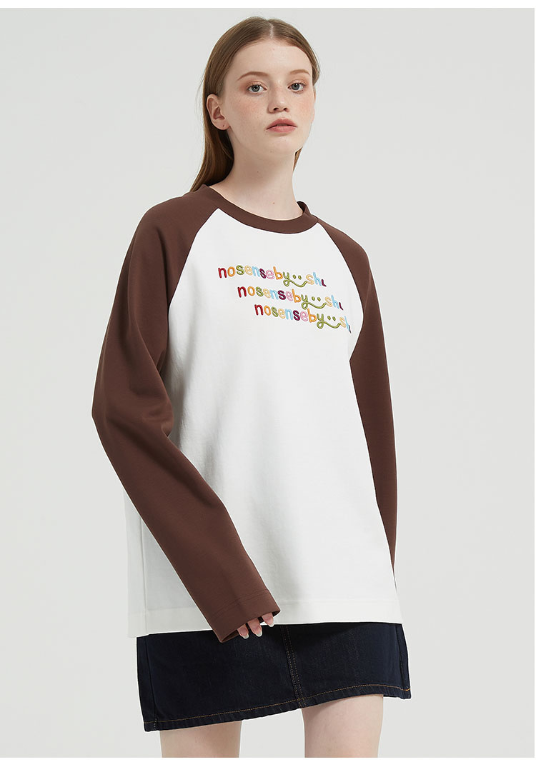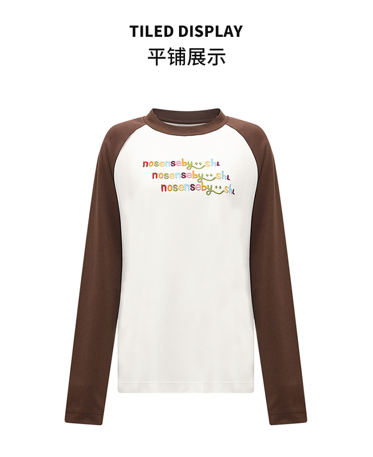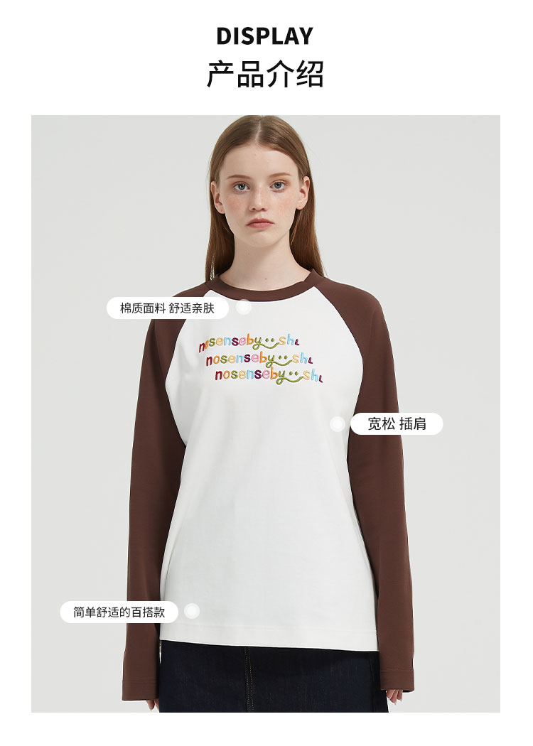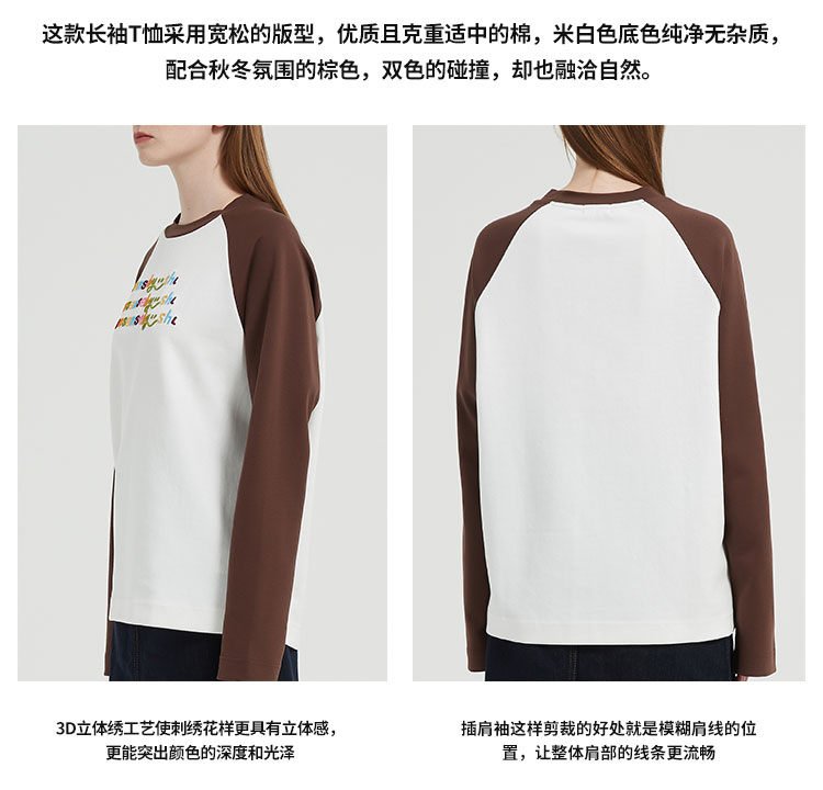 【2件9折】【Petit Bari】彩色刺绣插肩女士长袖棉质T恤3d重工刺绣精致