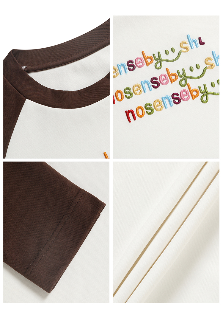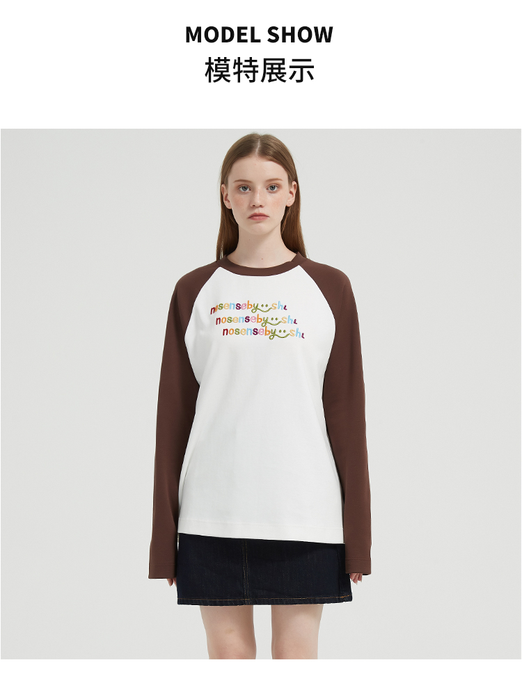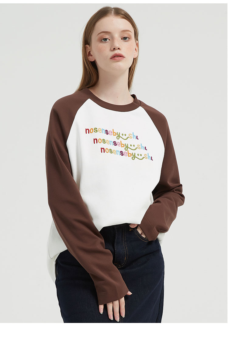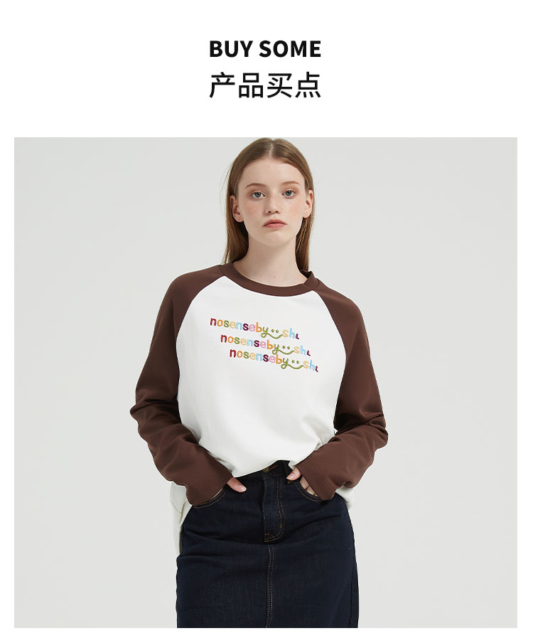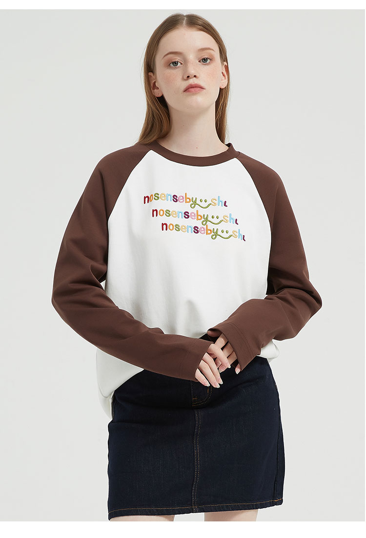 【2件9折】【Petit Bari】彩色刺绣插肩女士长袖棉质T恤3d重工刺绣精致