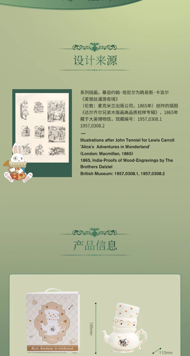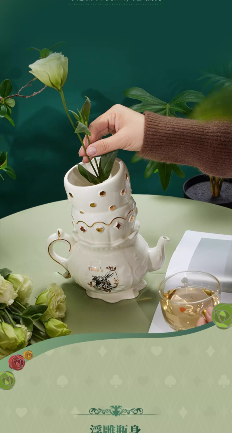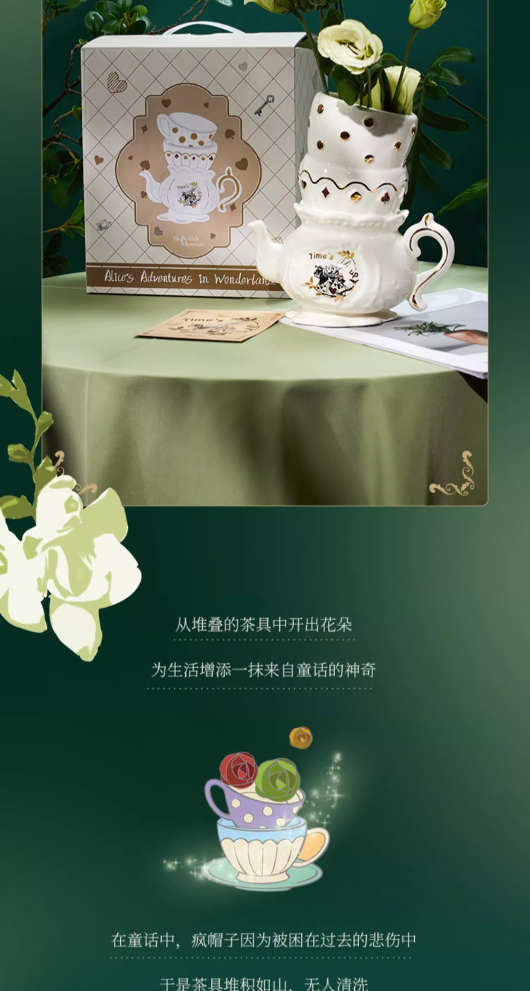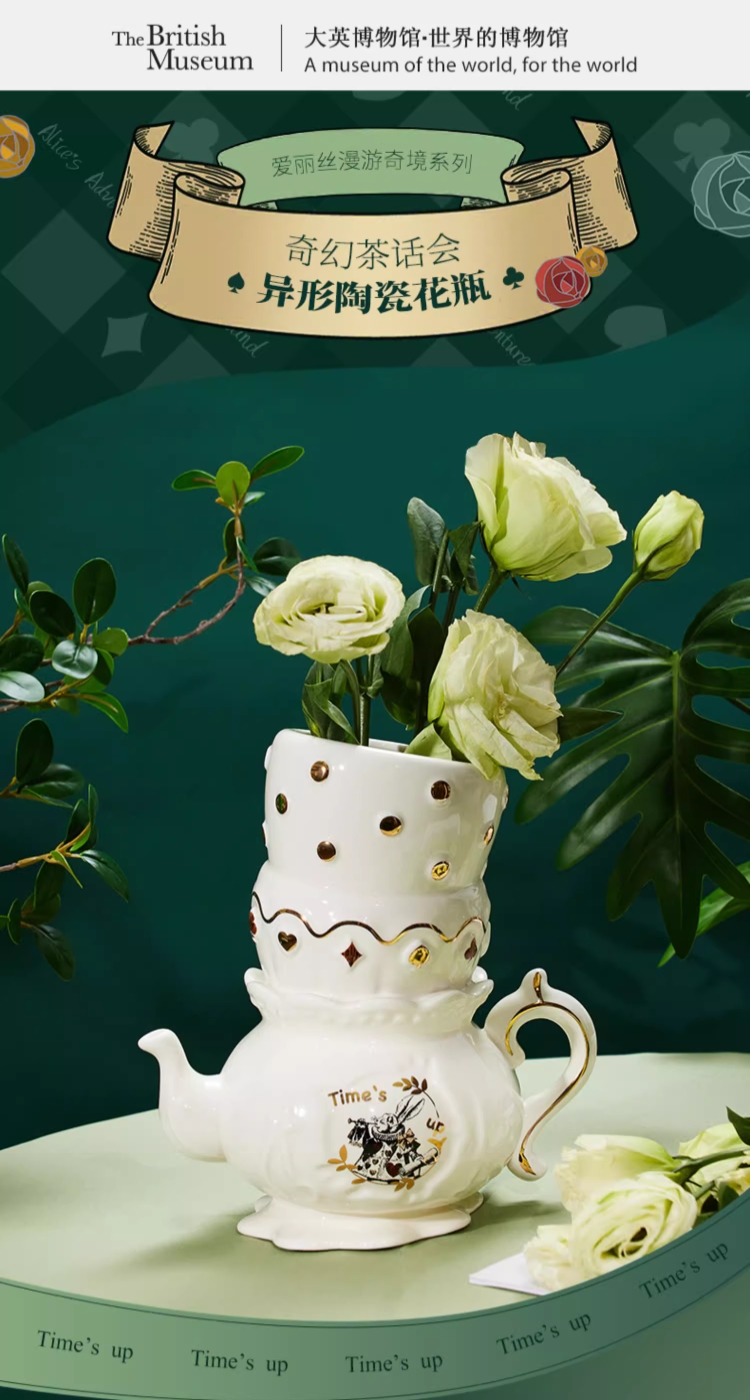 大英博物馆爱丽丝漫游奇境系列 怀表兔奇幻茶话会异形陶瓷花瓶桌面摆件礼盒