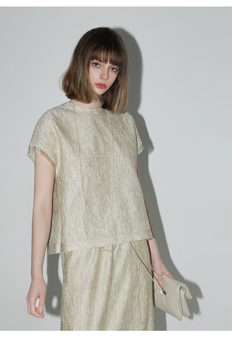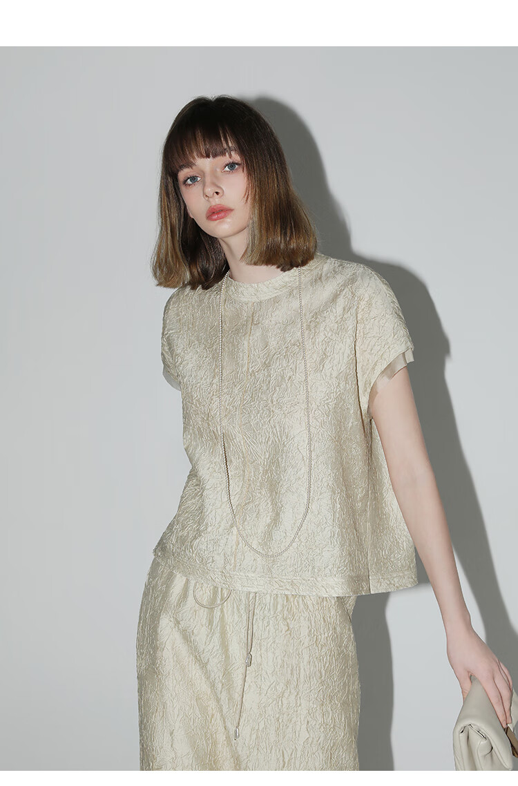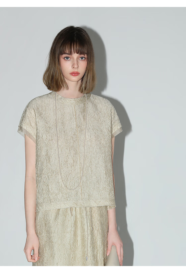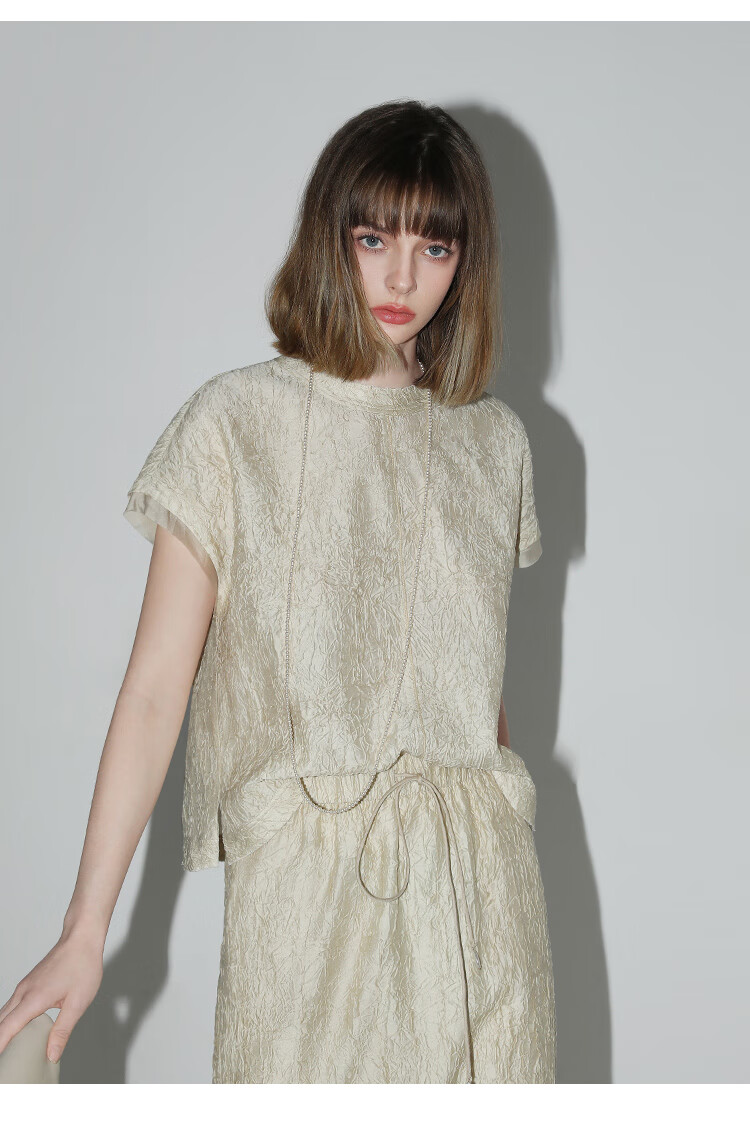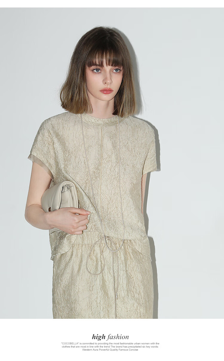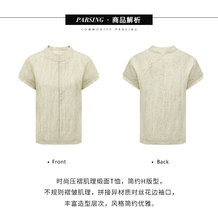 COCOBELLA[莱赛尔]对丝拼接压褶肌理缎面T恤春通勤上衣TS0010-2