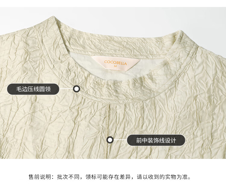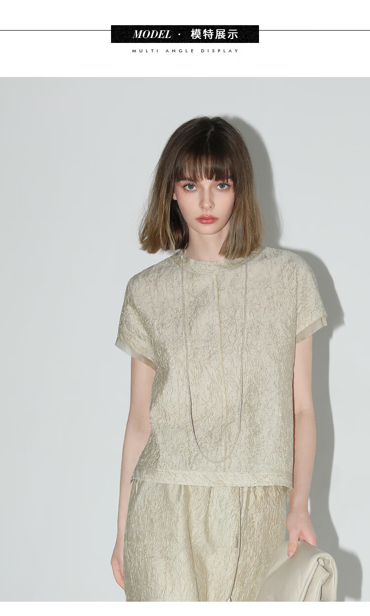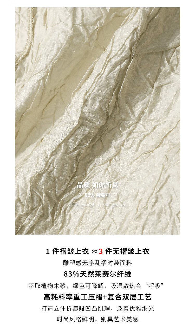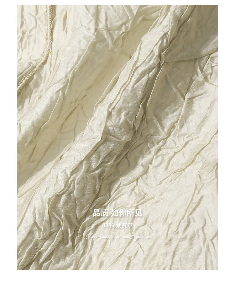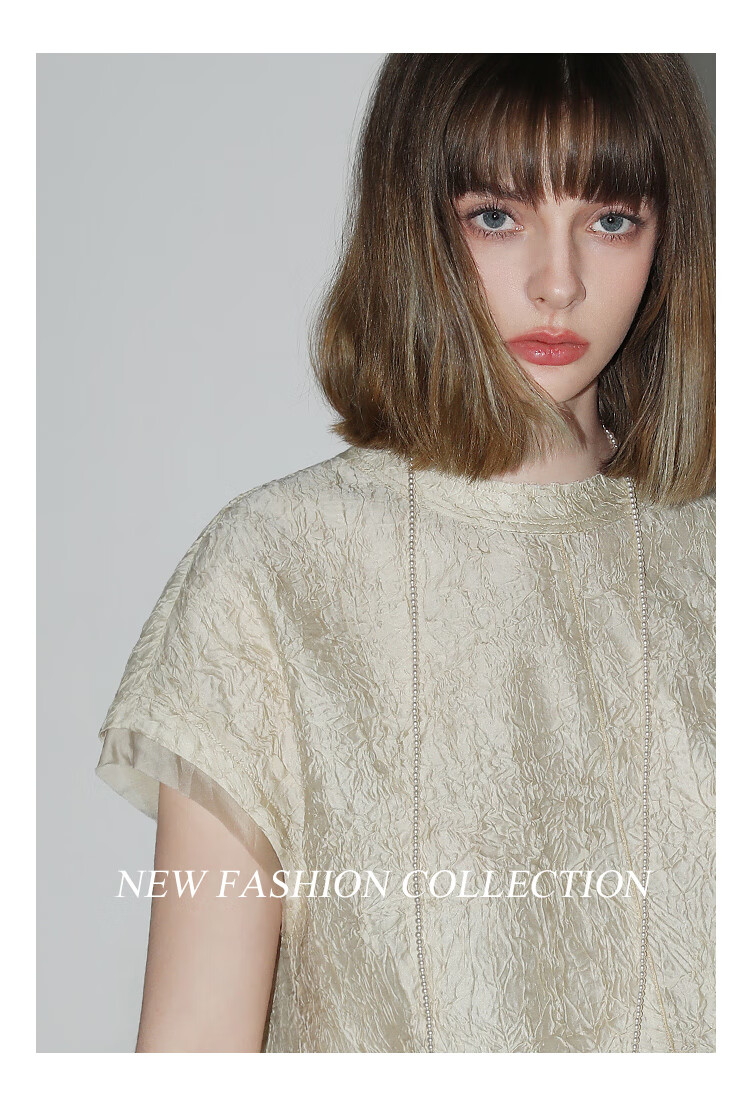 COCOBELLA[莱赛尔]对丝拼接压褶肌理缎面T恤春通勤上衣TS0010-2