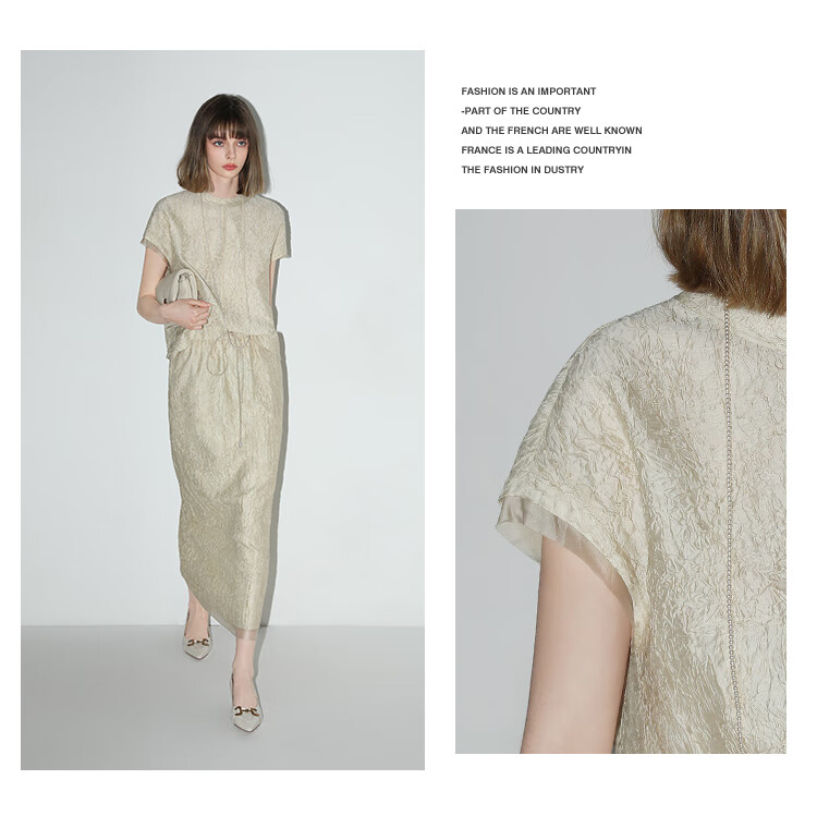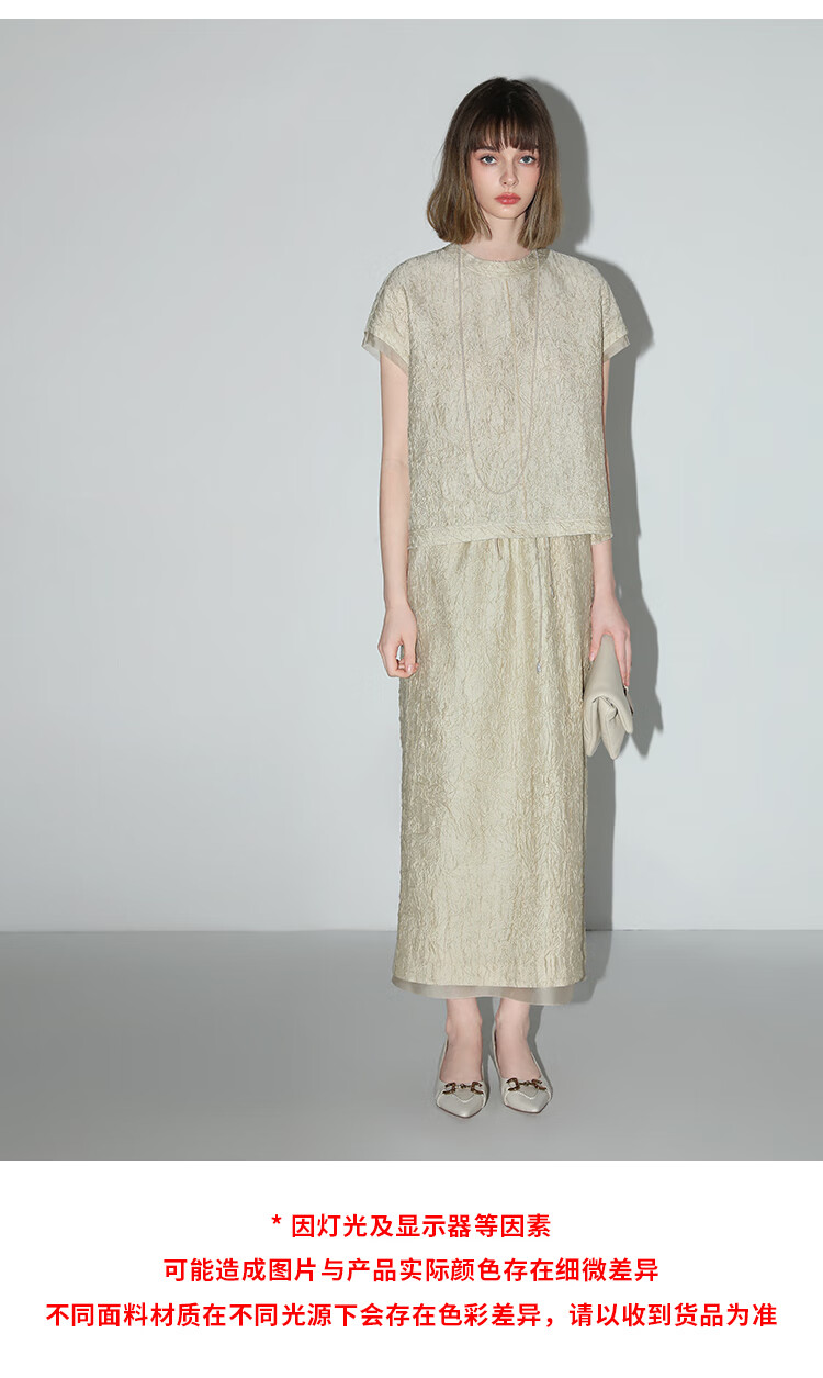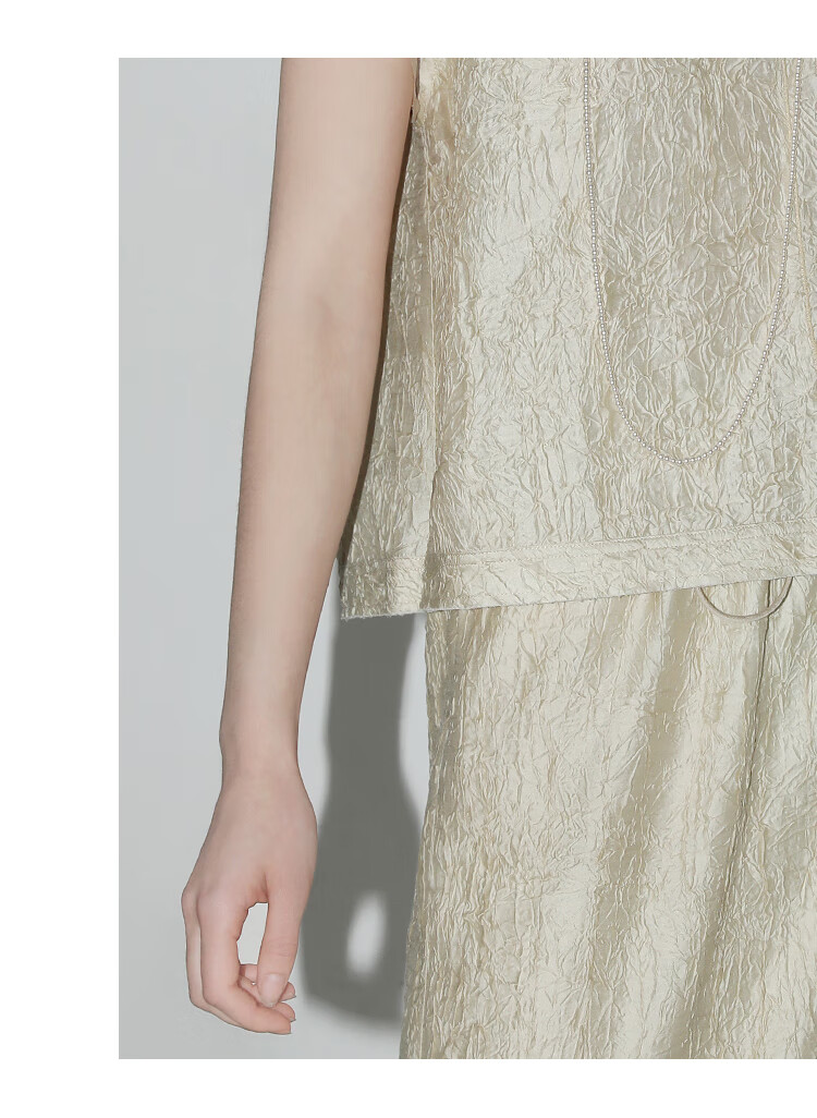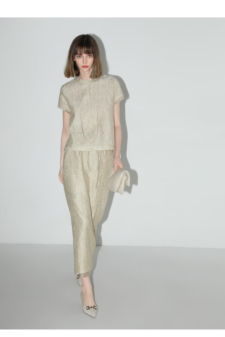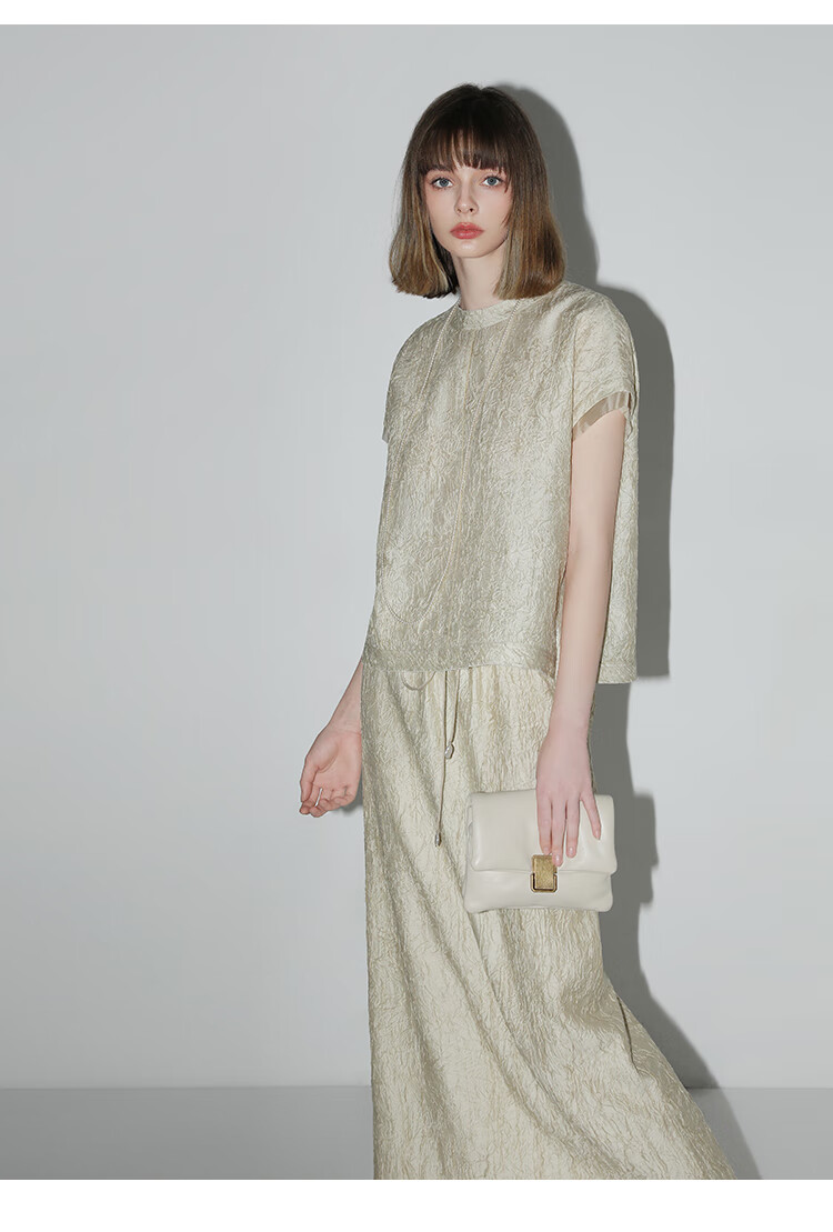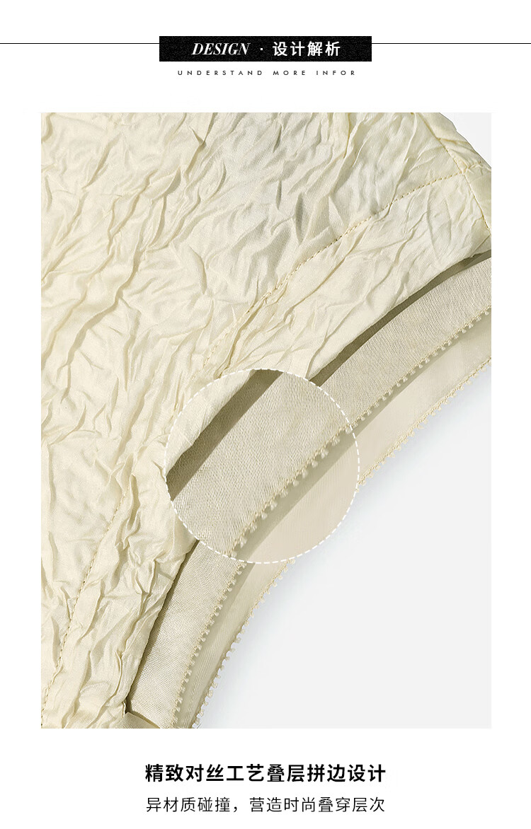 COCOBELLA[莱赛尔]对丝拼接压褶肌理缎面T恤春通勤上衣TS0010-2
