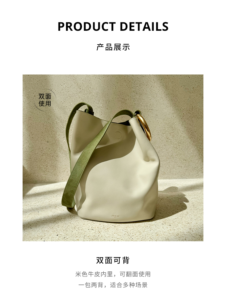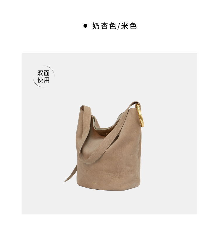 【赵露思同款】品牌直发 APEDE MOD 秋冬新款大容量头层牛皮水桶包 中号软花桶包单肩斜挎包