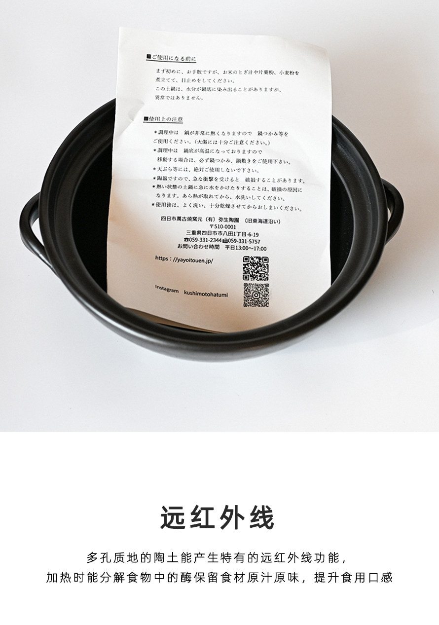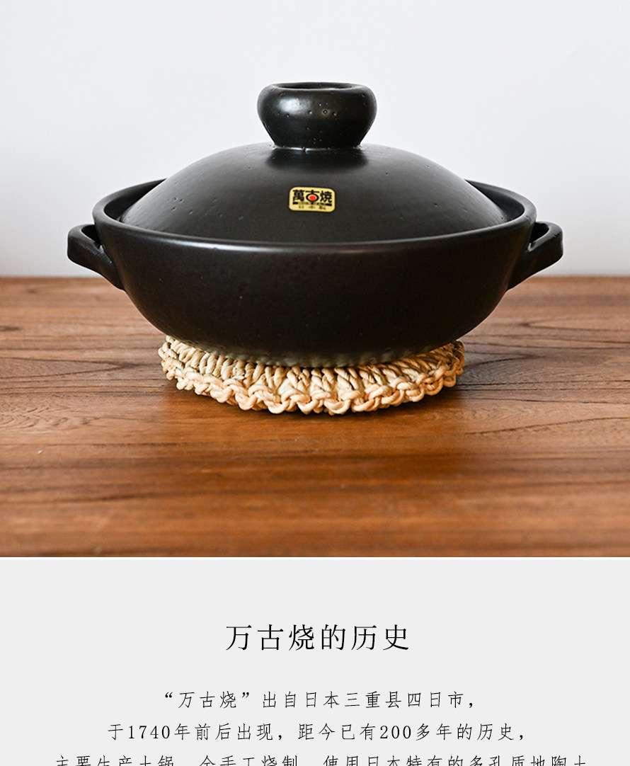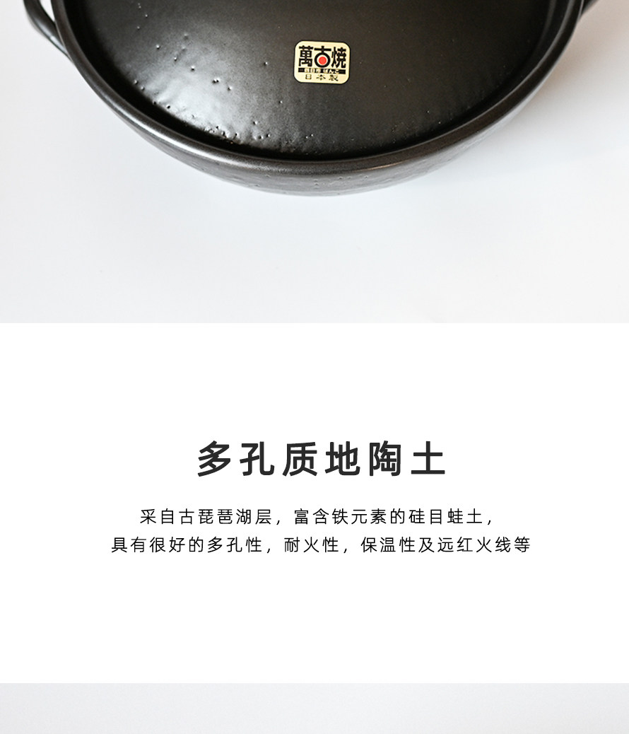 【日本进口万古烧砂锅】原装宽口土锅煲汤家用燃气煲仔饭水煮鱼火锅