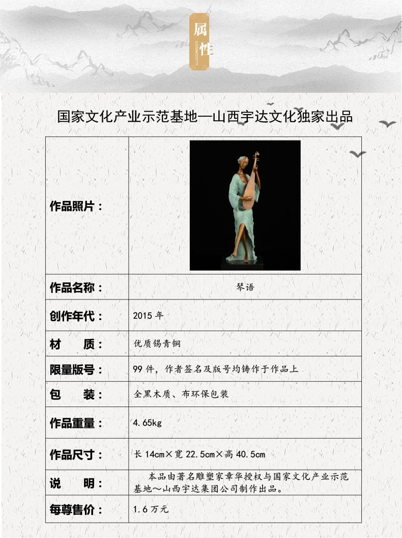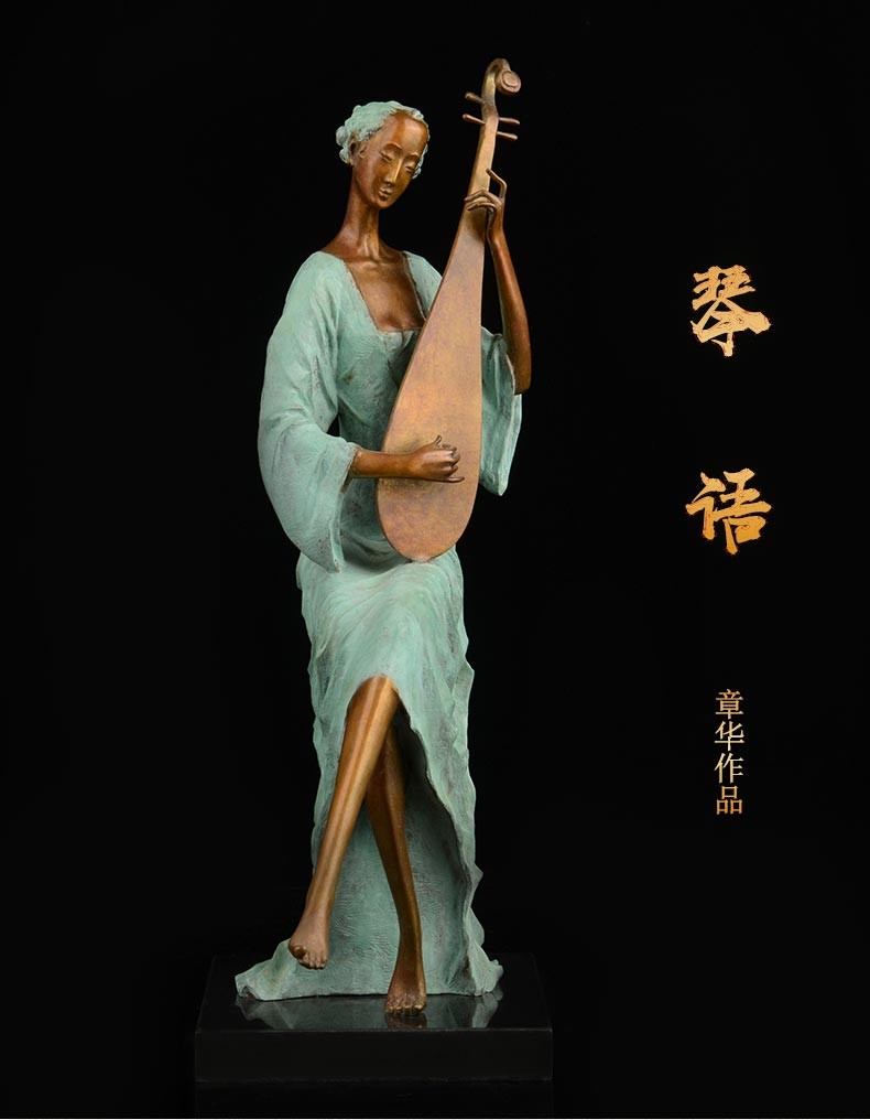 宇达青铜文化 限量艺术品 《琴语》 作者:章华 高40.5cm