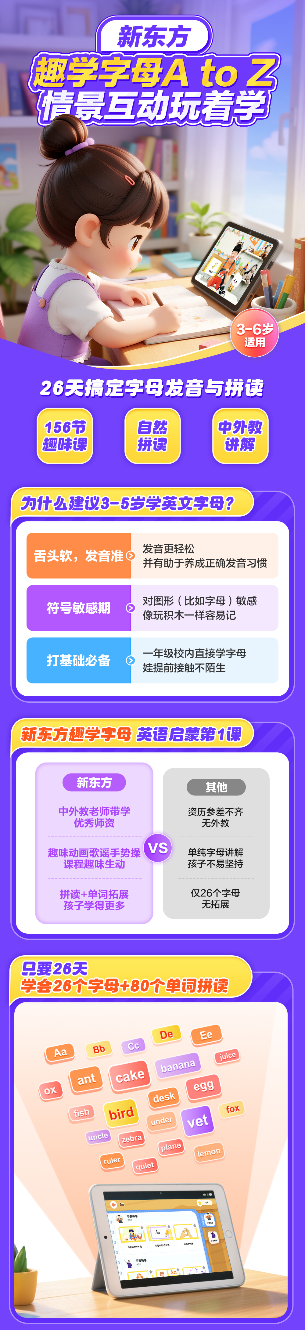 新东方趣学字母AtoZ 26个字母拼读词汇3-6岁自然拼读儿童英语启蒙