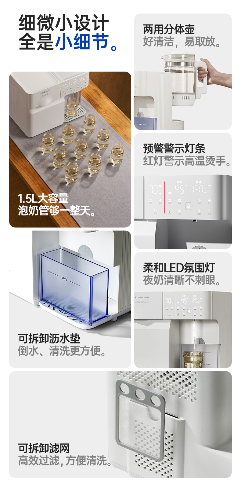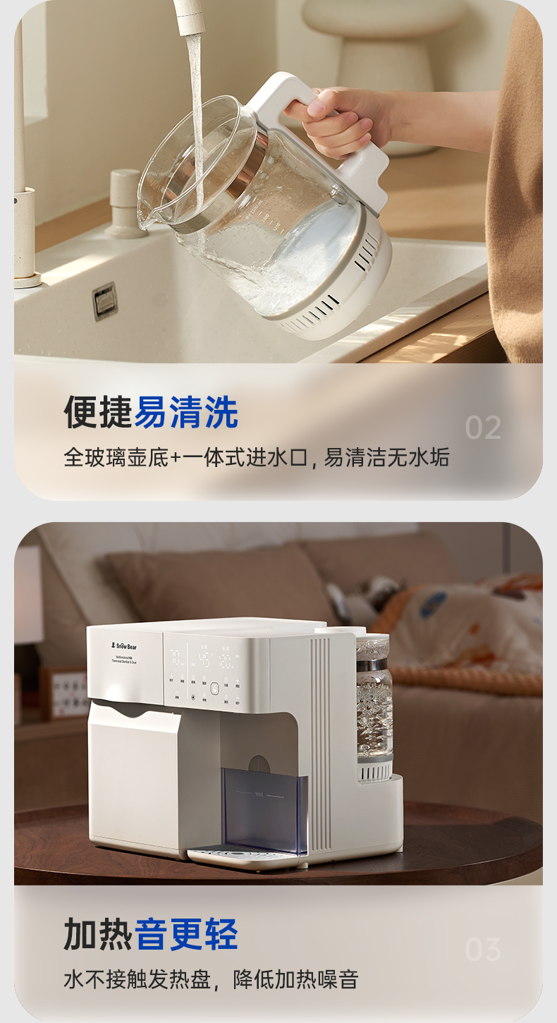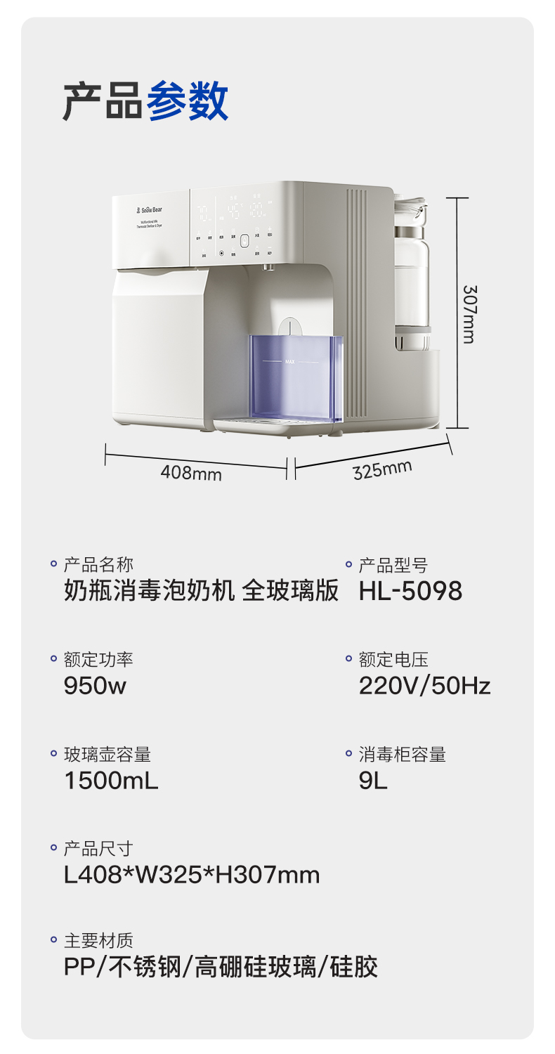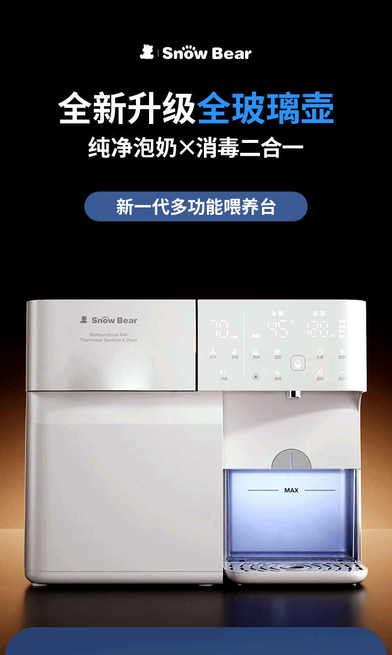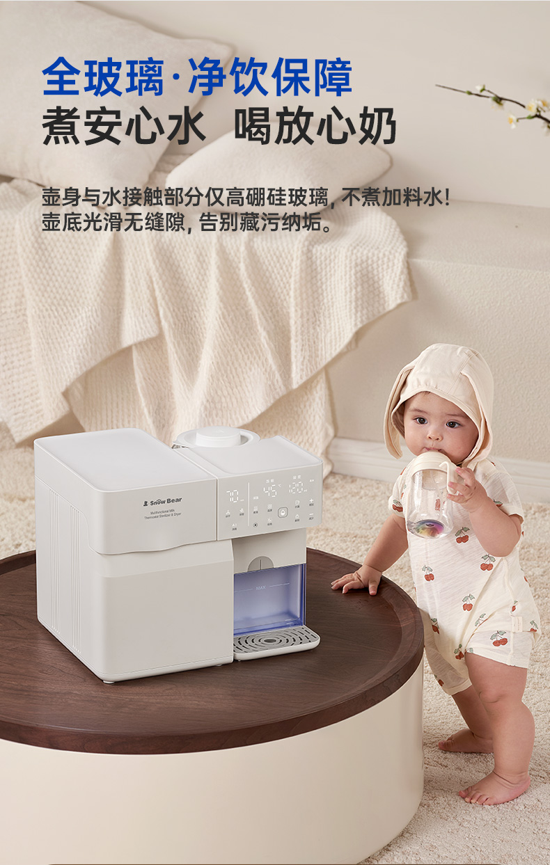 SnowBear小白熊奶瓶消毒柜婴儿全玻璃恒温壶泡奶机二合一喂养台