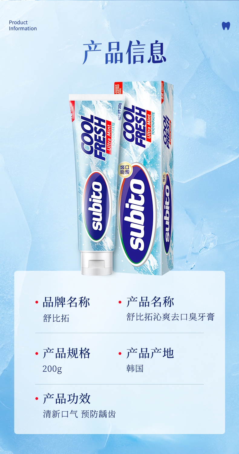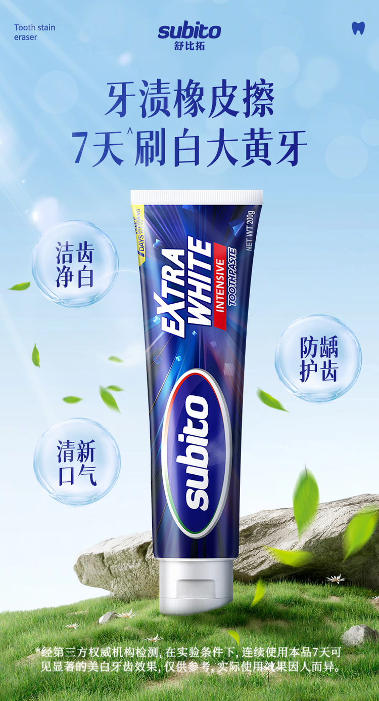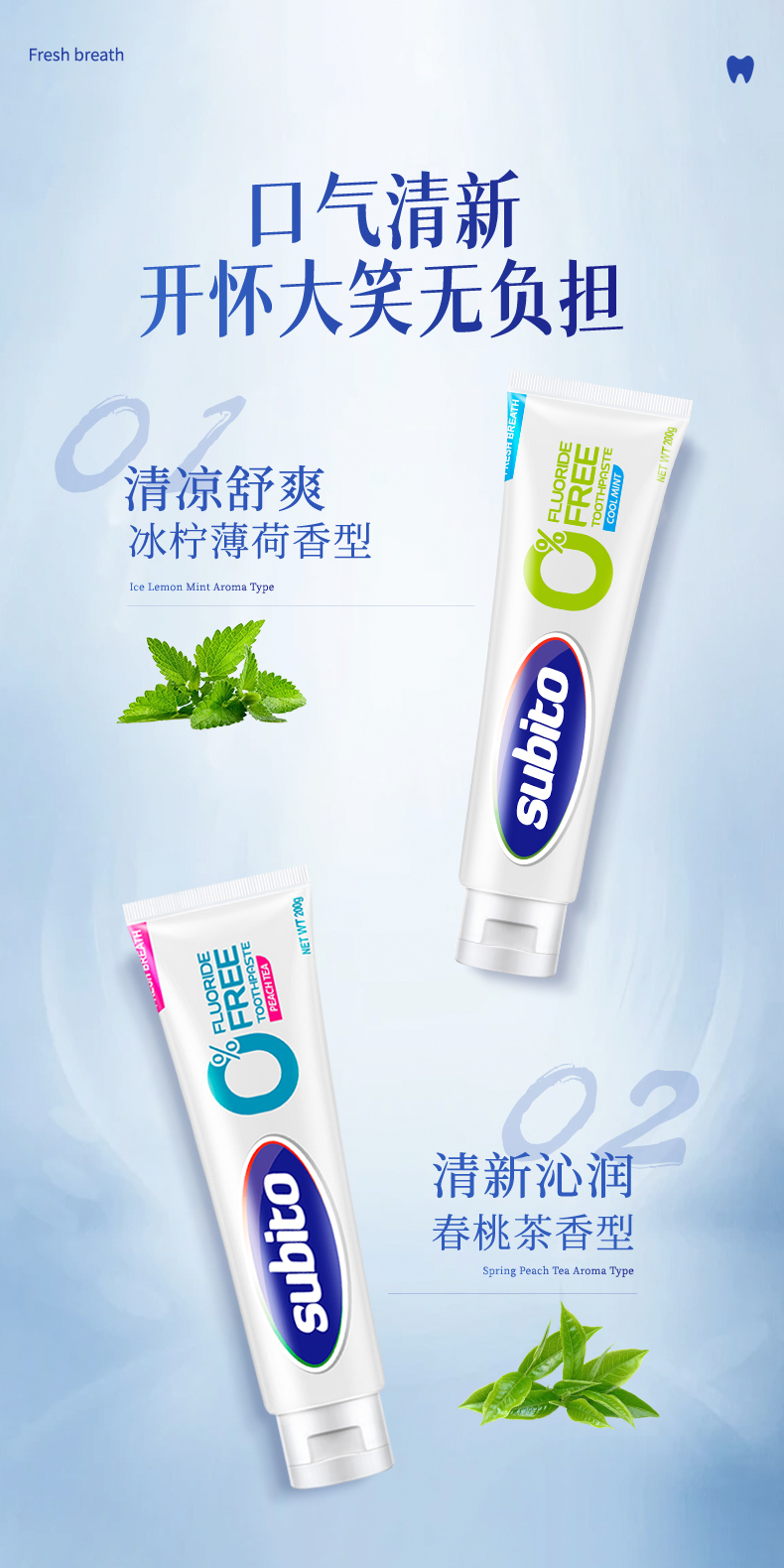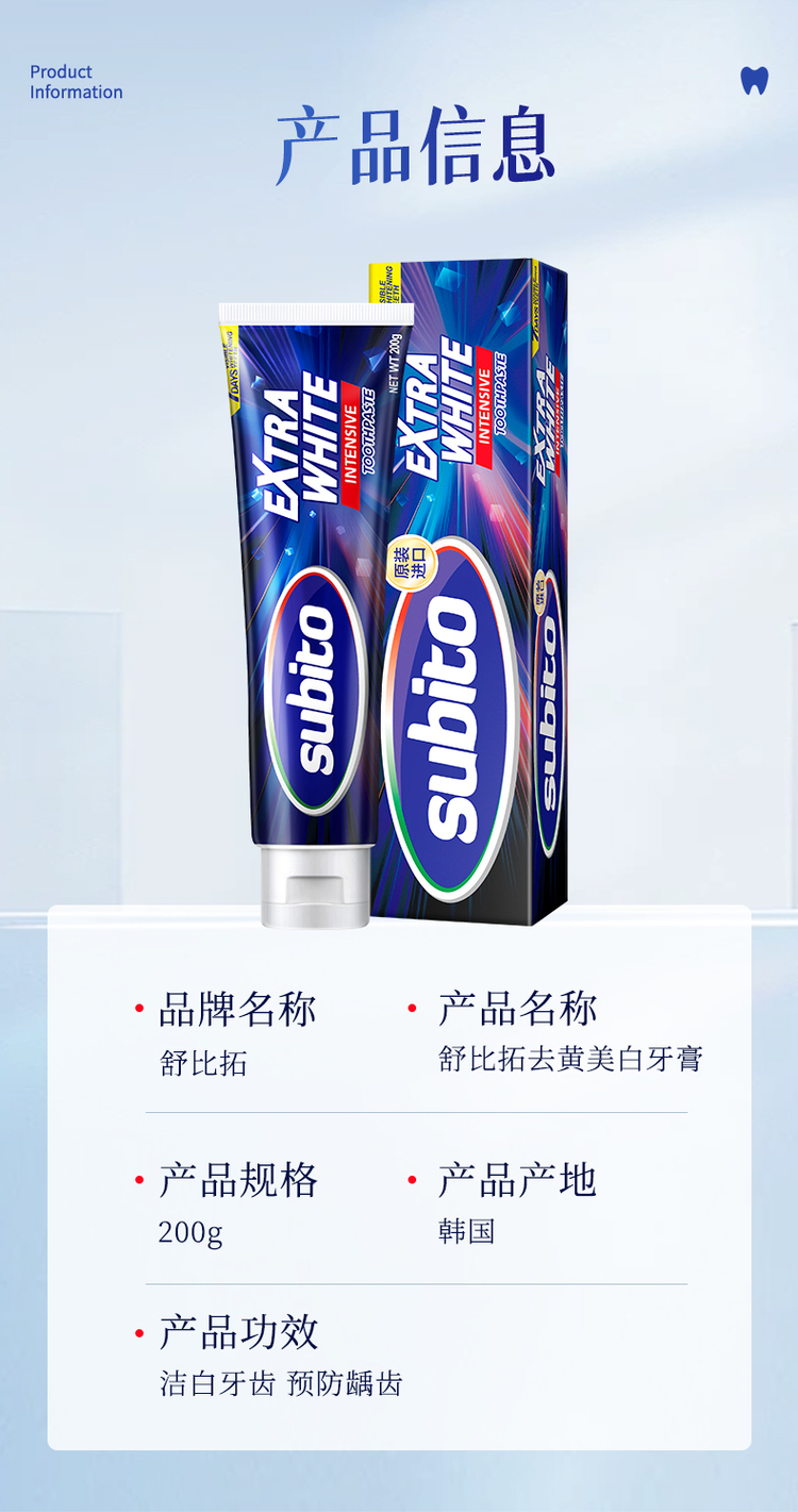 subito舒比拓牙膏组合(沁爽去口臭牙膏200g+冰柠薄荷无氟牙膏200g+去黄美白牙膏200g)