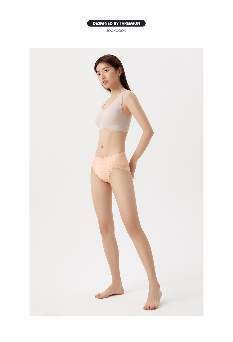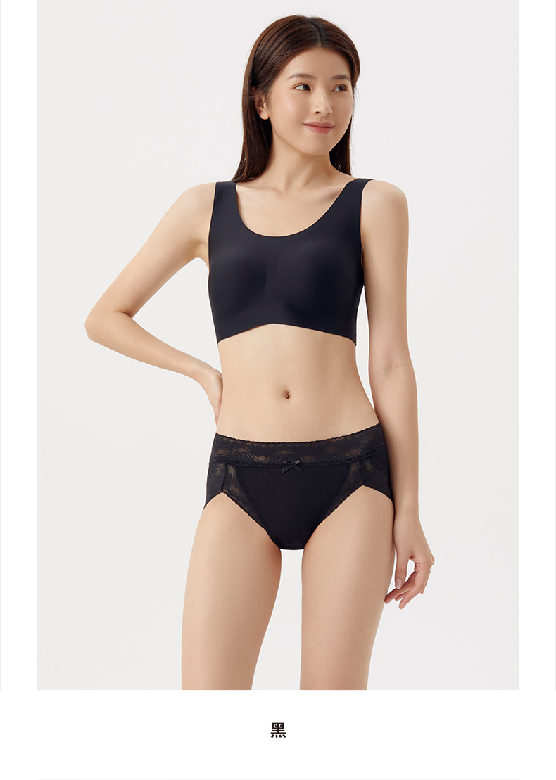 Threegun三枪 【莫代尔】中腰花边女士三角内裤(1条装)-40926B011
