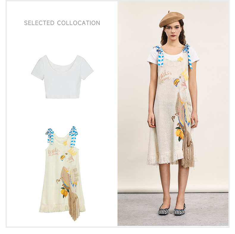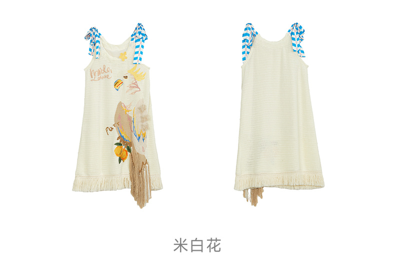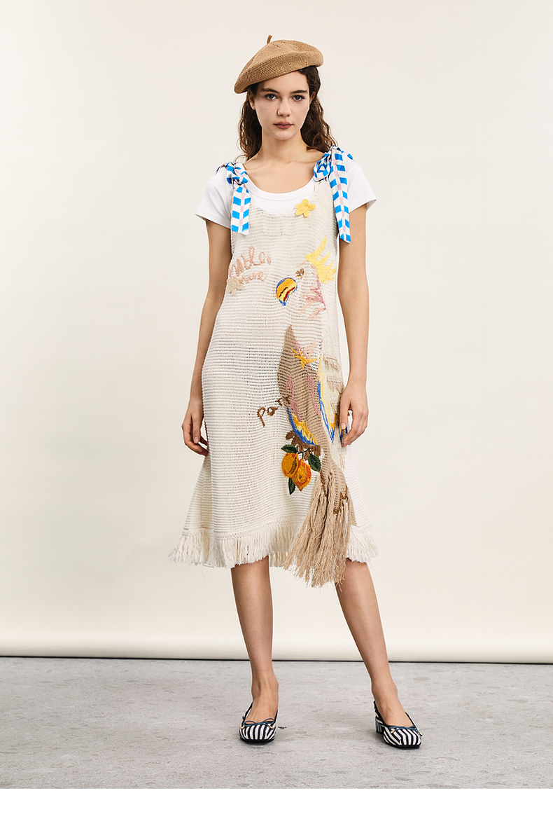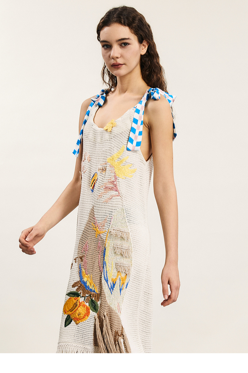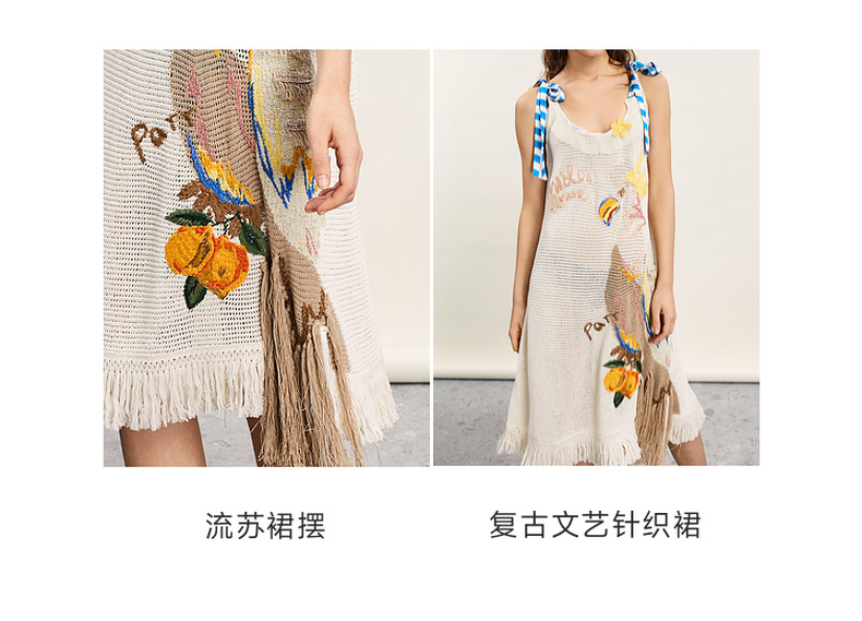谜底吊带连衣裙2024年夏新品复古文艺风特色绣花中长裙242MZ0853