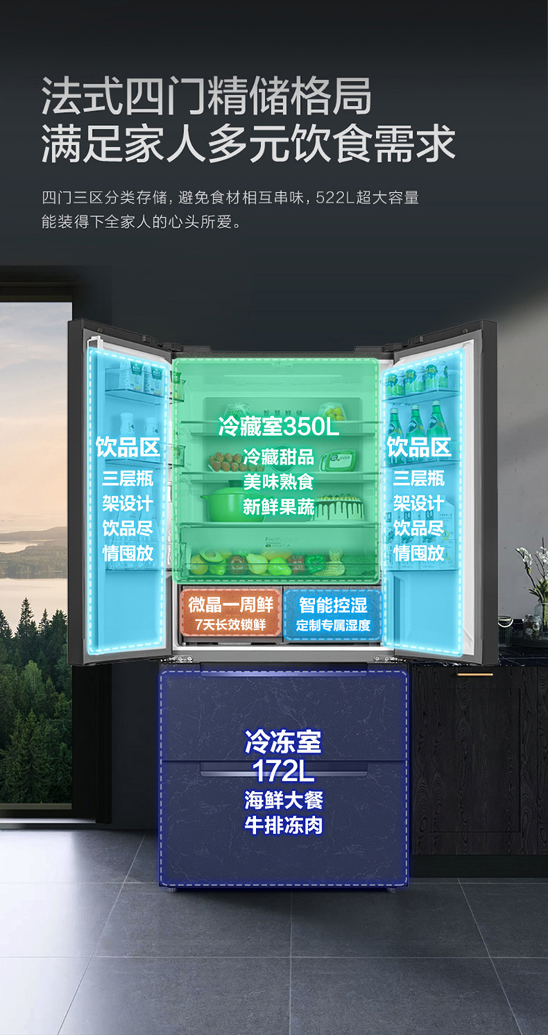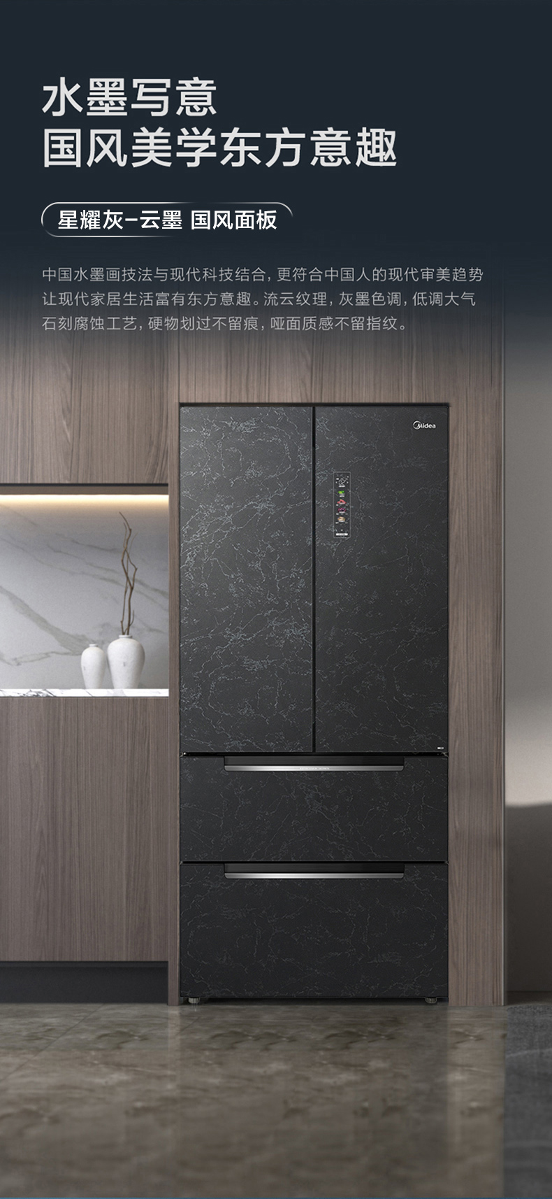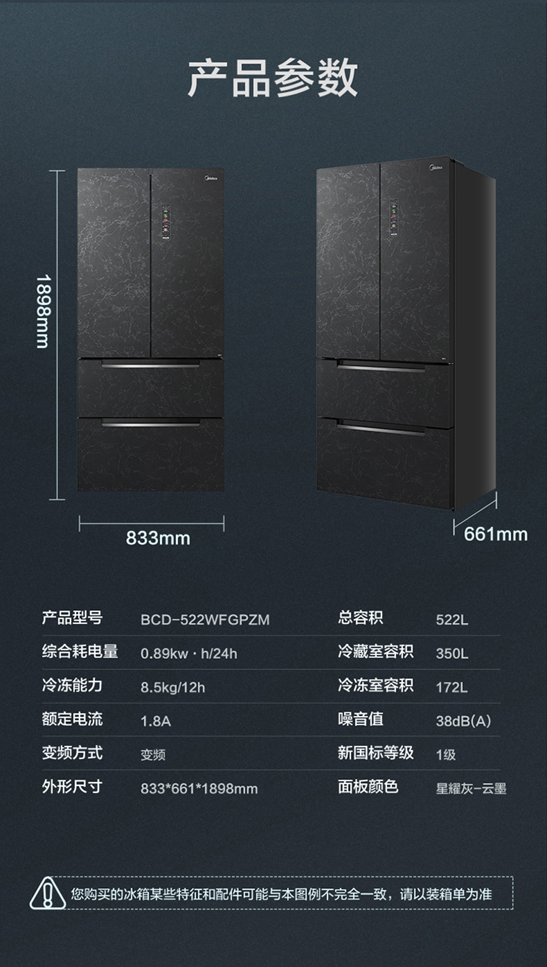 美的冰箱-BCD-522WFGPZM星耀灰-云墨
