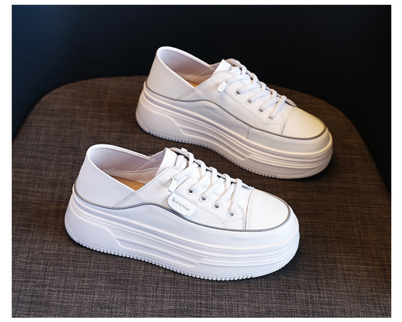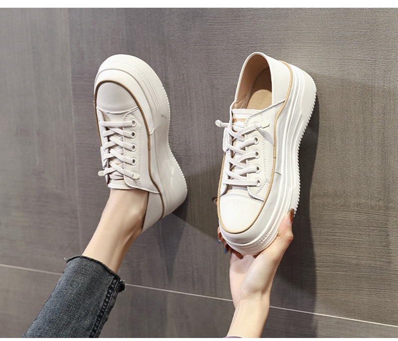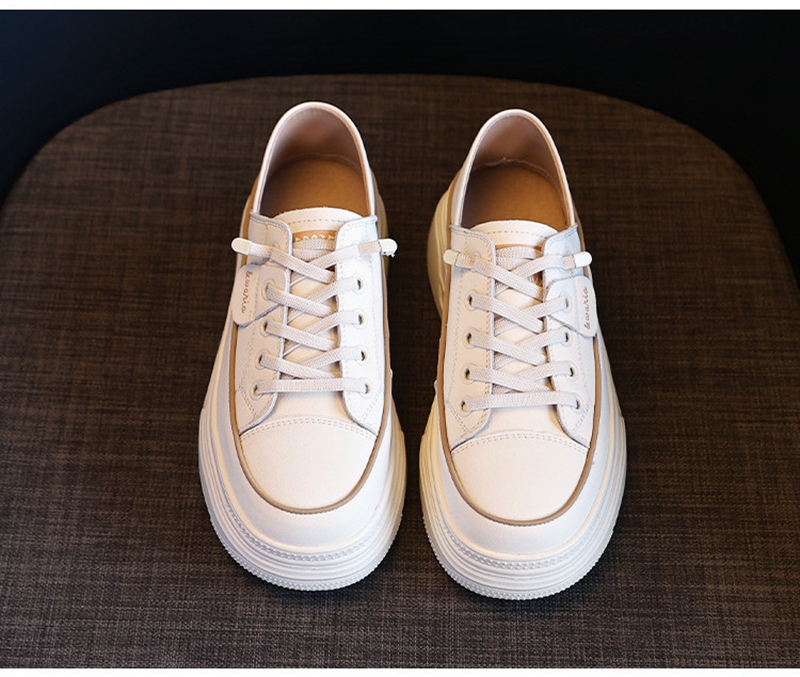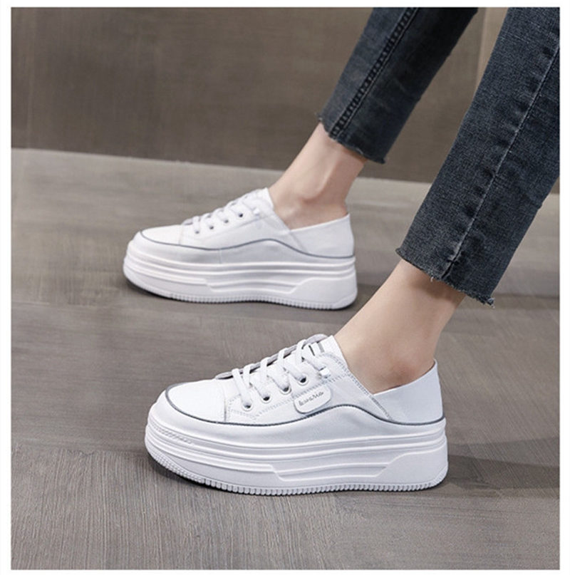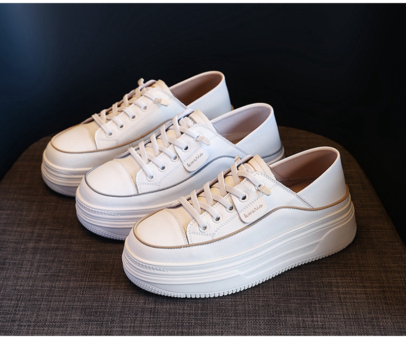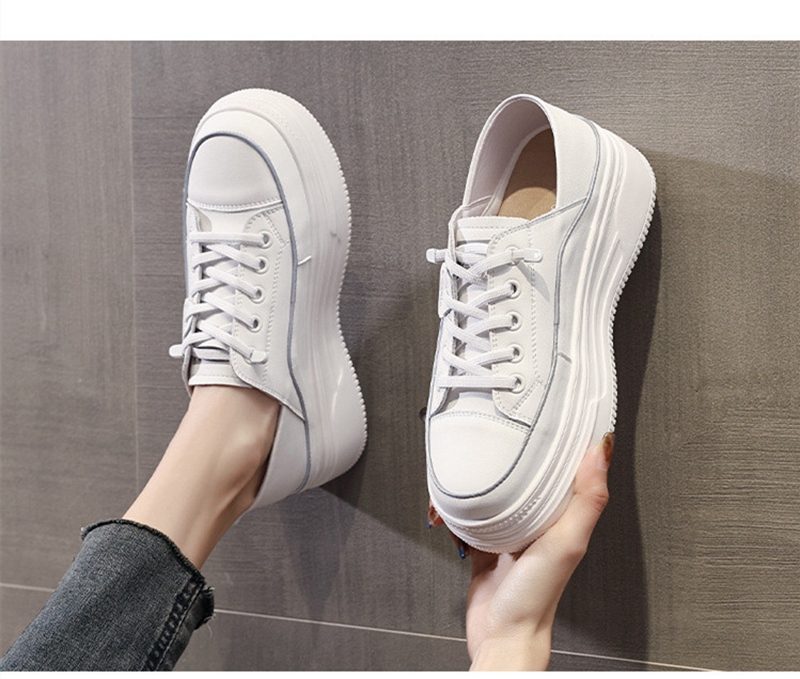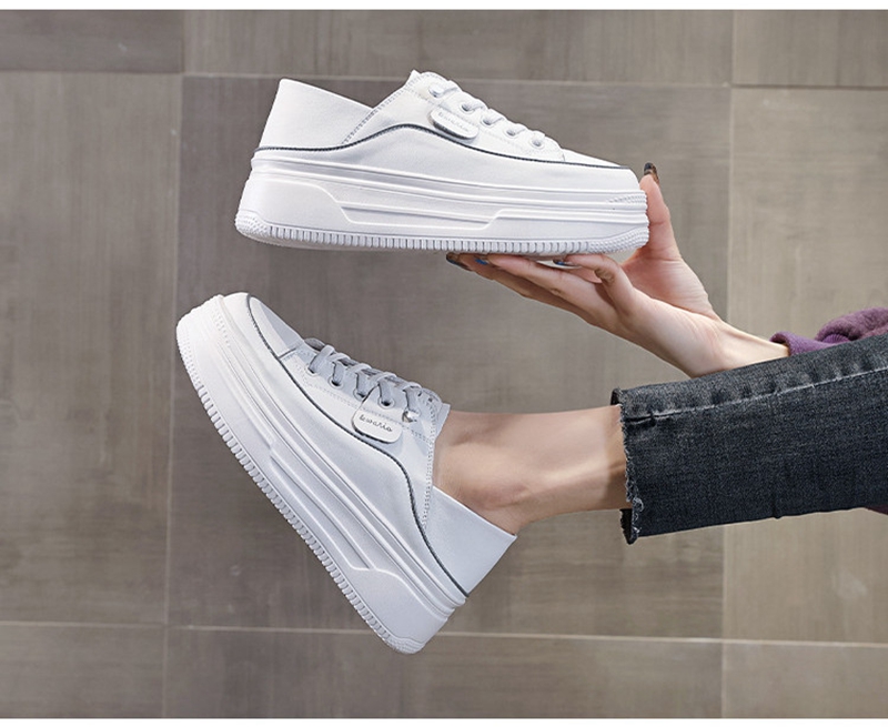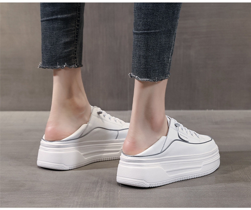 真皮踩跟两穿圆头低帮绑带厚底平跟休闲鞋