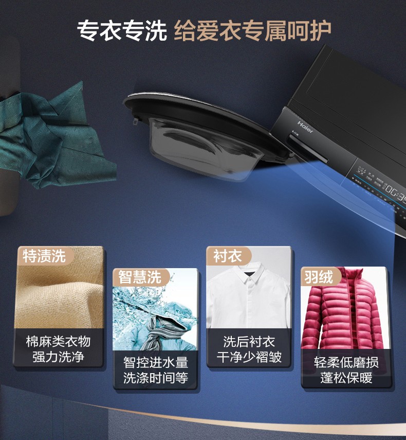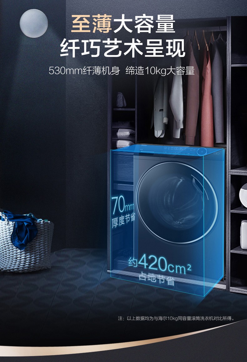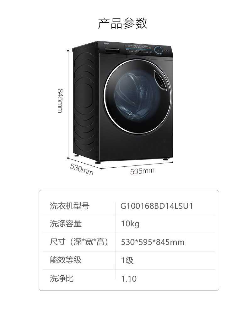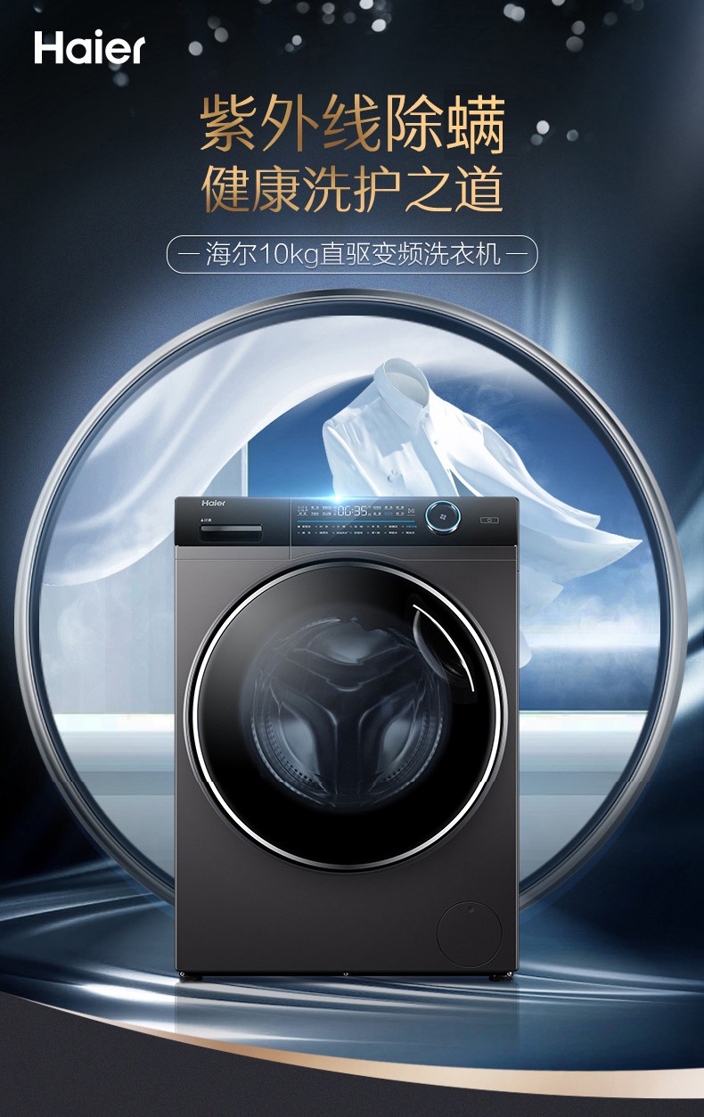 海尔滚筒洗衣机全自动10公斤直驱变频大容量 家用薄紫外线杀菌智能投放+双喷淋 10公斤直驱变频薄G100168BD14LSU1