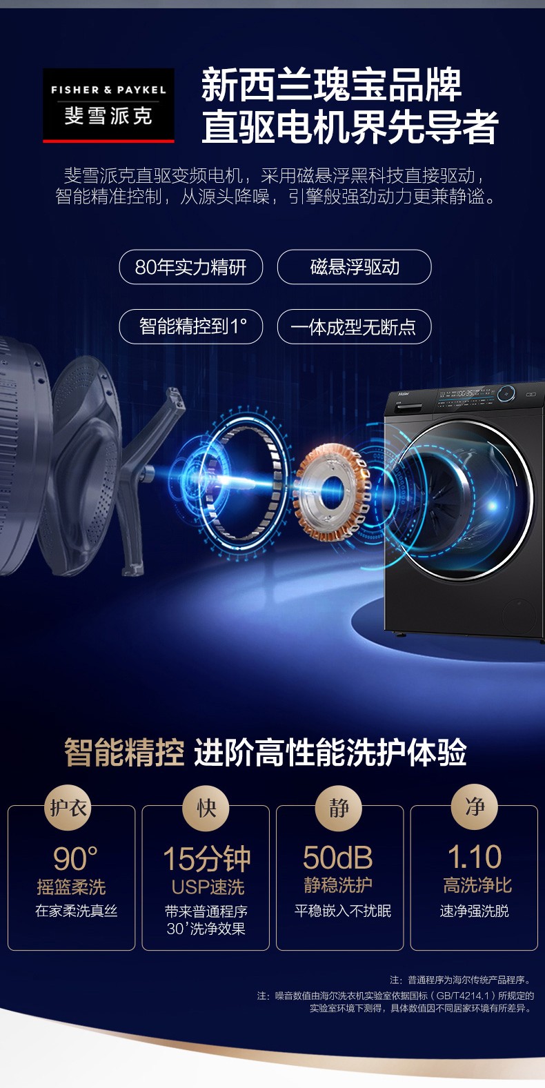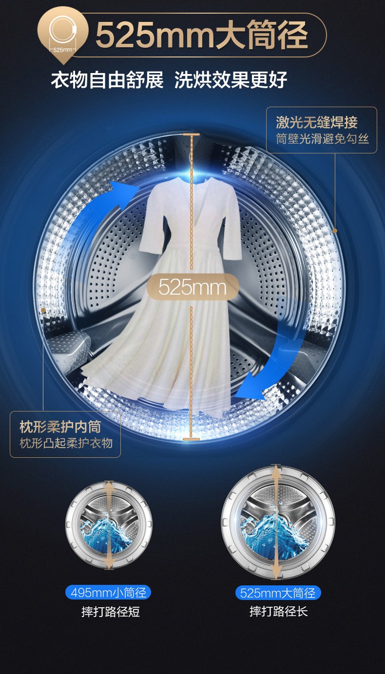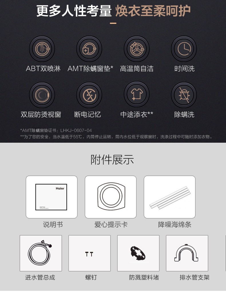 海尔滚筒洗衣机全自动10公斤直驱变频大容量 家用薄紫外线杀菌智能投放+双喷淋 10公斤直驱变频薄G100168BD14LSU1