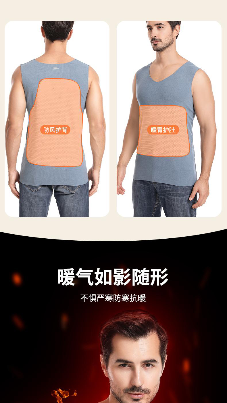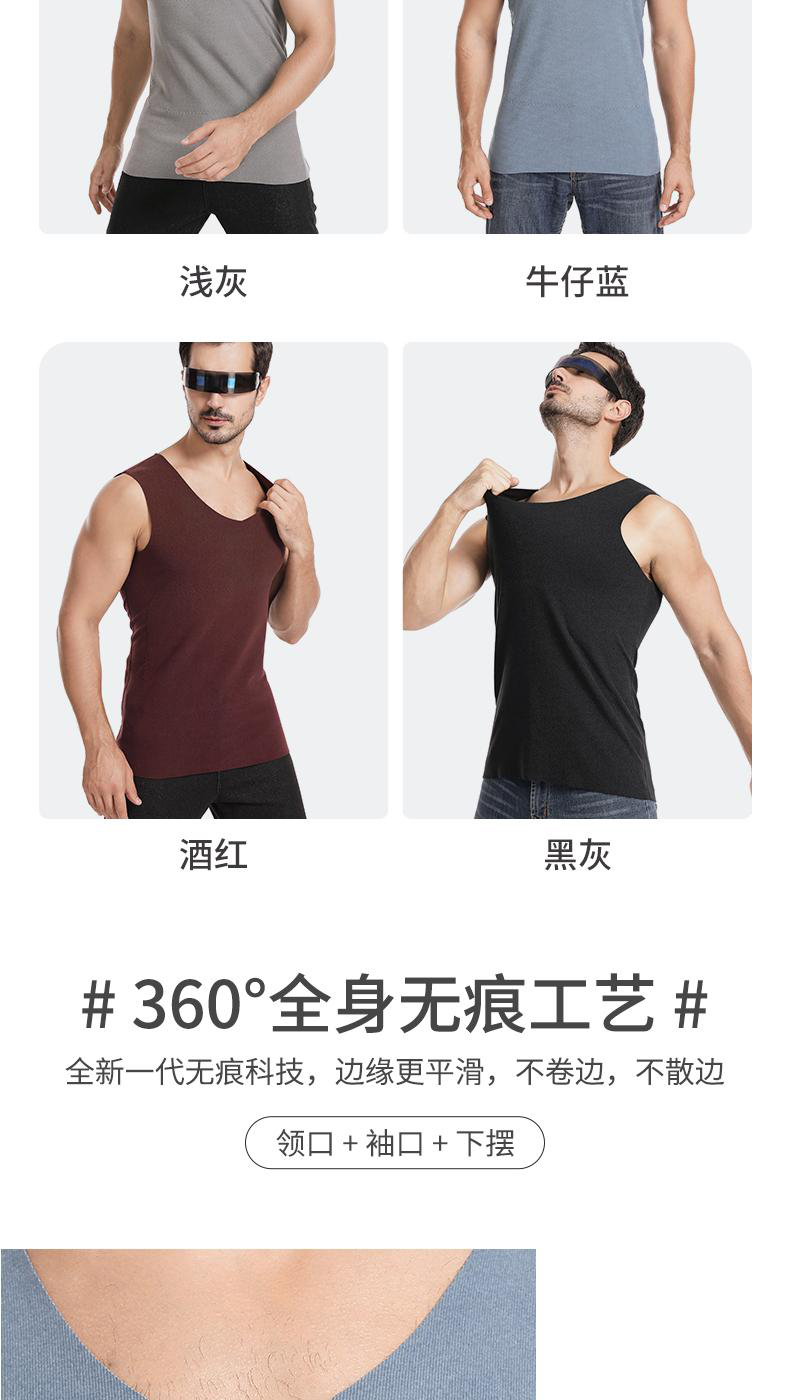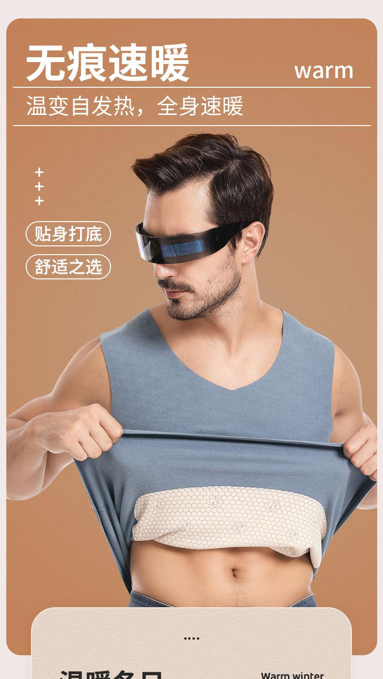 半身缘男装 冬季双面细绒温感保暖无骨拼接内搭背心BX403